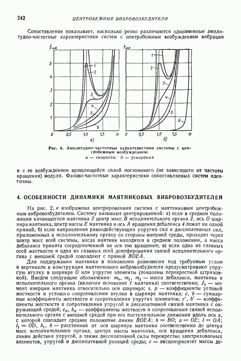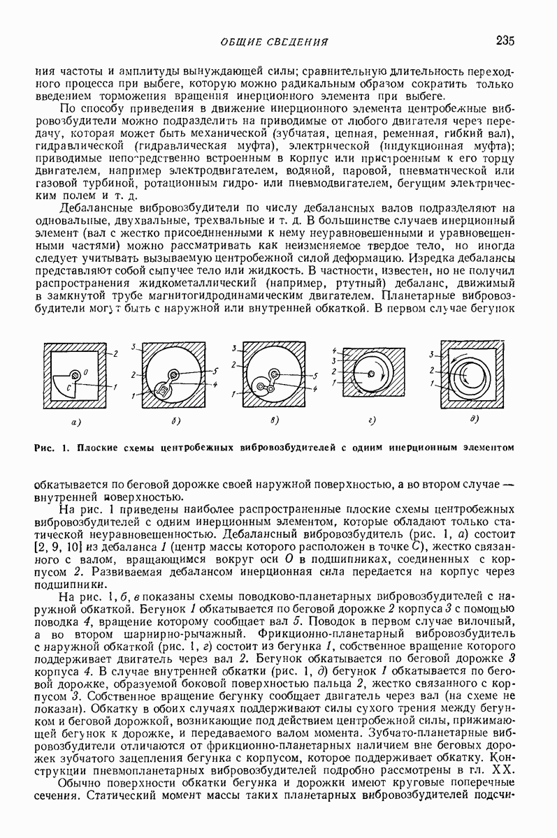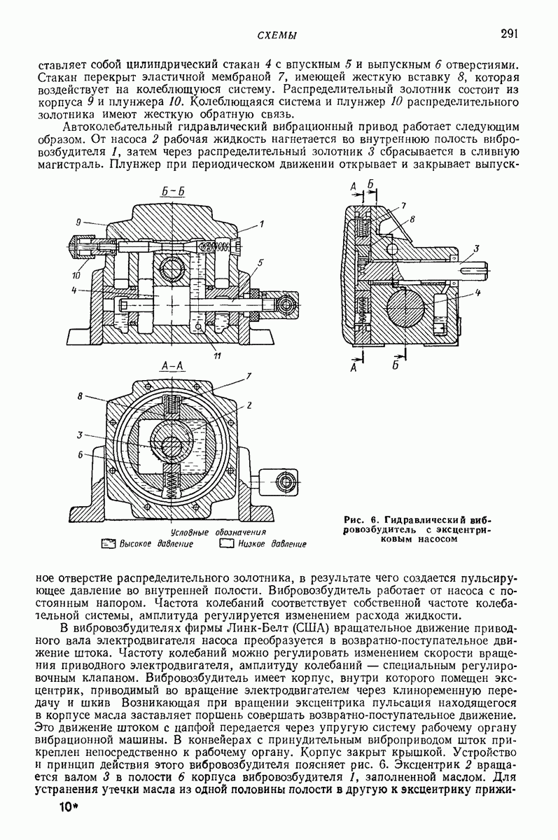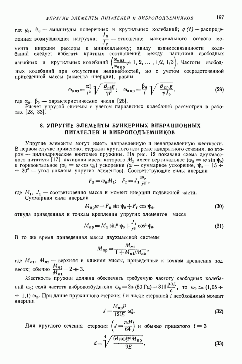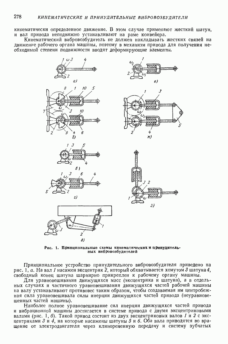 4. ОСОБЕННОСТИ ПРОЕКТИРОВАНИЯ МАШИНОдним из непременных условий успешной разработки и внедрения вибрационной машины является достаточно глубокая изученность соответствующего вибрационного процесса При этом должны быть известны если не оптимальные, то хотя бы приемлемые характер и параметры колебаний, обеспечивающие такое протекание процесса, при котором могут быть получены ощутимые технологические преимущества. При выборе параметров вибрационной машины должны приниматься во внимание пиковые и аварийные нагрузки, а также нагрузки в переходных нестационарных режимах Компоновка вибрационной машины в производственном помещении в совокупности с питающими, подводящими, отводящими и ограждающими устройствами должна допускать возможность кратковременных колебаний машины на внброизолирующих опорах с амплитудами, в несколько раз превышающими номинальные амплитуды колебаний в установившемся режиме (см гл X) В тех случаях, когда обрабатываемая среда или объект имеют массу, сопоставимую с массой рабочего органа машины, либо обладают значительным энергопоглощением, их необходимо тем или иным способом учитывать при анализе динамической схемы машины и расчете параметров колебаний [2, 11, 13, 14] Особенности проектирования рабочих органов машин. Рабочий орган вибрационной машины является узлом, который непосредственно передает вибрационное воздействие вызванное вибровозбудителями, обрабатываемой среде или объекту Форма и размеры рабочего органа определяются главным образом характером выполняемого машиной технологического процесса и заданной пронзьодительностью В общем случае рабочий орган представляет собой плоскую (деки концентрационных столов, сепараторов) или пространственную (коробы грохотов лотки конвейеров и питателей) металлоконструкции, либо массивное тело (бойки ударно вибрационных машин и т. п.) произвольной формы Основным требованием к конструкциям рабочих органов вибрационных машин (помимо чисто технологических) являются достаточная жесткость и уровень выносливости При достаточной жесткости обеспечиваются колебания рабочего органа с частотой вынуждающей силы как единого твердого тела и гарантируется отсутствие существенных дополнительных упругих колебаний рабочего органа, отдельных его элементов или участков (см также гл VII) Такие дополнительные упругие колебания рабочего органа возникают, как правило, на частоте вынуждающей силы или на кратных ей Вызывая дополнительные воздействия на обрабатываемую среду или объект, упругие колебания рабочего органа чаще нарушают нормальный ход технологического процесса и приводят, как правило, к появлению в элементах рабочего органа дополнительных знакопеременных напряжений Обычно необходимая жесткость рабочего органа достигается правильным выбором геометрических форм и размеров элементов, введением в конструкцию специальных элементов жесткости ребер, окантовок, поясов, распорок Число разъемных соединений должно быть по возможности минимальным Зачастую стремление сделать рабочий орган вибрационной машины универсальным сборно разборным (блочным) для быстрой переналадки или для унификации однотипных машин нескольких типоразмеров приводит к появлению большого числа разъемных соединений, в этих случаях жесткость рабочего органа существ
