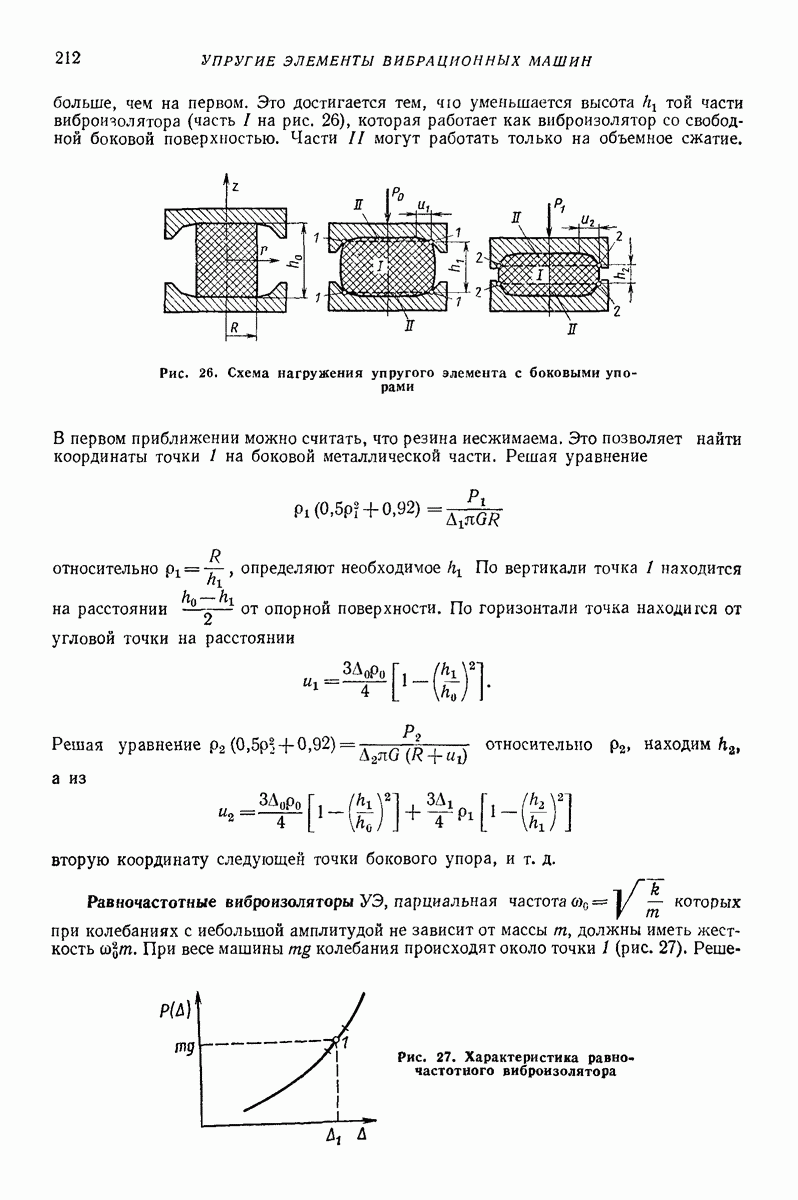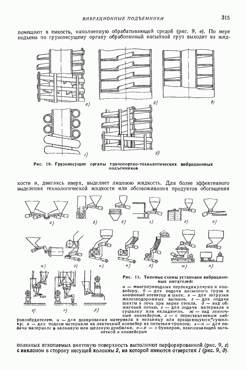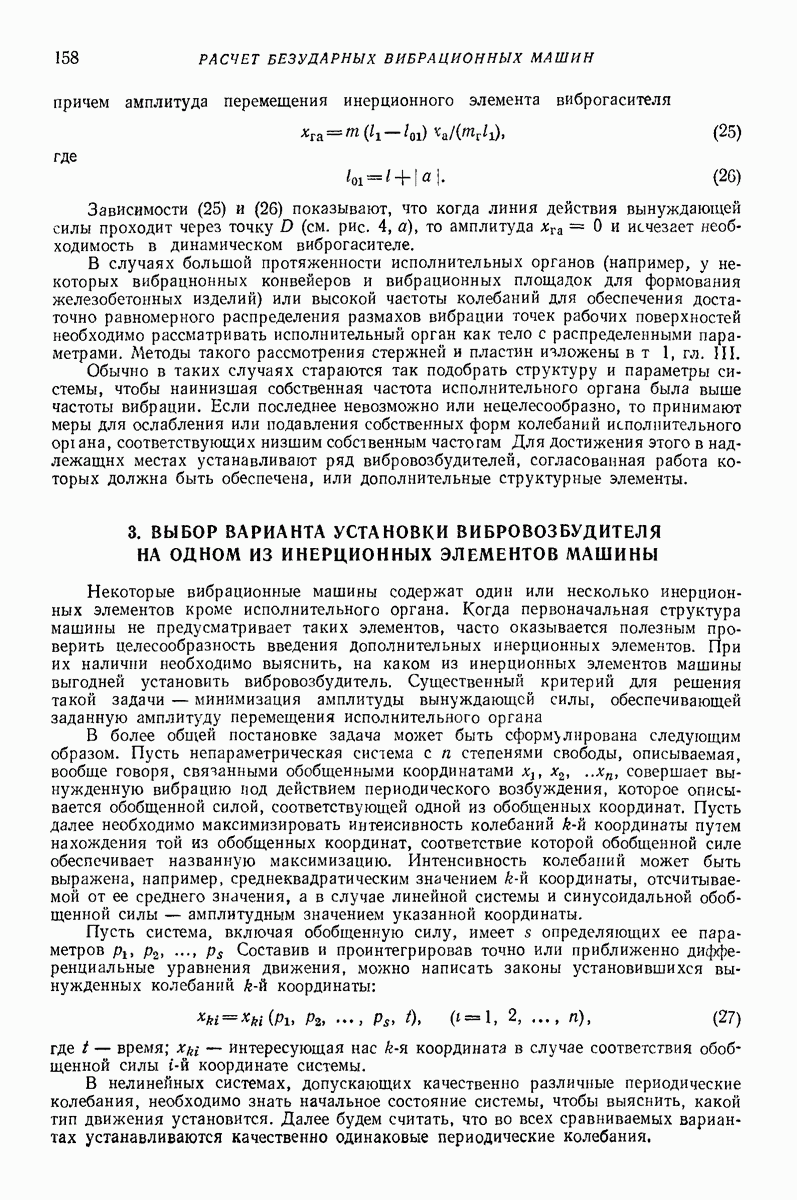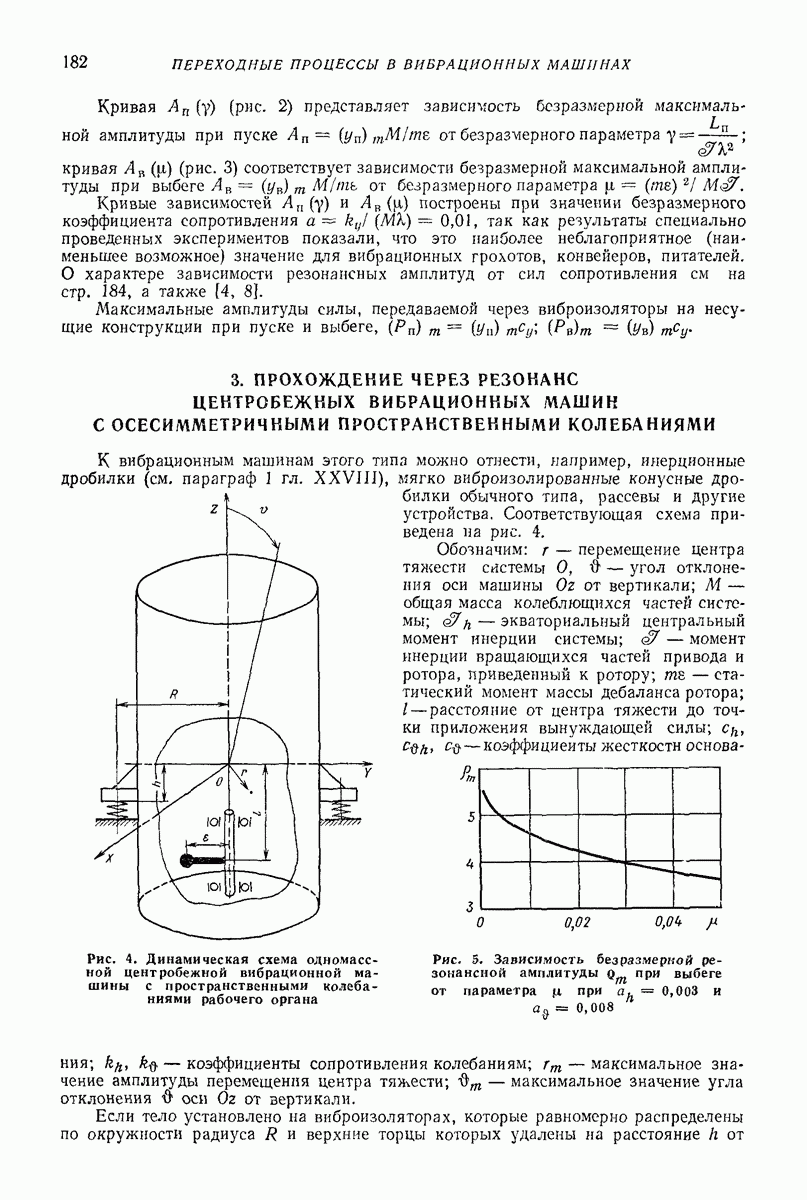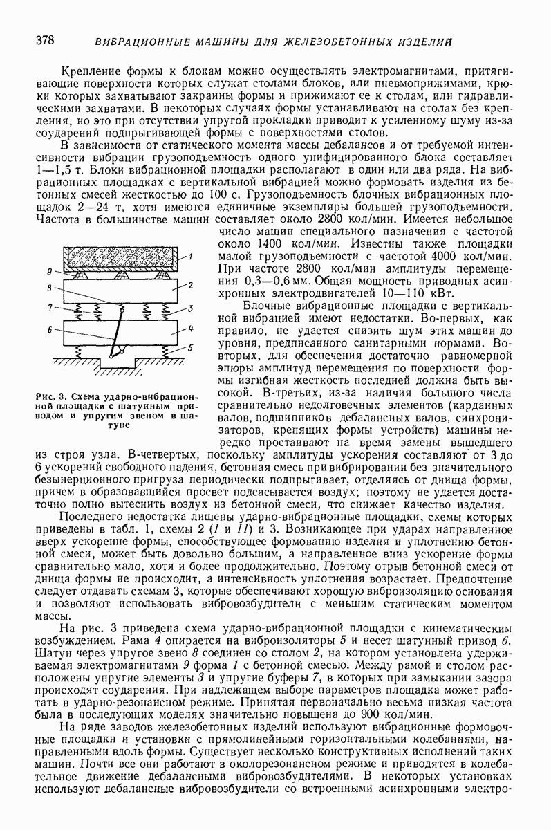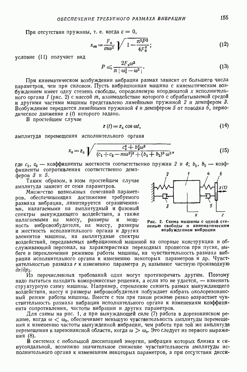 4. ОСОБЕННОСТИ ПРОЕКТИРОВАНИЯ МАШИНОдним из непременных условий успешной разработки и внедрения вибрационной машины является достаточно глубокая изученность соответствующего вибрационного процесса При этом должны быть известны если не оптимальные, то хотя бы приемлемые характер и параметры колебаний, обеспечивающие такое протекание процесса, при котором могут быть получены ощутимые технологические преимущества. При выборе параметров вибрационной машины должны приниматься во внимание пиковые и аварийные нагрузки, а также нагрузки в переходных нестационарных режимах Компоновка вибрационной машины в производственном помещении в совокупности с питающими, подводящими, отводящими и ограждающими устройствами должна допускать возможность кратковременных колебаний машины на внброизолирующих опорах с амплитудами, в несколько раз превышающими номинальные амплитуды колебаний в установившемся режиме (см гл X) В тех случаях, когда обрабатываемая среда или объект имеют массу, сопоставимую с массой рабочего органа машины, либо обладают значительным энергопоглощением, их необходимо тем или иным способом учитывать при анализе динамической схемы машины и расчете параметров колебаний [2, 11, 13, 14] Особенности проектирования рабочих органов машин. Рабочий орган вибрационной машины является узлом, который непосредственно передает вибрационное воздействие вызванное вибровозбудителями, обрабатываемой среде или объекту Форма и размеры рабочего органа определяются главным образом характером выполняемого машиной технологического процесса и заданной пронзьодительностью В общем случае рабочий орган представляет собой плоскую (деки концентрационных столов, сепараторов) или пространственную (коробы грохотов лотки конвейеров и питателей) металлоконструкции, либо массивное тело (бойки ударно вибрационных машин и т. п.) произвольной формы Основным требованием к конструкциям рабочих органов вибрационных машин (помимо чисто технологических) являются достаточная жесткость и уровень выносливости При достаточной жесткости обеспечиваются колебания рабочего органа с частотой вынуждающей силы как единого твердого тела и гарантируется отсутствие существенных дополнительных упругих колебаний рабочего органа, отдельных его элементов или участков (см также гл VII) Такие дополнительные упругие колебания рабочего органа возникают, как правило, на частоте вынуждающей силы или на кратных ей Вызывая дополнительные воздействия на обрабатываемую среду или объект, упругие колебания рабочего органа чаще нарушают нормальный ход технологического процесса и приводят, как правило, к появлению в элементах рабочего органа дополнительных знакопеременных напряжений Обычно необходимая жесткость рабочего органа достигается правильным выбором геометрических форм и размеров элементов, введением в конструкцию специальных элементов жесткости ребер, окантовок, поясов, распорок Число разъемных соединений должно быть по возможности минимальным Зачастую стремление сделать рабочий орган вибрационной машины универсальным сборно разборным (блочным) для быстрой переналадки или для унификации однотипных машин нескольких типоразмеров приводит к появлению большого числа разъемных соединений, в этих случаях жесткость рабочего органа существ