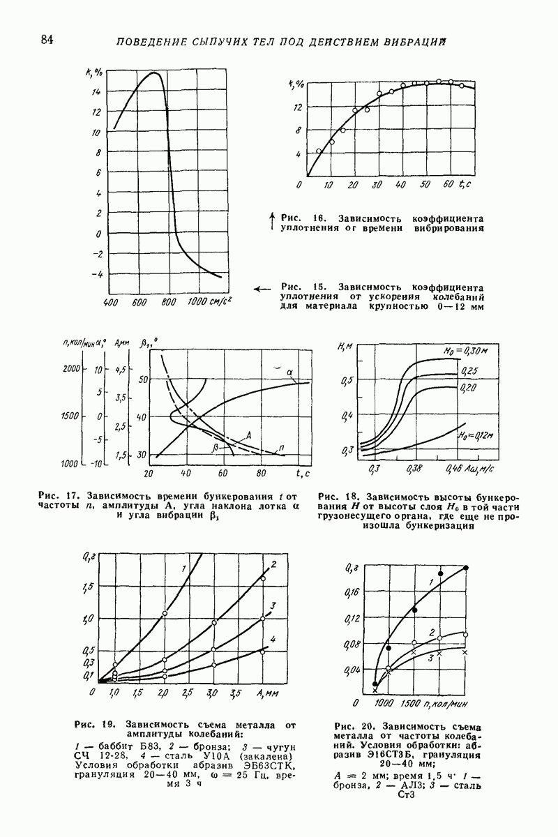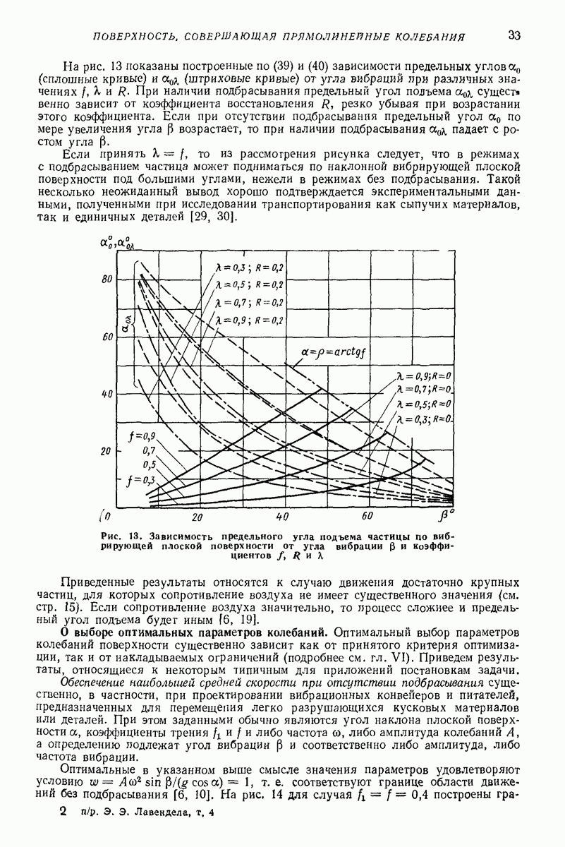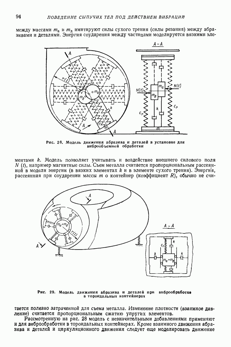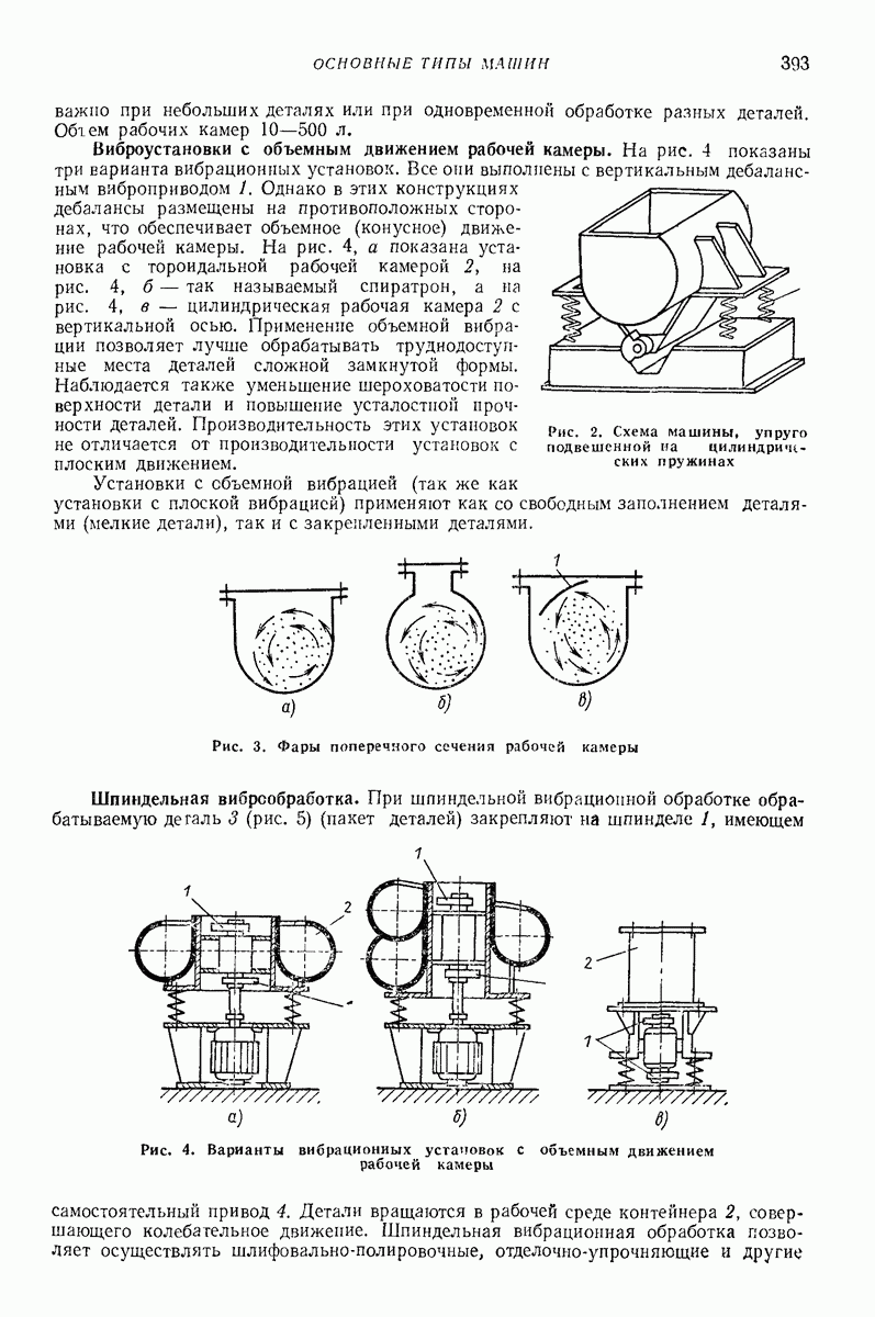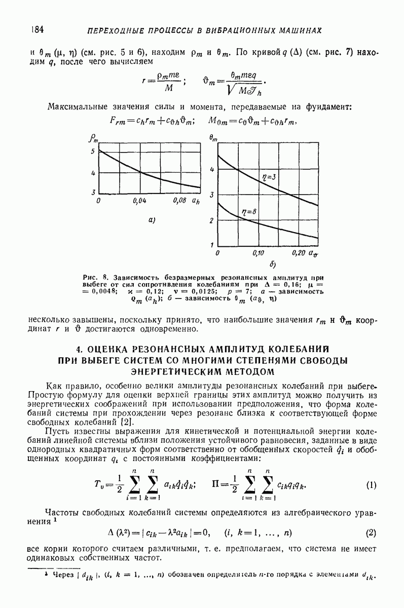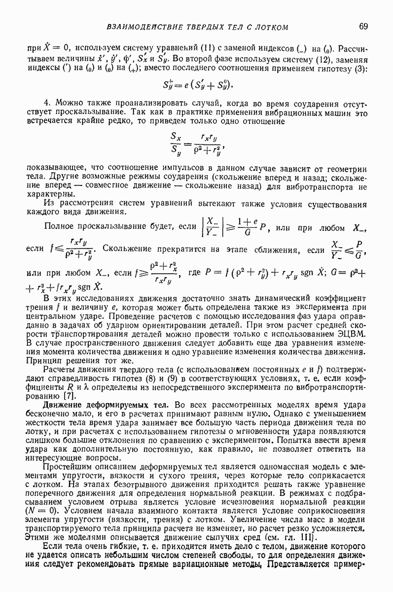 4. ОСОБЕННОСТИ ПРОЕКТИРОВАНИЯ МАШИНОдним из непременных условий успешной разработки и внедрения вибрационной машины является достаточно глубокая изученность соответствующего вибрационного процесса При этом должны быть известны если не оптимальные, то хотя бы приемлемые характер и параметры колебаний, обеспечивающие такое протекание процесса, при котором могут быть получены ощутимые технологические преимущества. При выборе параметров вибрационной машины должны приниматься во внимание пиковые и аварийные нагрузки, а также нагрузки в переходных нестационарных режимах Компоновка вибрационной машины в производственном помещении в совокупности с питающими, подводящими, отводящими и ограждающими устройствами должна допускать возможность кратковременных колебаний машины на внброизолирующих опорах с амплитудами, в несколько раз превышающими номинальные амплитуды колебаний в установившемся режиме (см гл X) В тех случаях, когда обрабатываемая среда или объект имеют массу, сопоставимую с массой рабочего органа машины, либо обладают значительным энергопоглощением, их необходимо тем или иным способом учитывать при анализе динамической схемы машины и расчете параметров колебаний [2, 11, 13, 14] Особенности проектирования рабочих органов машин. Рабочий орган вибрационной машины является узлом, который непосредственно передает вибрационное воздействие вызванное вибровозбудителями, обрабатываемой среде или объекту Форма и размеры рабочего органа определяются главным образом характером выполняемого машиной технологического процесса и заданной пронзьодительностью В общем случае рабочий орган представляет собой плоскую (деки концентрационных столов, сепараторов) или пространственную (коробы грохотов лотки конвейеров и питателей) металлоконструкции, либо массивное тело (бойки ударно вибрационных машин и т. п.) произвольной формы Основным требованием к конструкциям рабочих органов вибрационных машин (помимо чисто технологических) являются достаточная жесткость и уровень выносливости При достаточной жесткости обеспечиваются колебания рабочего органа с частотой вынуждающей силы как единого твердого тела и гарантируется отсутствие существенных дополнительных упругих колебаний рабочего органа, отдельных его элементов или участков (см также гл VII) Такие дополнительные упругие колебания рабочего органа возникают, как правило, на частоте вынуждающей силы или на кратных ей Вызывая дополнительные воздействия на обрабатываемую среду или объект, упругие колебания рабочего органа чаще нарушают нормальный ход технологического процесса и приводят, как правило, к появлению в элементах рабочего органа дополнительных знакопеременных напряжений Обычно необходимая жесткость рабочего органа достигается правильным выбором геометрических форм и размеров элементов, введением в конструкцию специальных элементов жесткости ребер, окантовок, поясов, распорок Число разъемных соединений должно быть по возможности минимальным Зачастую стремление сделать рабочий орган вибрационной машины универсальным сборно разборным (блочным) для быстрой переналадки или для унификации однотипных машин нескольких типоразмеров приводит к появлению большого числа разъемных соединений, в этих случаях жесткость рабочего органа существ