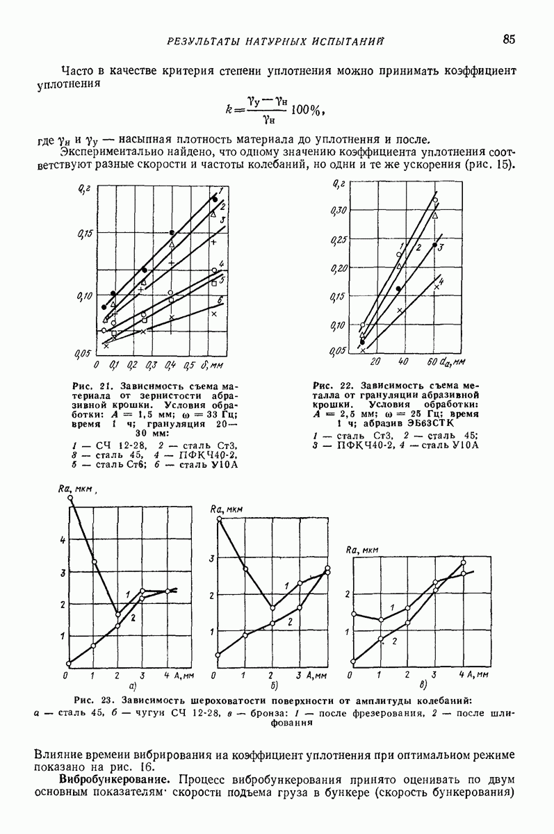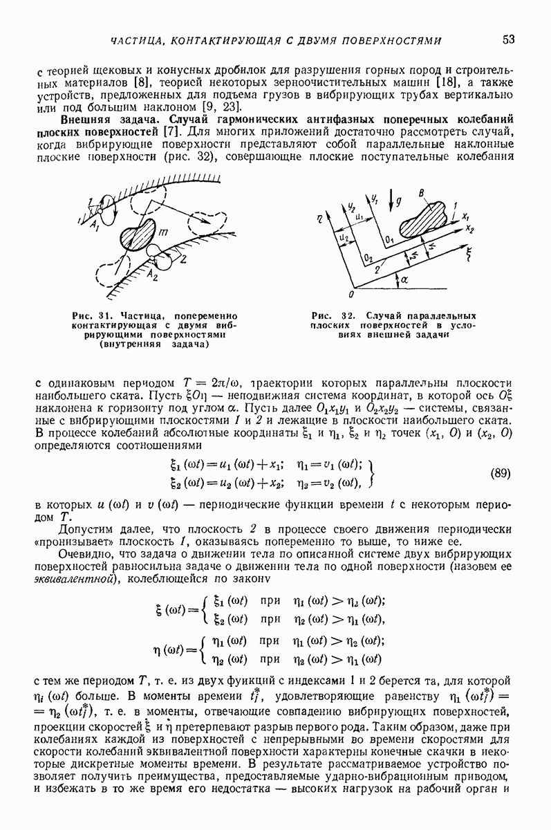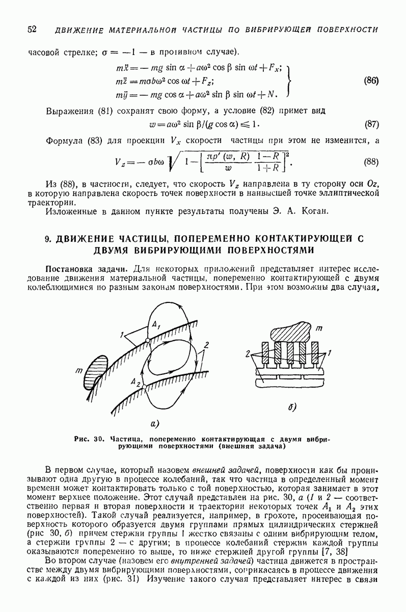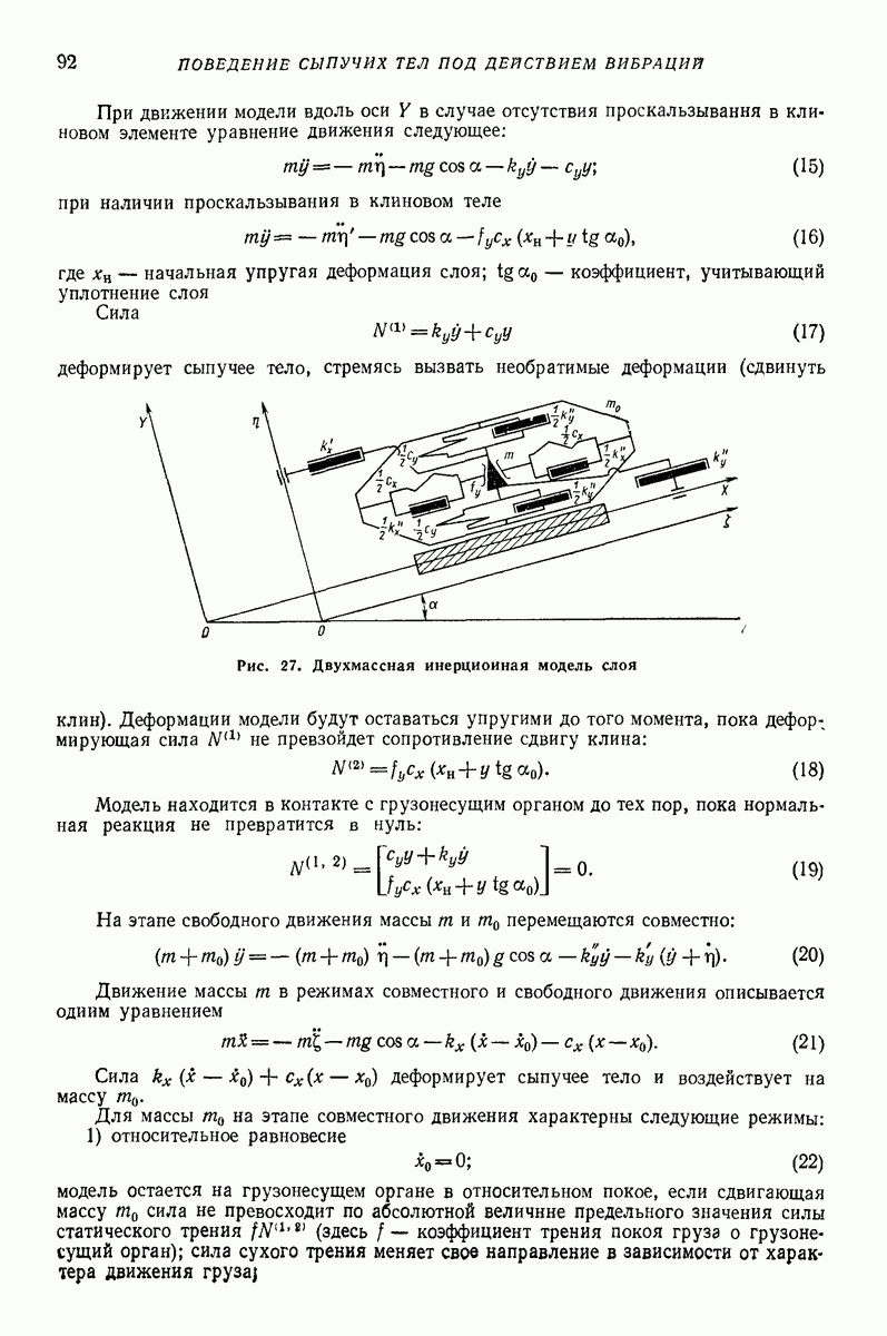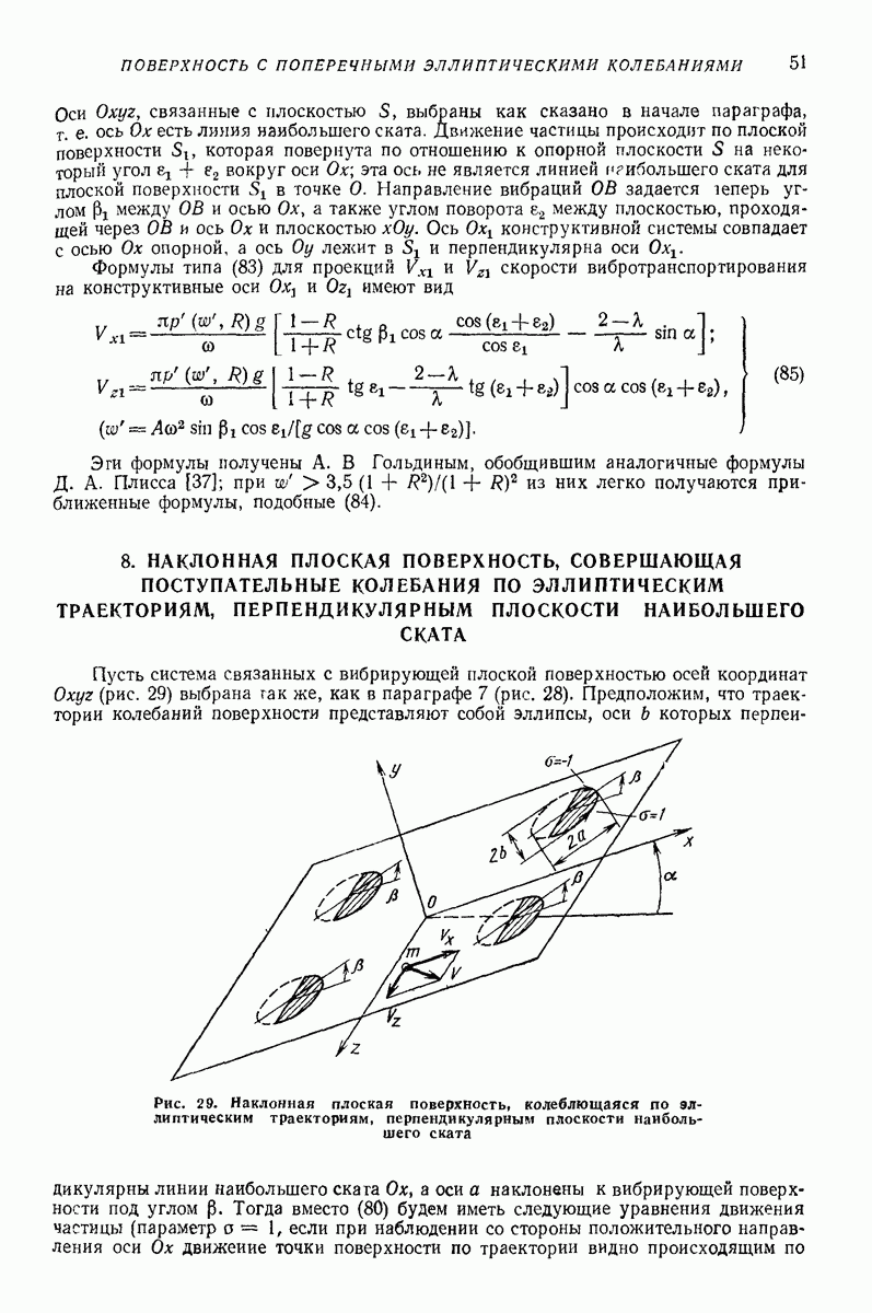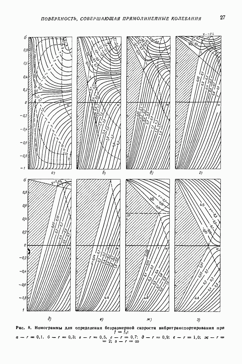 4. ОСОБЕННОСТИ ПРОЕКТИРОВАНИЯ МАШИНОдним из непременных условий успешной разработки и внедрения вибрационной машины является достаточно глубокая изученность соответствующего вибрационного процесса При этом должны быть известны если не оптимальные, то хотя бы приемлемые характер и параметры колебаний, обеспечивающие такое протекание процесса, при котором могут быть получены ощутимые технологические преимущества. При выборе параметров вибрационной машины должны приниматься во внимание пиковые и аварийные нагрузки, а также нагрузки в переходных нестационарных режимах Компоновка вибрационной машины в производственном помещении в совокупности с питающими, подводящими, отводящими и ограждающими устройствами должна допускать возможность кратковременных колебаний машины на внброизолирующих опорах с амплитудами, в несколько раз превышающими номинальные амплитуды колебаний в установившемся режиме (см гл X) В тех случаях, когда обрабатываемая среда или объект имеют массу, сопоставимую с массой рабочего органа машины, либо обладают значительным энергопоглощением, их необходимо тем или иным способом учитывать при анализе динамической схемы машины и расчете параметров колебаний [2, 11, 13, 14] Особенности проектирования рабочих органов машин. Рабочий орган вибрационной машины является узлом, который непосредственно передает вибрационное воздействие вызванное вибровозбудителями, обрабатываемой среде или объекту Форма и размеры рабочего органа определяются главным образом характером выполняемого машиной технологического процесса и заданной пронзьодительностью В общем случае рабочий орган представляет собой плоскую (деки концентрационных столов, сепараторов) или пространственную (коробы грохотов лотки конвейеров и питателей) металлоконструкции, либо массивное тело (бойки ударно вибрационных машин и т. п.) произвольной формы Основным требованием к конструкциям рабочих органов вибрационных машин (помимо чисто технологических) являются достаточная жесткость и уровень выносливости При достаточной жесткости обеспечиваются колебания рабочего органа с частотой вынуждающей силы как единого твердого тела и гарантируется отсутствие существенных дополнительных упругих колебаний рабочего органа, отдельных его элементов или участков (см также гл VII) Такие дополнительные упругие колебания рабочего органа возникают, как правило, на частоте вынуждающей силы или на кратных ей Вызывая дополнительные воздействия на обрабатываемую среду или объект, упругие колебания рабочего органа чаще нарушают нормальный ход технологического процесса и приводят, как правило, к появлению в элементах рабочего органа дополнительных знакопеременных напряжений Обычно необходимая жесткость рабочего органа достигается правильным выбором геометрических форм и размеров элементов, введением в конструкцию специальных элементов жесткости ребер, окантовок, поясов, распорок Число разъемных соединений должно быть по возможности минимальным Зачастую стремление сделать рабочий орган вибрационной машины универсальным сборно разборным (блочным) для быстрой переналадки или для унификации однотипных машин нескольких типоразмеров приводит к появлению большого числа разъемных соединений, в этих случаях жесткость рабочего органа существ