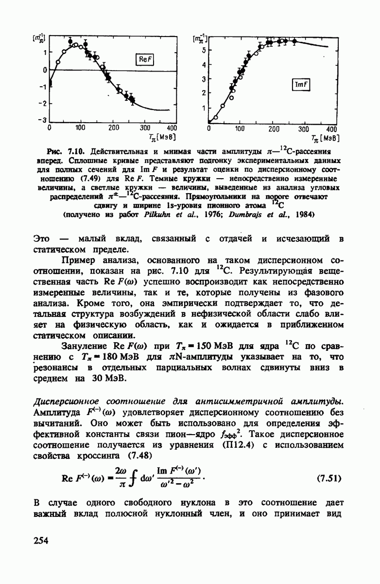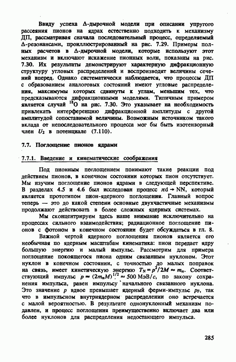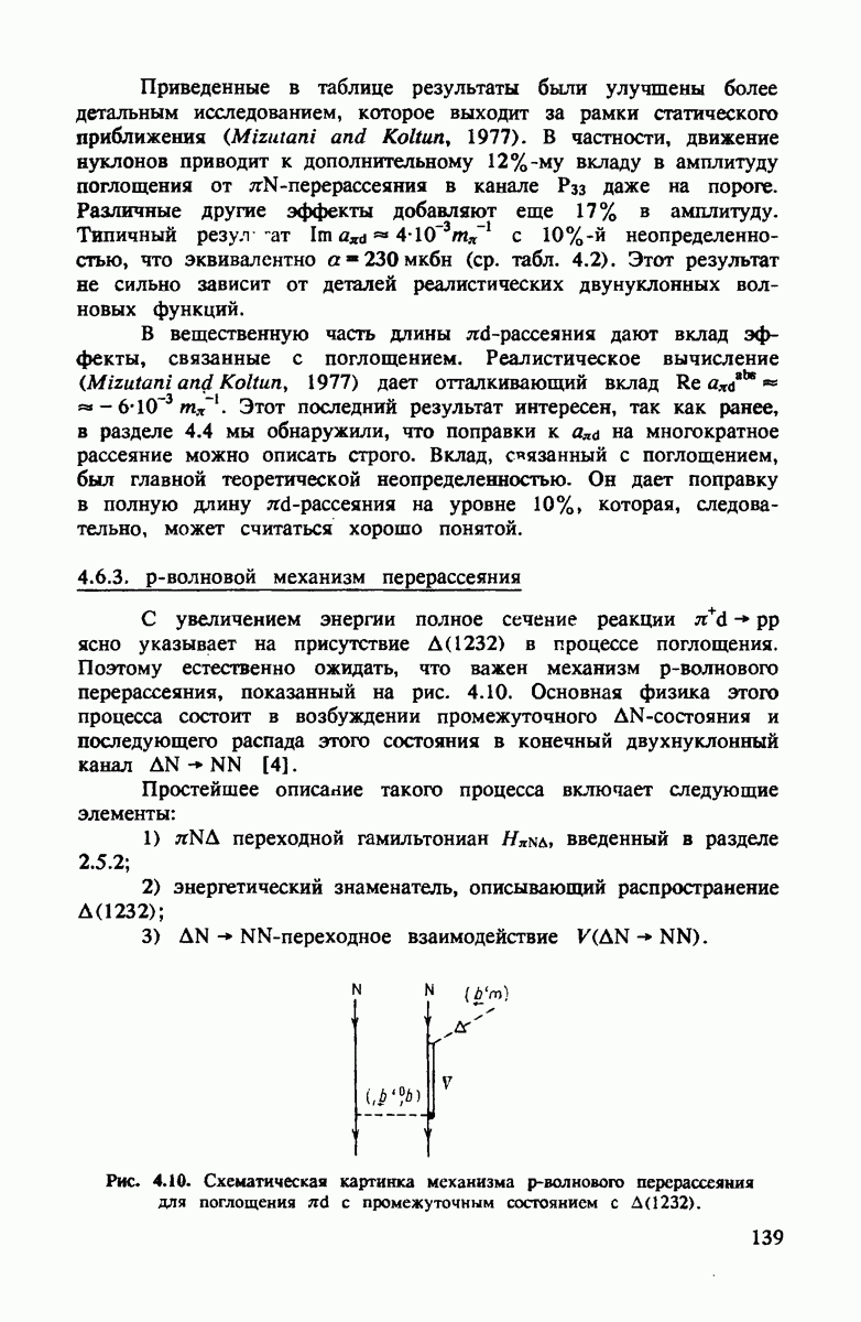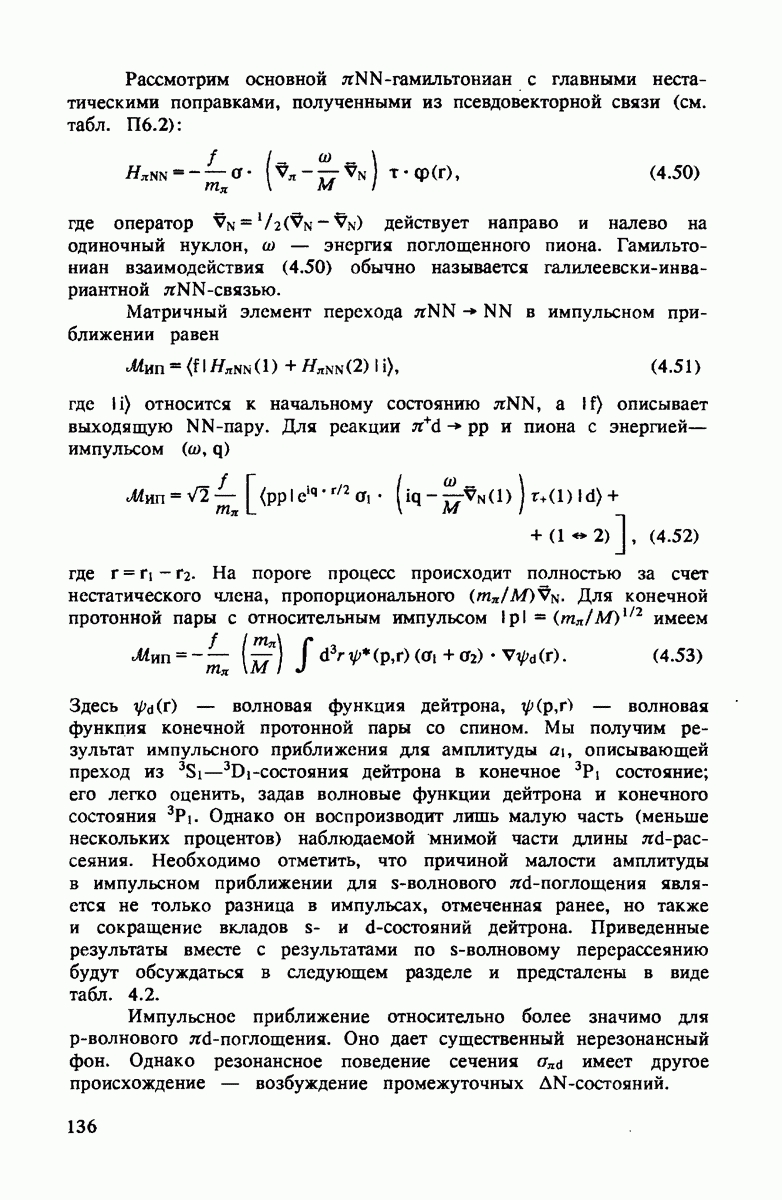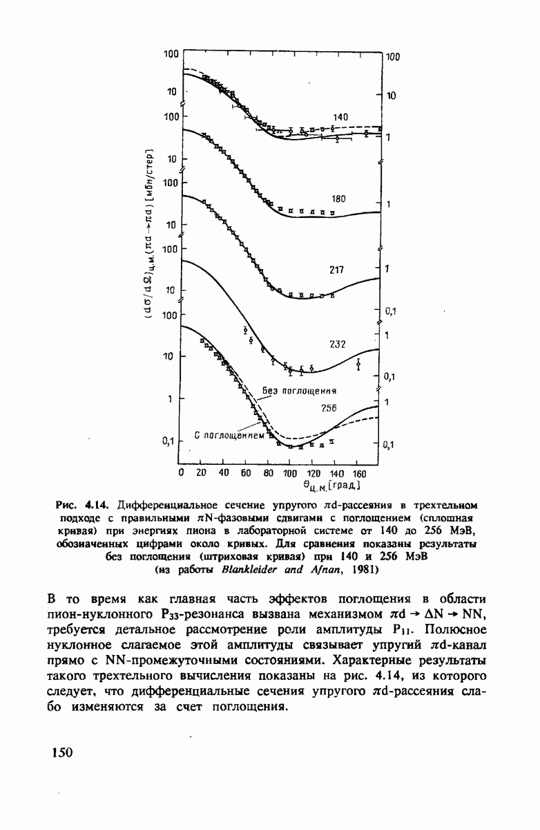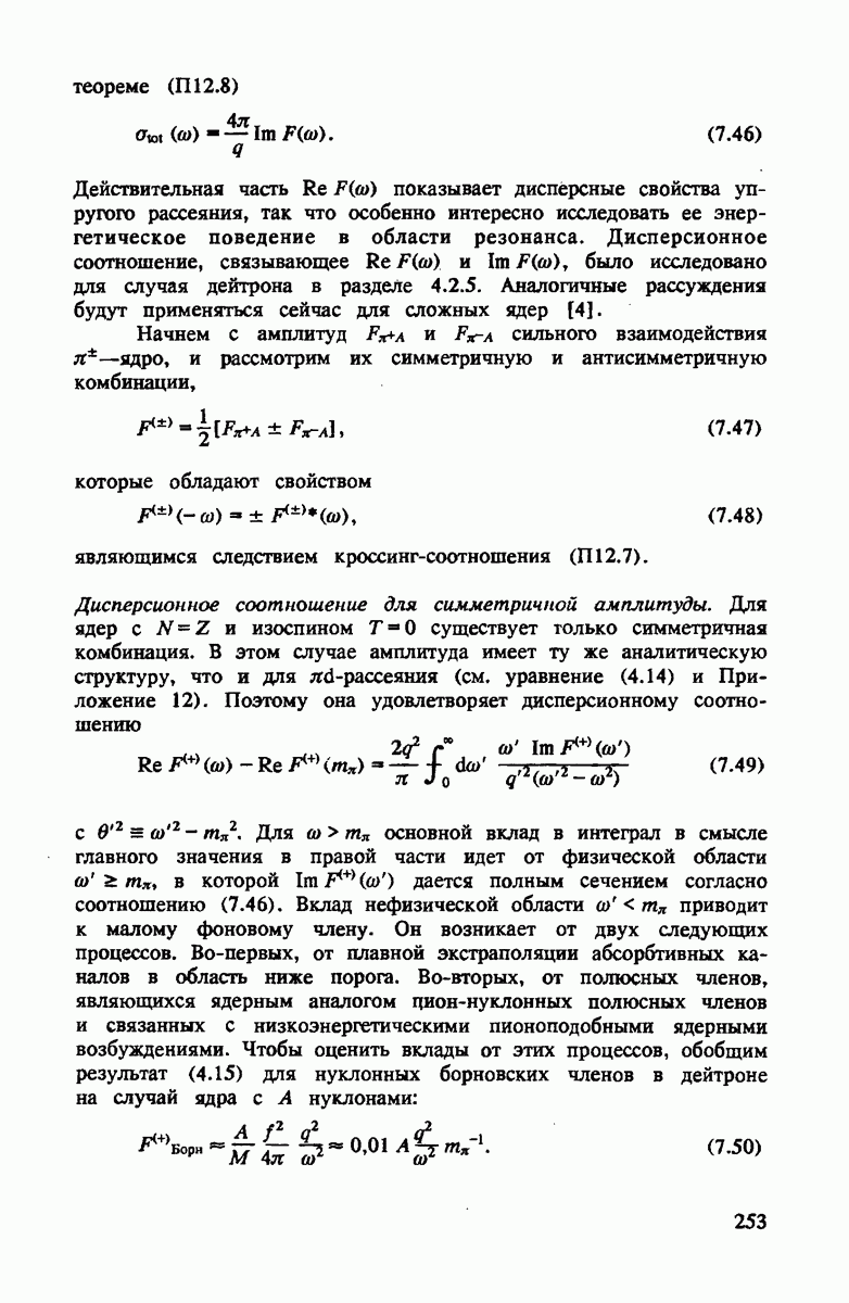 ниже 100 МэВ и вплоть до 1 ГэВ. Наиболее важное предположение состоит в том, что дейтрон состоит из нуклонов, которые рассеивают пионы так же, как свободные нуклоны, за исключением кинематических поправок и поправок на энергию связи. Естественным следствием этой картины является четко видимое проявление пион-нуклонных резонансов в