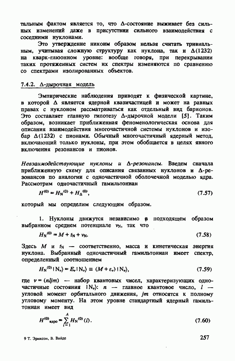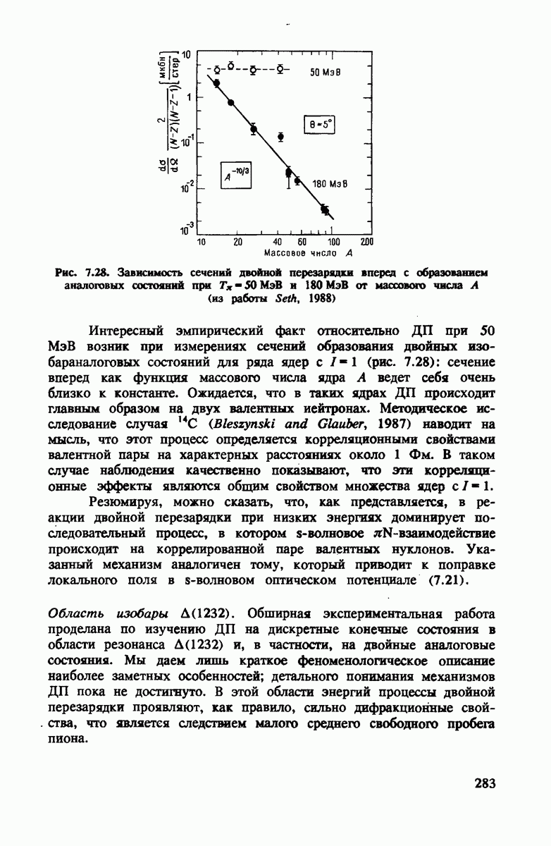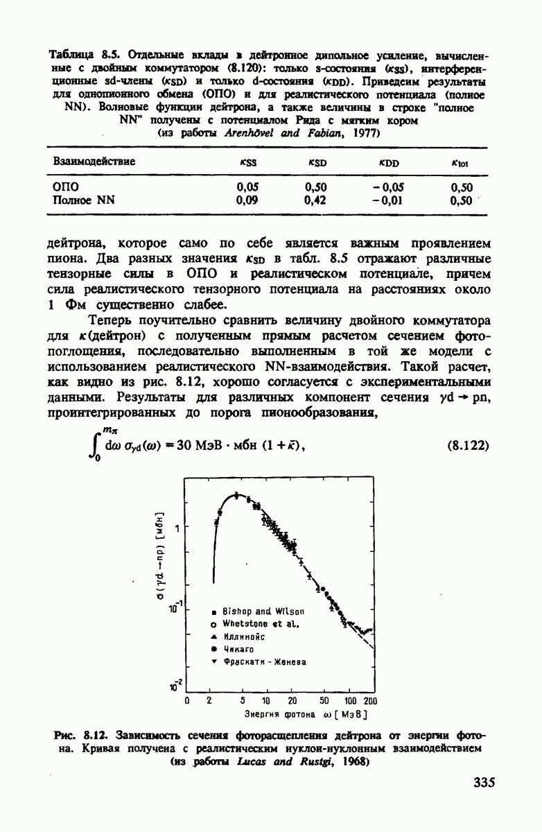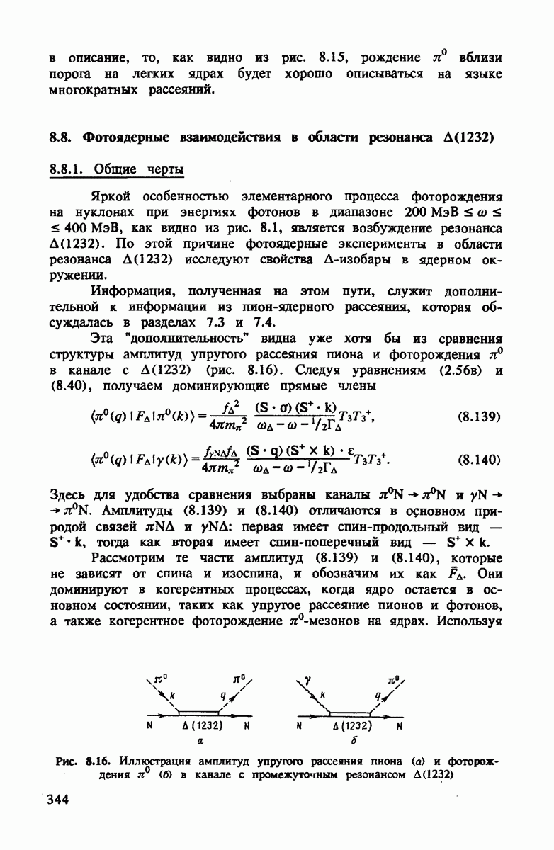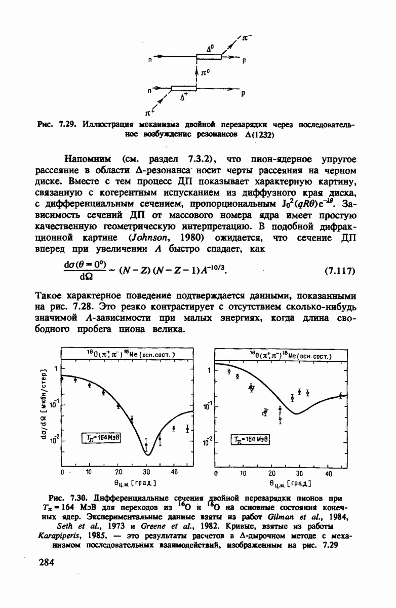 ниже 100 МэВ и вплоть до 1 ГэВ. Наиболее важное предположение состоит в том, что дейтрон состоит из нуклонов, которые рассеивают пионы так же, как свободные нуклоны, за исключением кинематических поправок и поправок на энергию связи. Естественным следствием этой картины является четко видимое проявление пион-нуклонных резонансов в