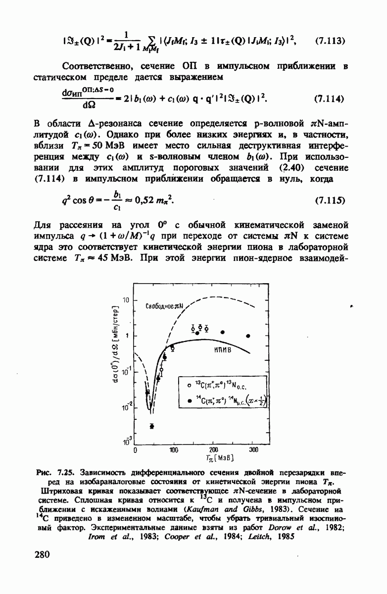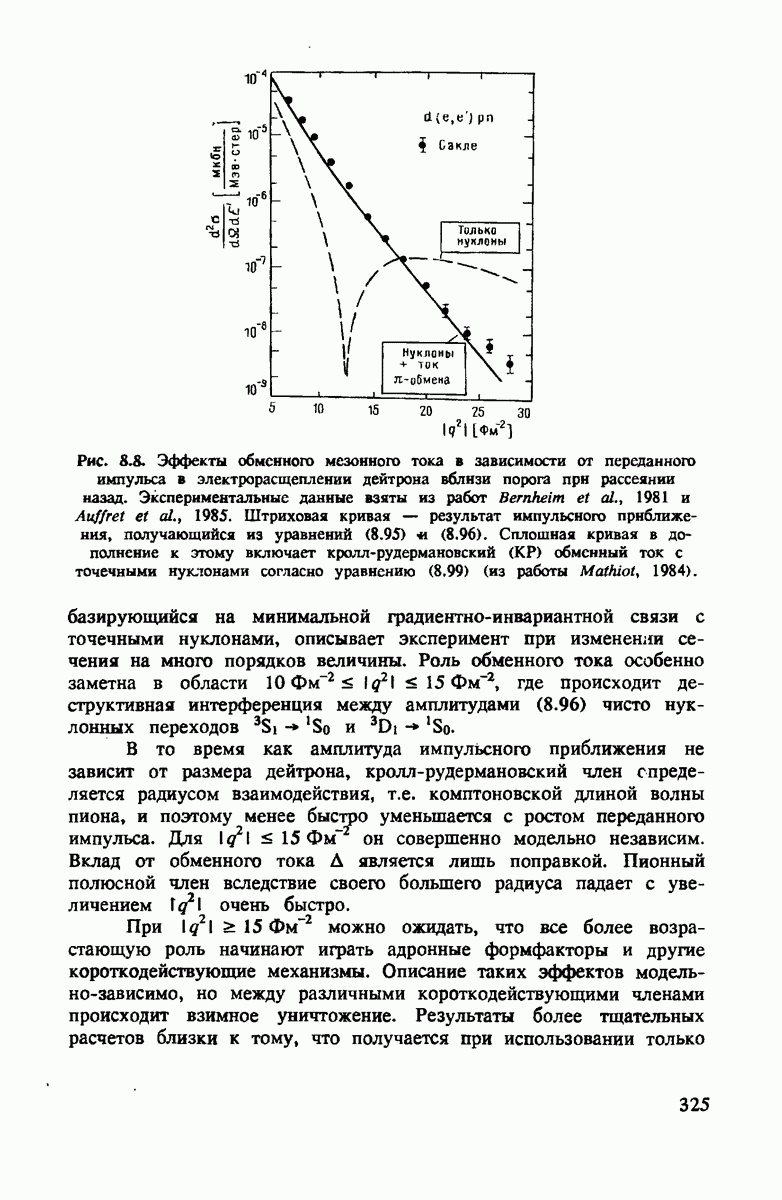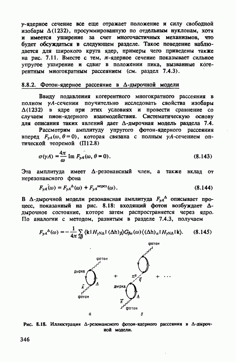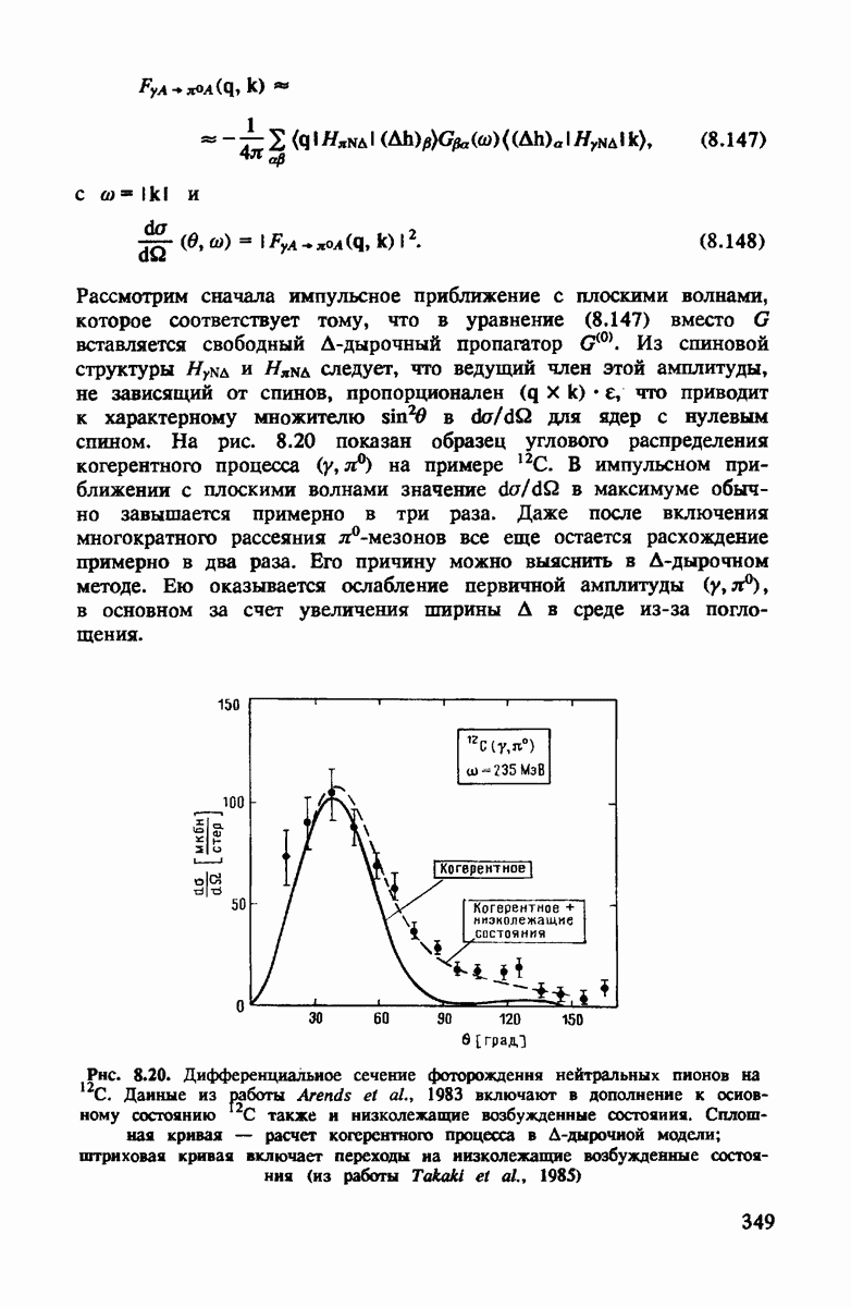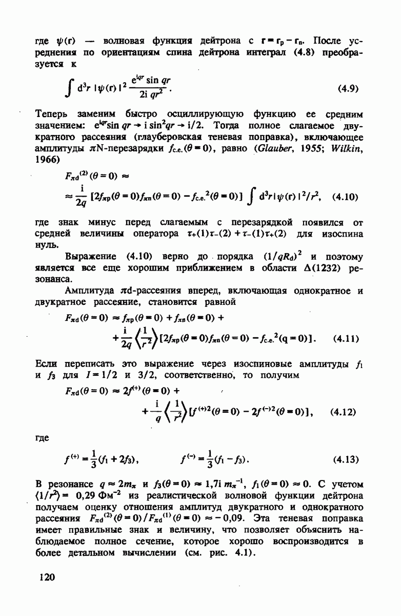 показанная на рис. 4.4. Как и для полного сечения, в этом случае хорошим приближением является уже сумма амплитуд на нейтроне и протоне. Основная поправка опять происходит от движения нуклона. Двукратное рассеяние дает положительный вклад выше