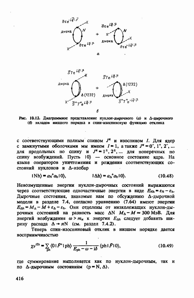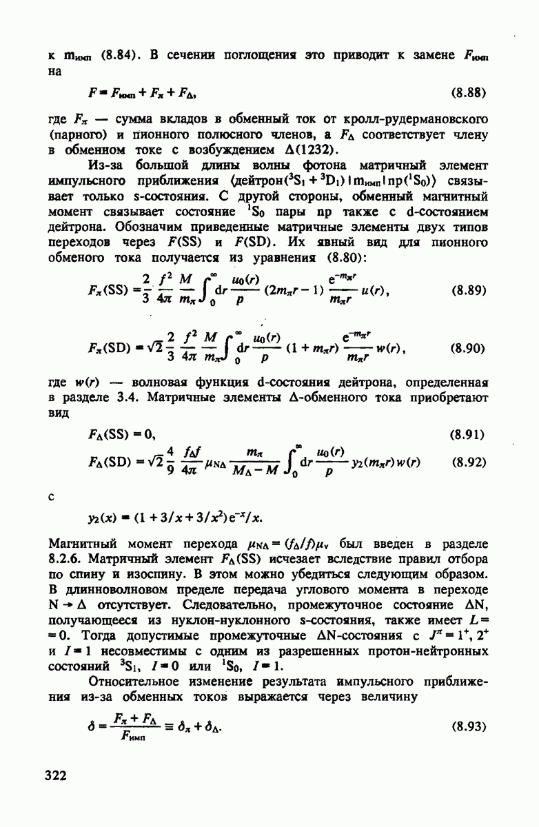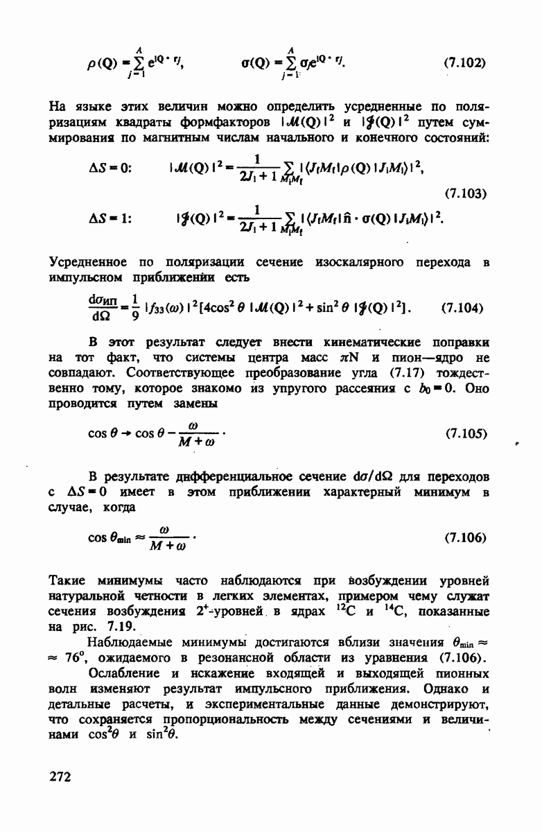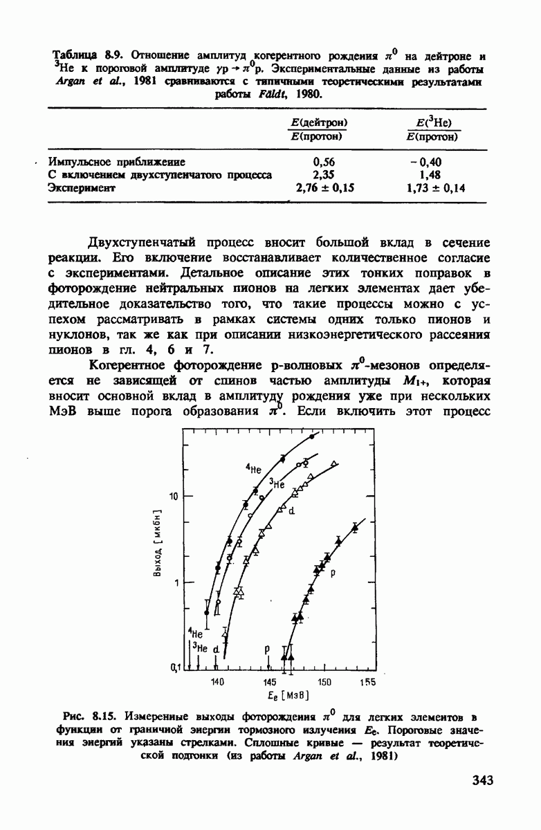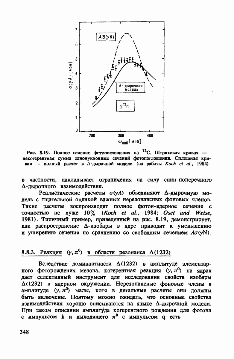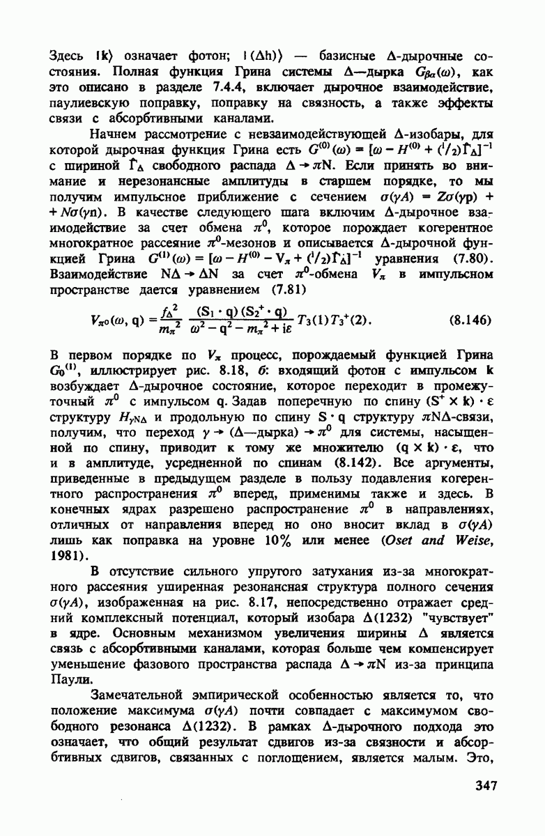 показанная на рис. 4.4. Как и для полного сечения, в этом случае хорошим приближением является уже сумма амплитуд на нейтроне и протоне. Основная поправка опять происходит от движения нуклона. Двукратное рассеяние дает положительный вклад выше