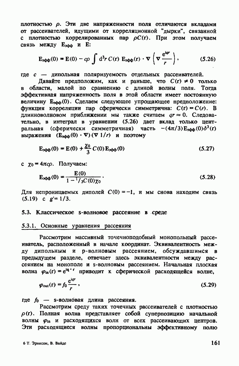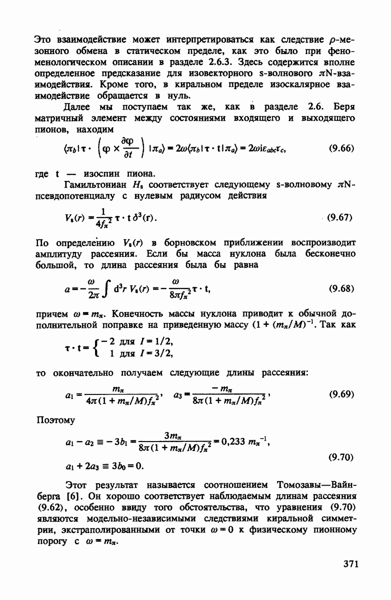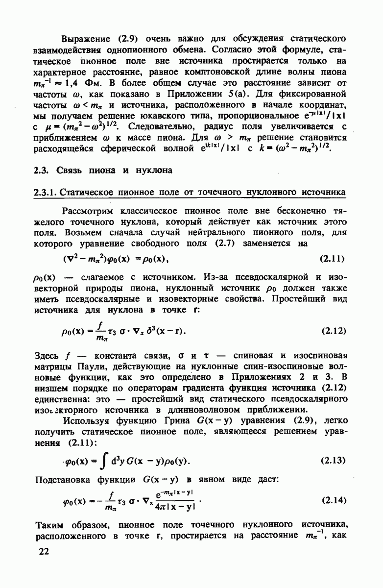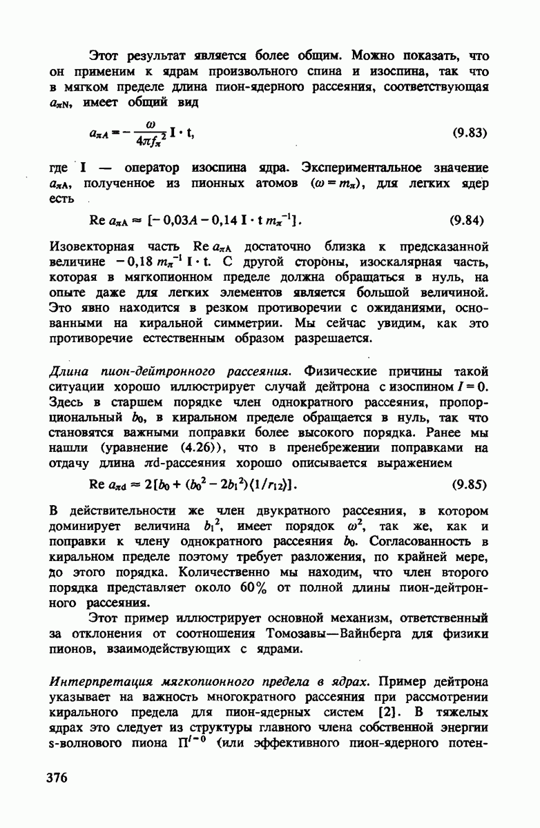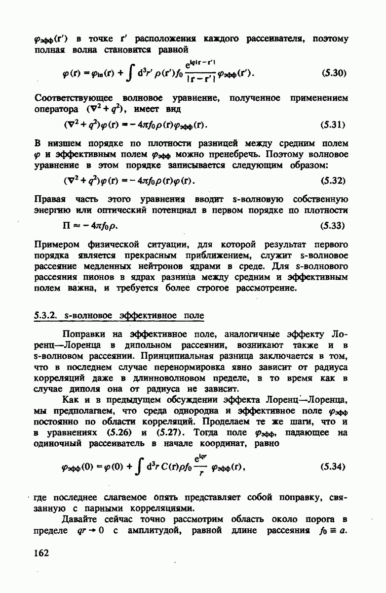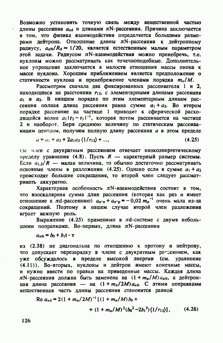 должны быть примерно равными. Более того, малый размер рассеивающих центров в сравнении с боыпим средним расстоянием между ними означает, что пион распространяется между этими двумя центрами как свободная сферическая волна
