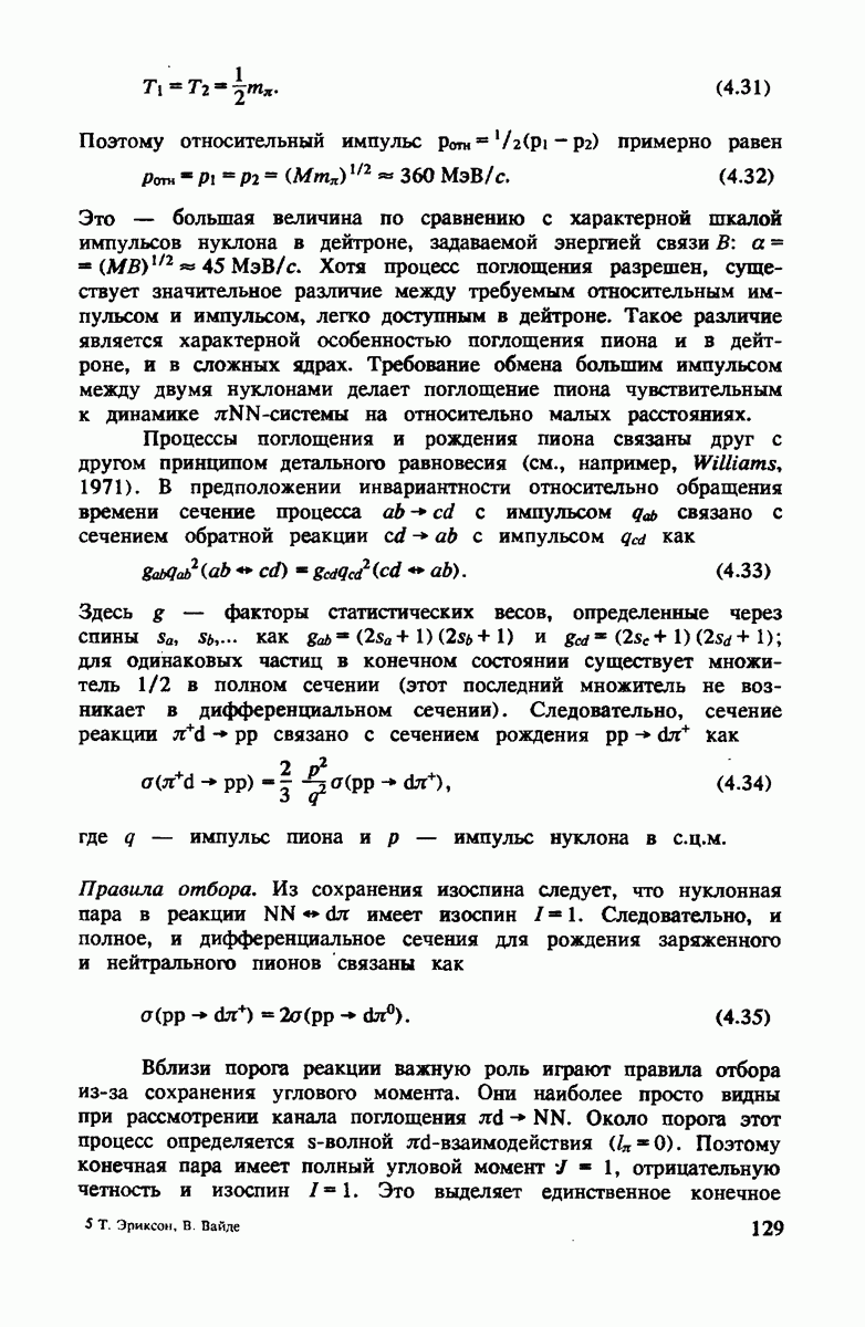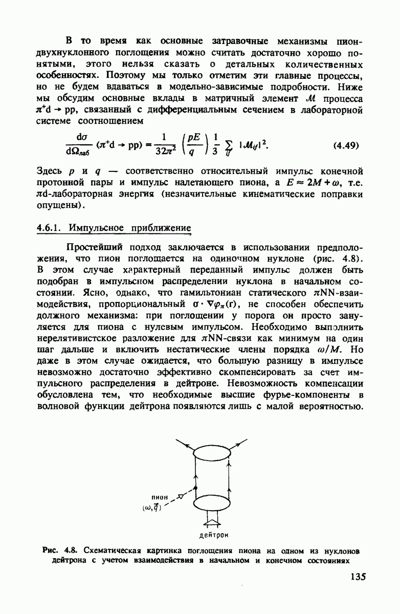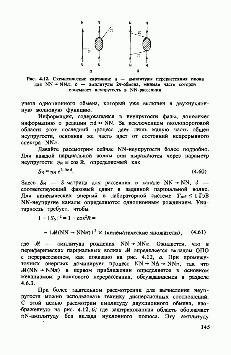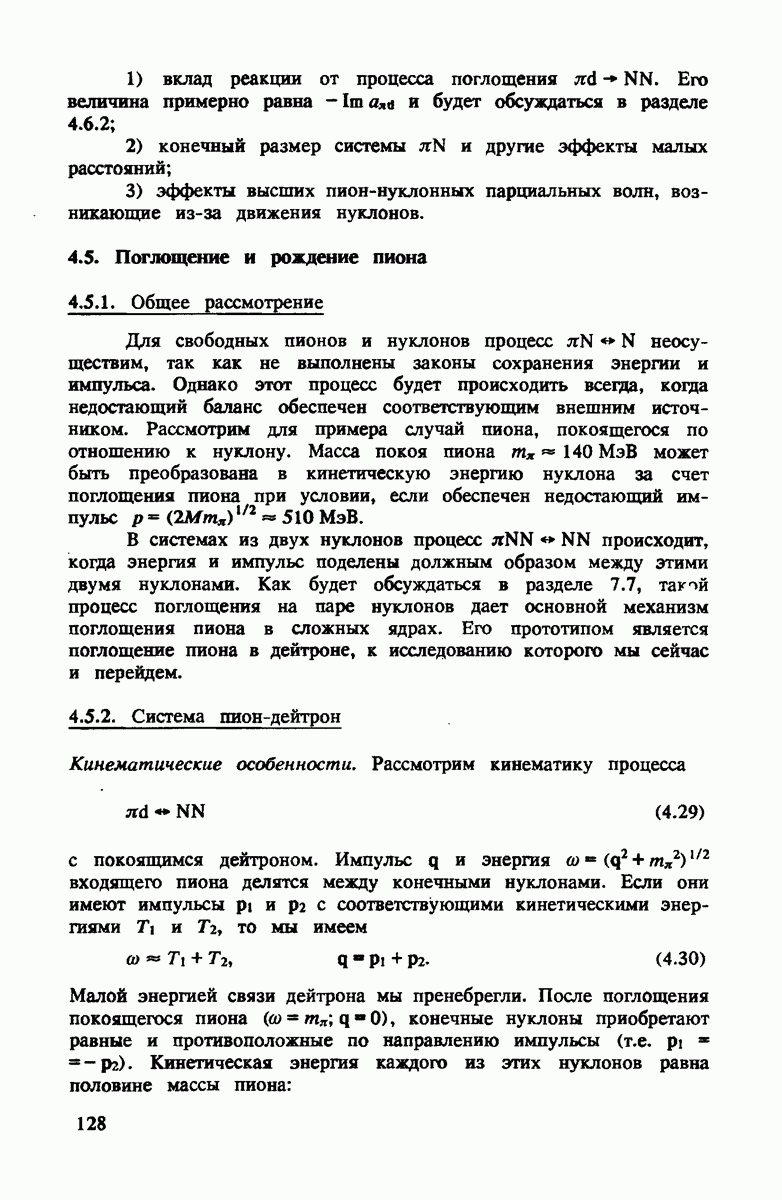 Комбинация этих двух условий приводит к тому, что промежуточный пион на рис. 4.3 распространяется предпочтительно вперед с энергией, равной начальной, т.е.