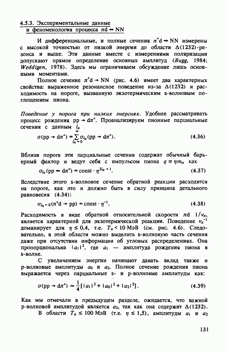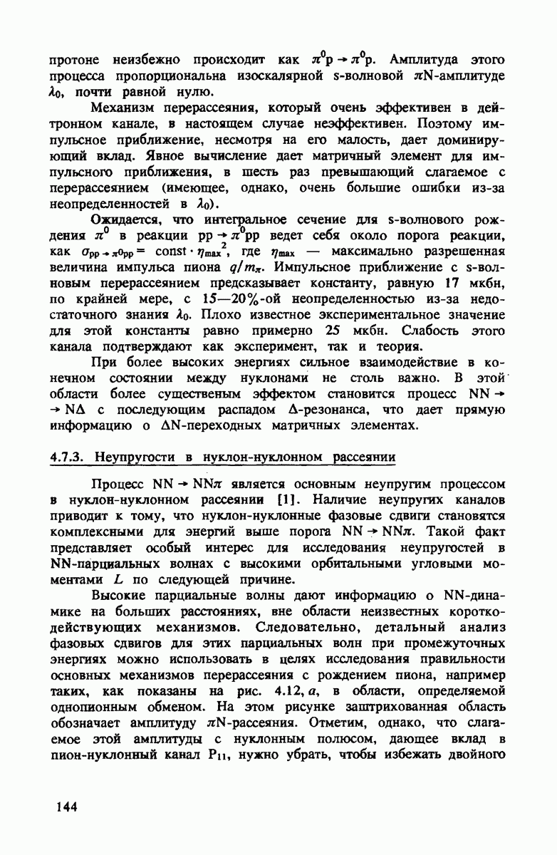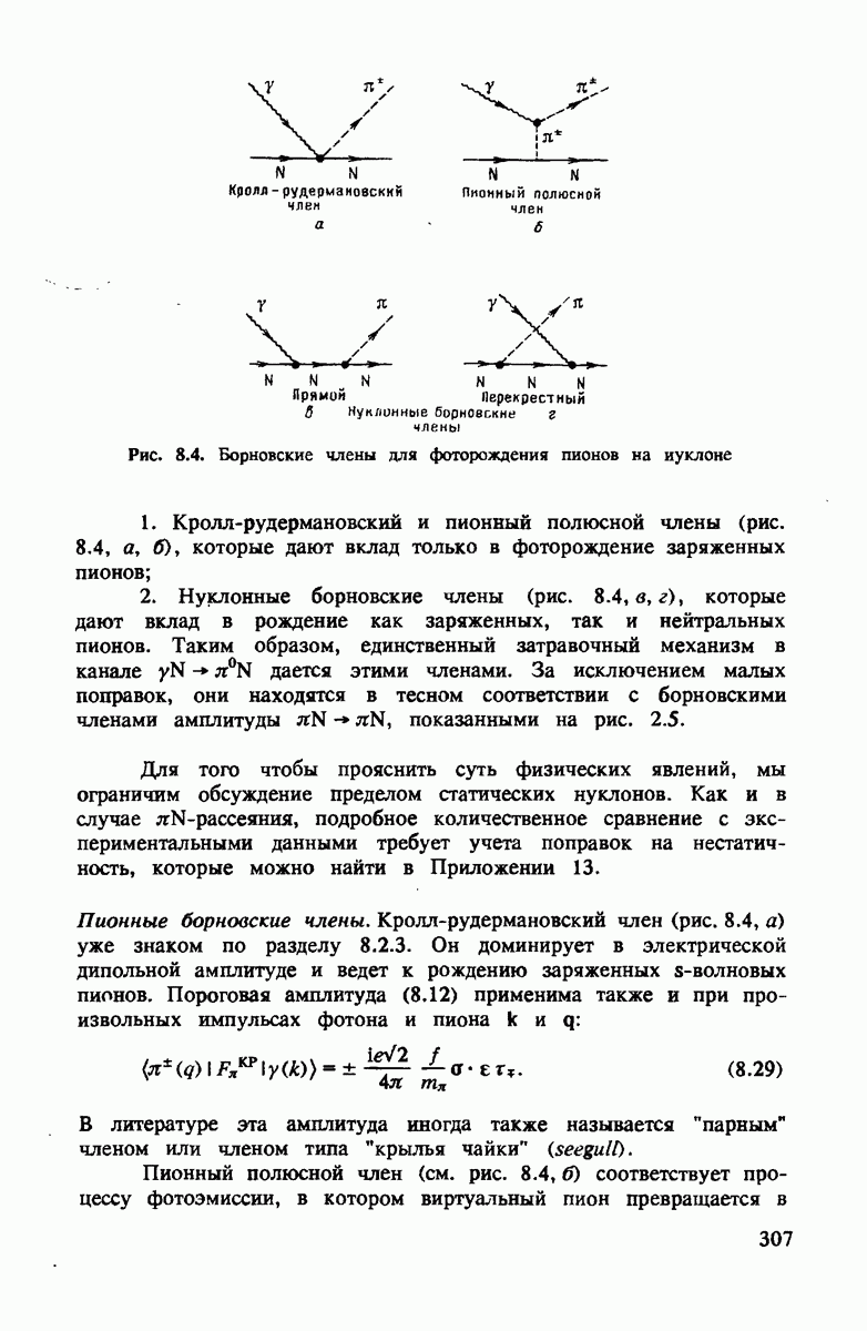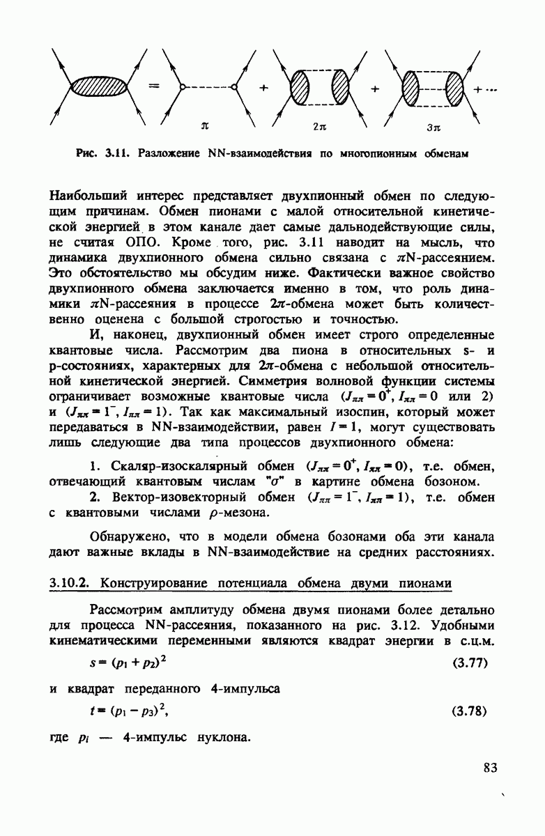Комбинация этих двух условий приводит к тому, что промежуточный пион на рис. 4.3 распространяется предпочтительно вперед с энергией, равной начальной, т.е.