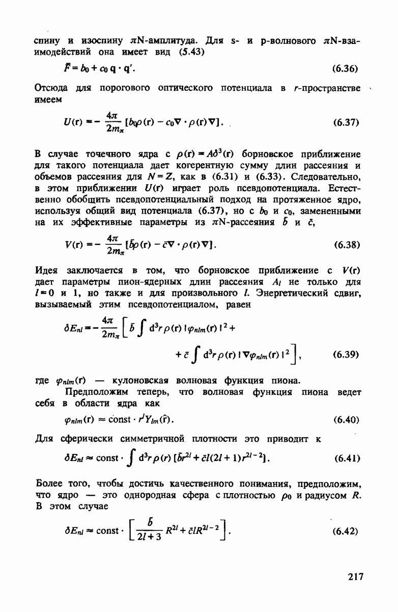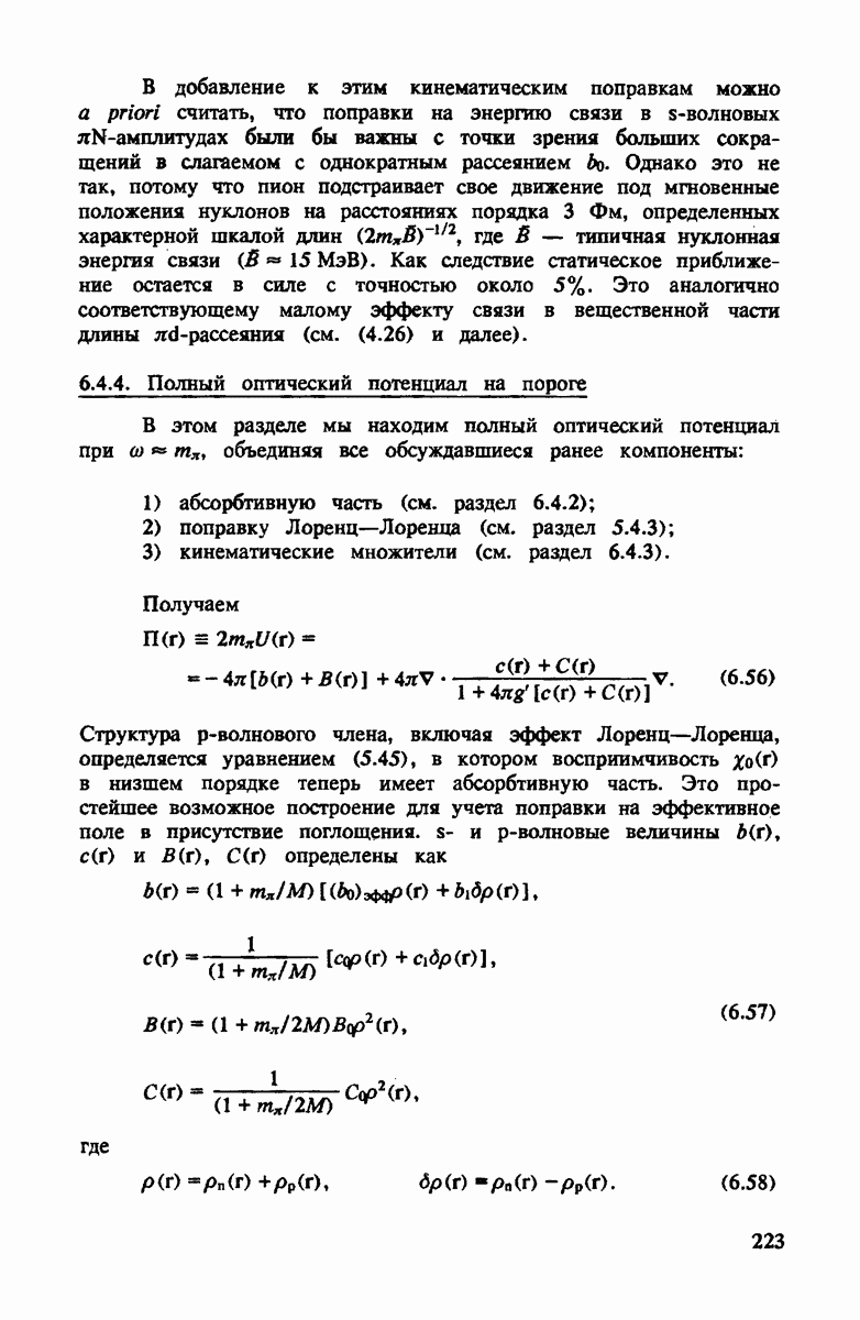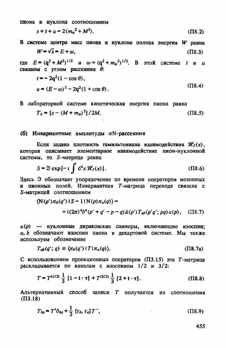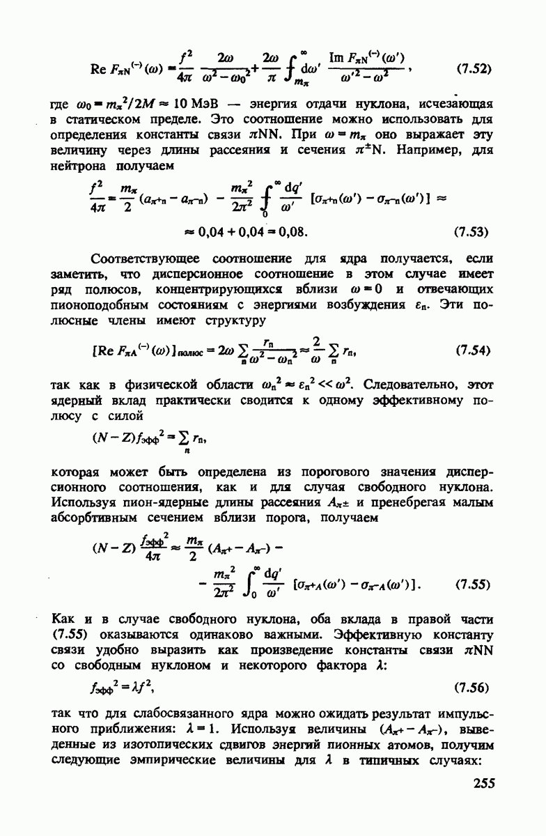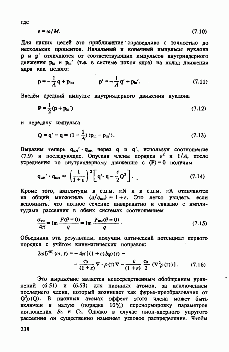 -амплитуды переписаны в системе покоя нуклона, основной эффект нуклонного движения сводится к сдвигу энергии пиона. Это можно понять, если заметить, что энергия а) пиона в системе покоя нуклона в первом порядке по скорости