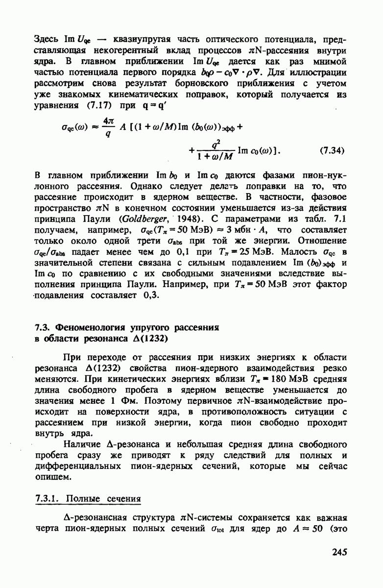Эта теневая поправка имеет правильные знак и величину, что позволяет объяснить наблюдаемое полное сечение, которое хорошо воспроизводится в более детальном вычислении (см. рис. 4.1).