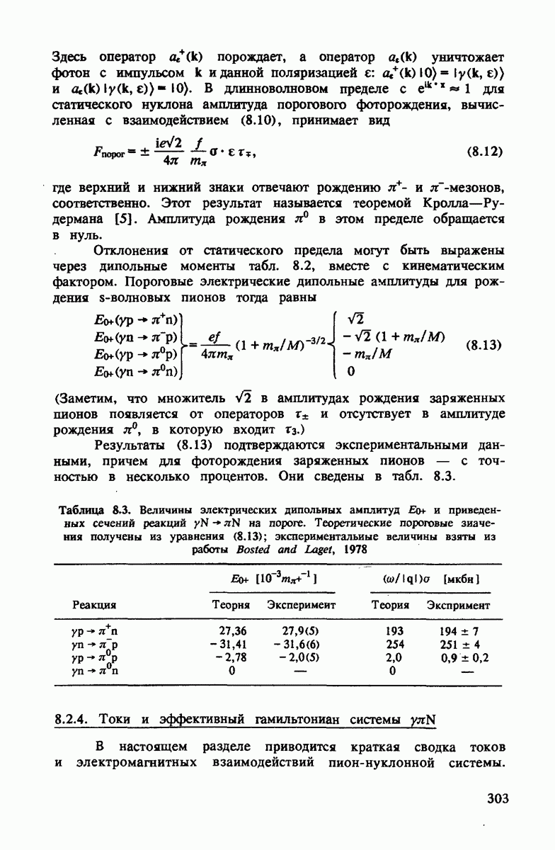 Вклады от нефизической области ниже порога очень малы. Они происходят, в основном, от одиночных нуклонных слагаемых, которые в импульсном приближении сводятся к сумме протонной и нейтронной борновских амплитуд, усредненных по спину. Так как дейтрон имеет изоспин нуль, эта сумма зануляется в статическом пределе, что можно легко видеть из (2.46). Главный нестатический вклад порядка