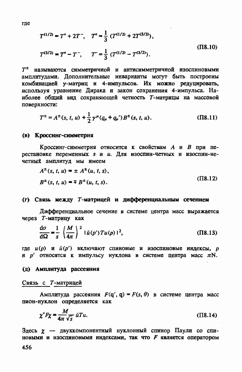 Для амплитуды, усредненной по спину, задача эффективно сводится к рассеянию пиона на бесспиновом дейтроне. Кроссинг-симметрия связывает амплитуду при отрицательных частотах с комплексно сопряженной амплитудой