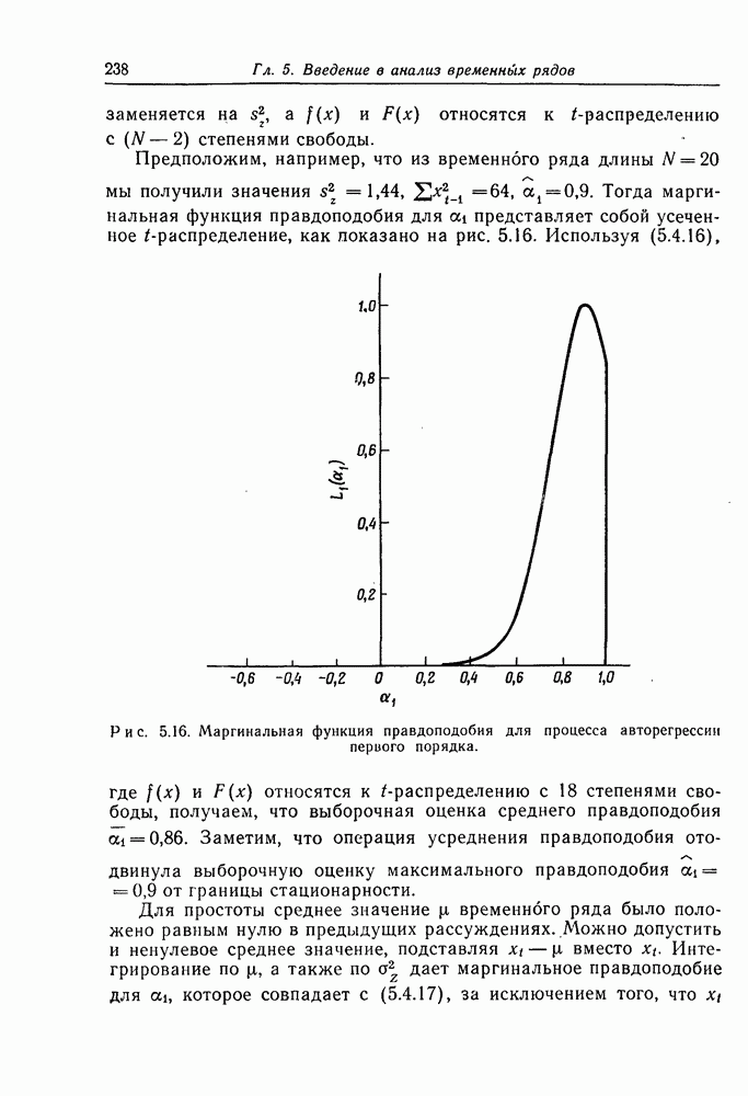 согласно (5.2.49), получается смешанный дискретный процесс авторегрессии — скользящего среднего, было бы естественно ожидать, что смешанные модели окажутся полезными при подгонке ко многим временным рядам. Для иллюстрации того, как при этом можно построить поверхность логарифмической функции правдоподобия, рассмотрим смешанный процесс