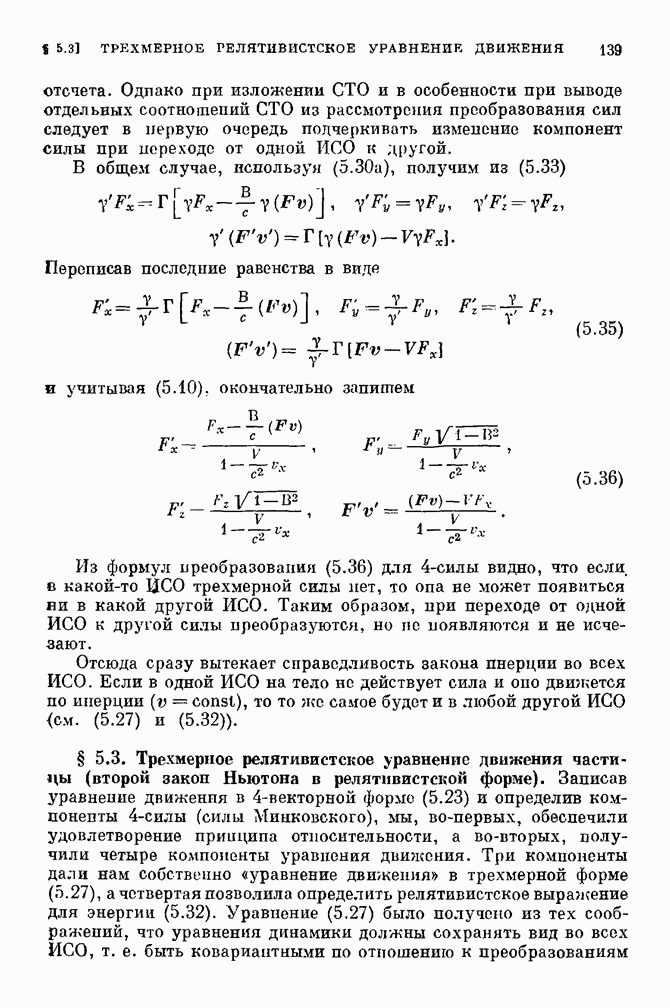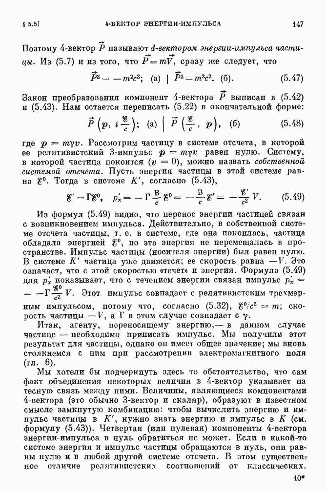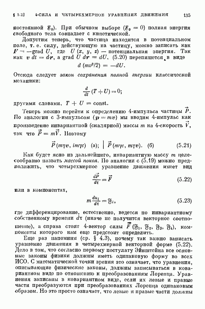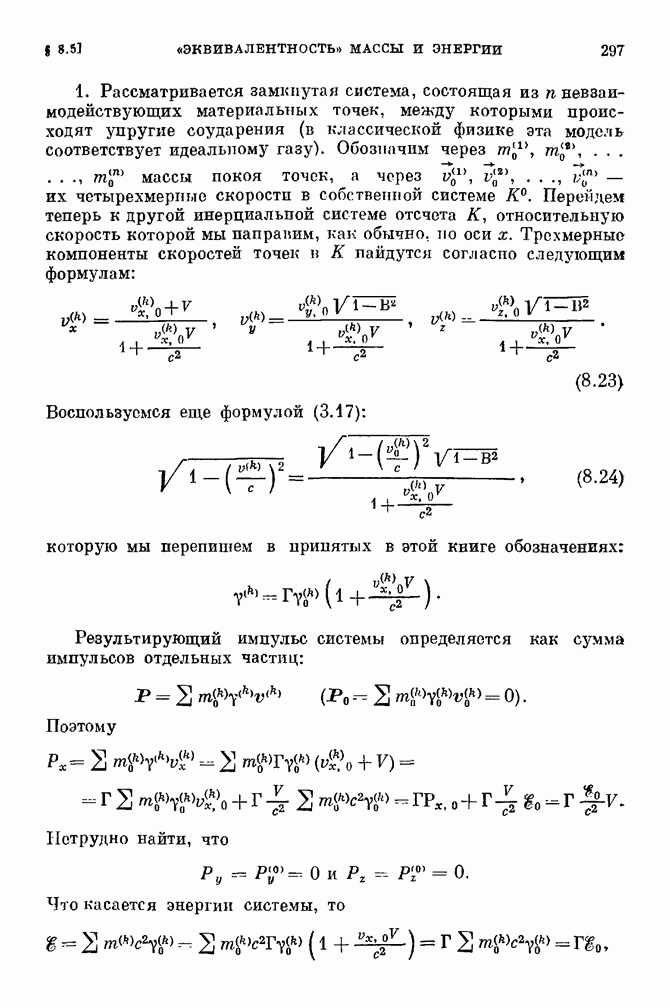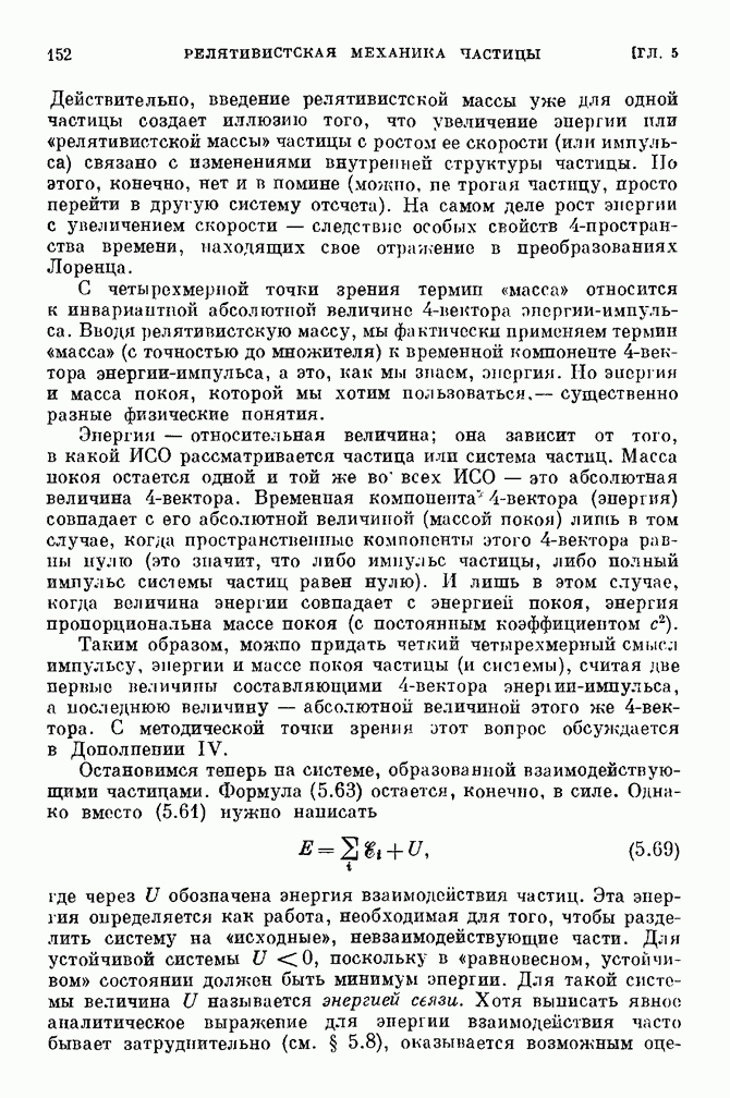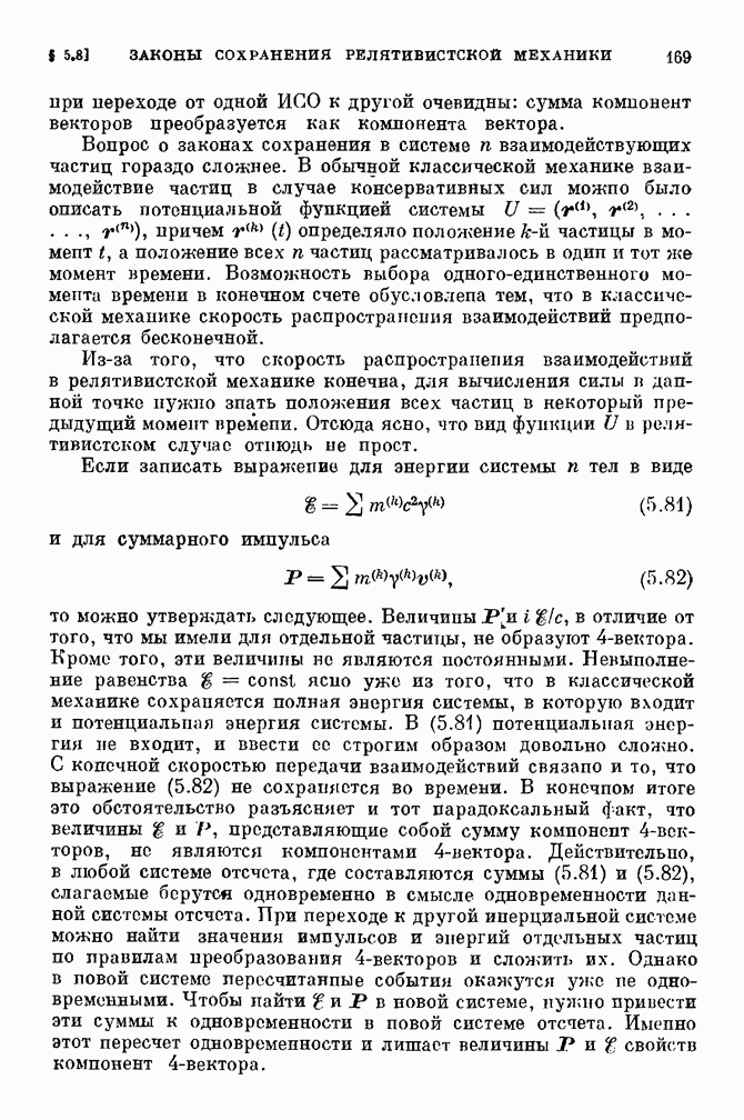 при переходе от одной ИСО к другой очевидны: сумма компонент векторов преобразуется как компонента вектора. Вопрос о законах сохранения в системе Из-за того, что скорость распространения взаимодействий в релятивистской механике конечна, для вычисления силы и данной точке нужно зпать положения всех частиц в некоторый предыдущий момент времепи. Отсюда ясно, что вид функции V в релятивистском случае отнюдь не прост. Если записать выражение для энергии системы