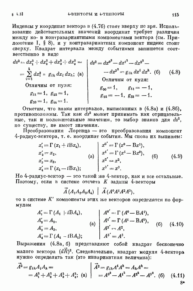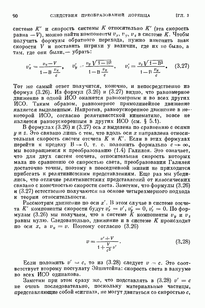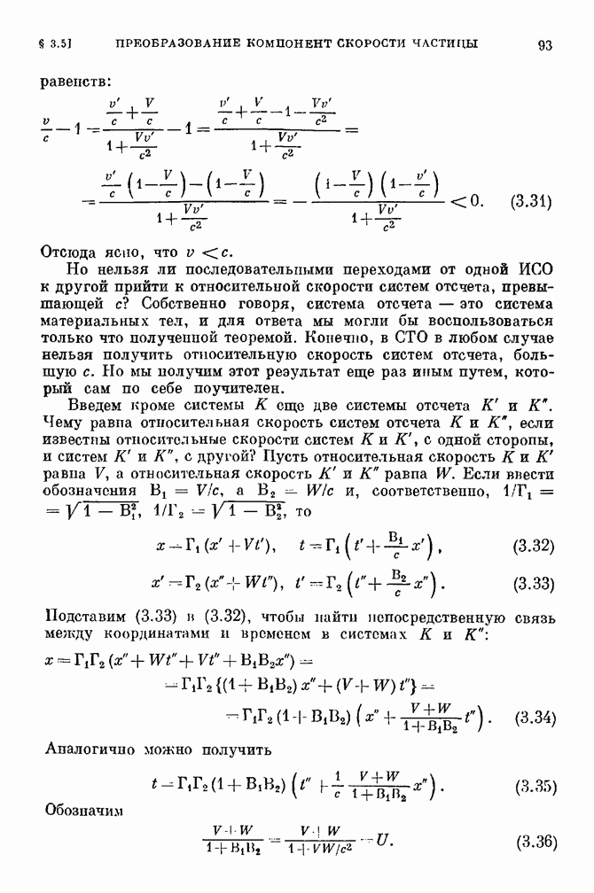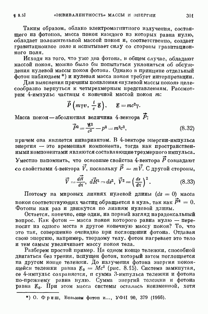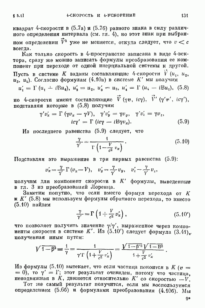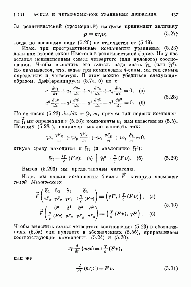 при переходе от одной ИСО к другой очевидны: сумма компонент векторов преобразуется как компонента вектора. Вопрос о законах сохранения в системе Из-за того, что скорость распространения взаимодействий в релятивистской механике конечна, для вычисления силы и данной точке нужно зпать положения всех частиц в некоторый предыдущий момент времепи. Отсюда ясно, что вид функции V в релятивистском случае отнюдь не прост. Если записать выражение для энергии системы