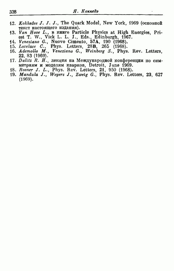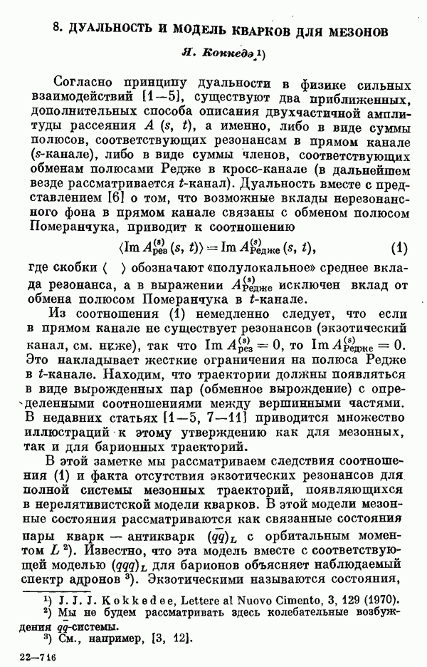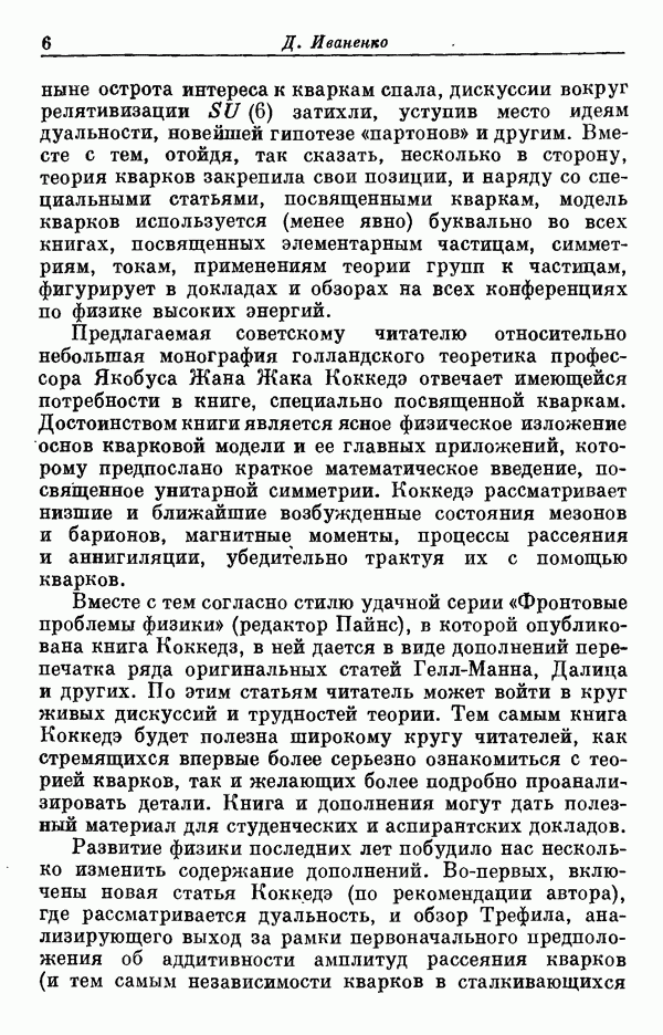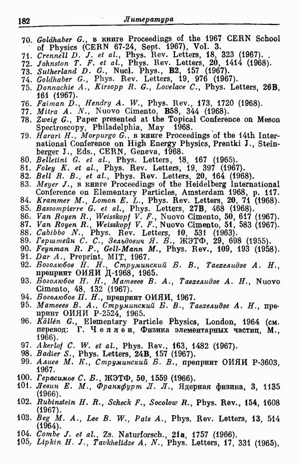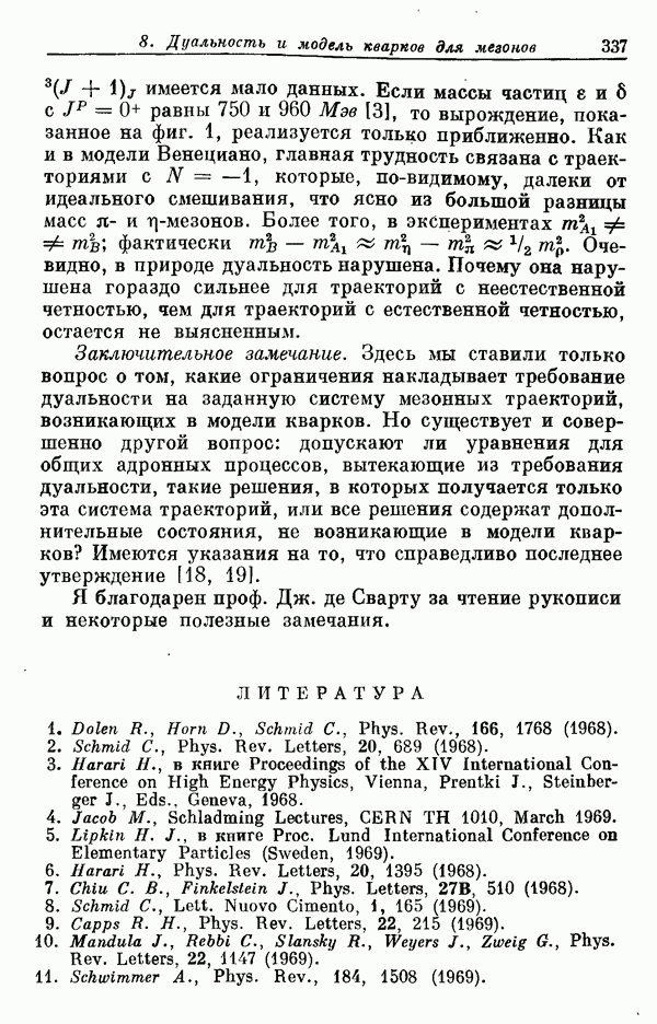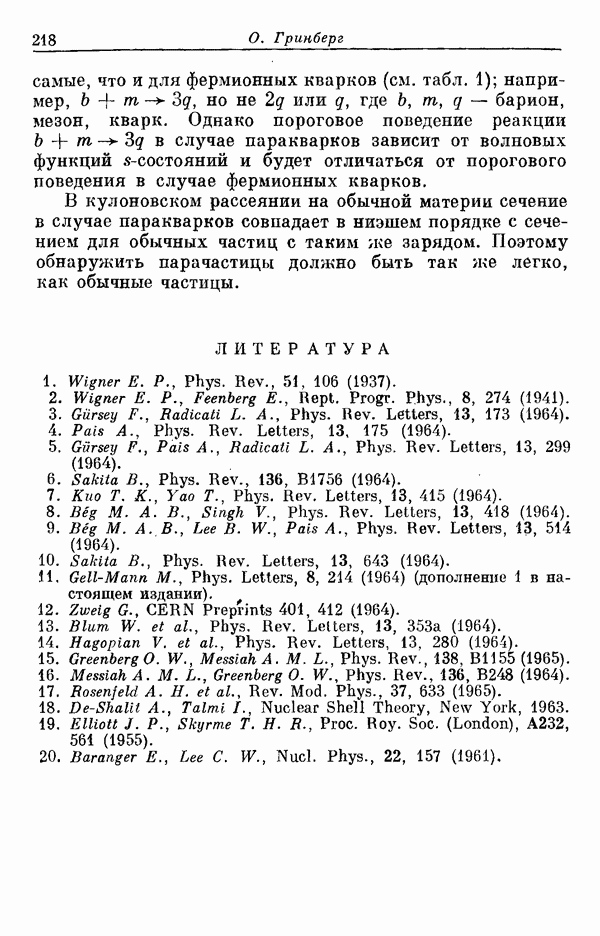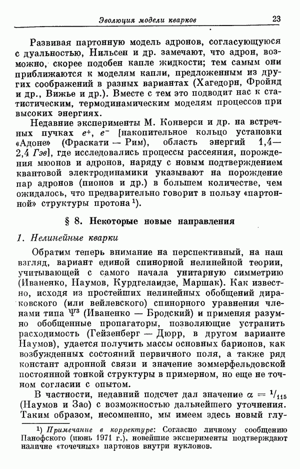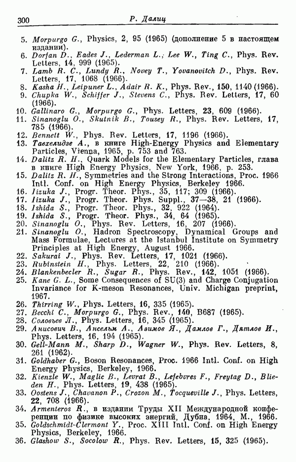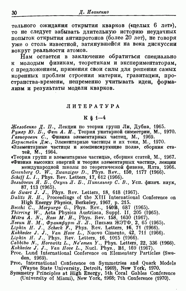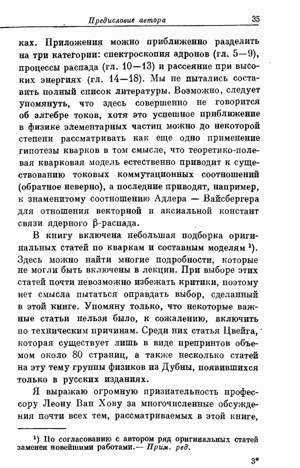 За последние несколько лет было установлено огромное многообразие резонансных состояний как в системе мезонов, так и в мезон-барионных системах. Мы теперь изучаем подробности спектроскопии адронных систем, т. е. состояний элементарных частиц, которые образуются в результате существования сильных взаимодействий, по меньшей мере столь же сильных, как взаимодействия в ядерной физике. В большинстве своем эти адронные состояния нестабильны относительно распада на более легкие ранее установленные адроны — полустабильные псевдоскалярные мезоны и барионы. Было открыто, что большая часть этого многообразия наблюдаемых адронных состояний обусловлена появлением этих состояний в виде унитарных мультиплетов, т. е. групп состояний с одним и тем же значением спина и четности, но с квантовыми числами изоспина I и гиперзаряда Y, определяемыми типичными унитарными схемами. Такой результат показывает, что хорошим первым приближением является приближение, в котором сильные взаимодействия, приводящие к указанному существованию адронных состояний, удовлетворяют -симметрии. Однако даже в этом случае еще существует большое многообразие унитарных мультиплетов, известных для адронных состояний; известны по крайней мере десять барионных мультиплетов и приблизительно столько же мезонных мультиплетов. По аналогии с имеющимся опытом спектроскопии в случаях атомов, молекул и ядер (каждый из которых изучался в свою эпоху развития науки о дискретных состояниях материи) не представляется неестественным предположение о существовании некоторой субструктуры, лежащей в основе наблюдавшихся мезонных и барионных состояний. Это является наиболее подходящим объяснением изучаемого сейчас огромного многообразия наблюдавшихся адронных состояний.