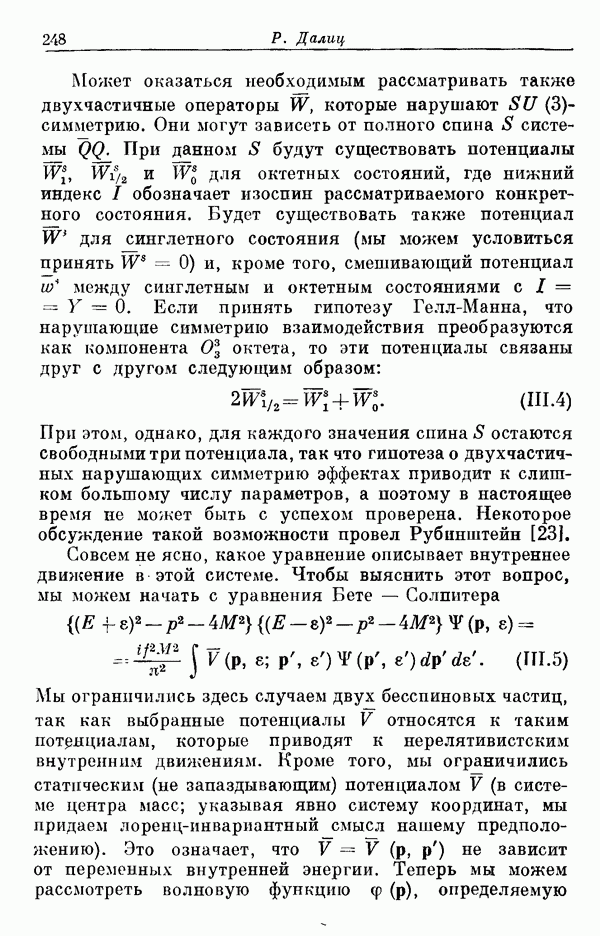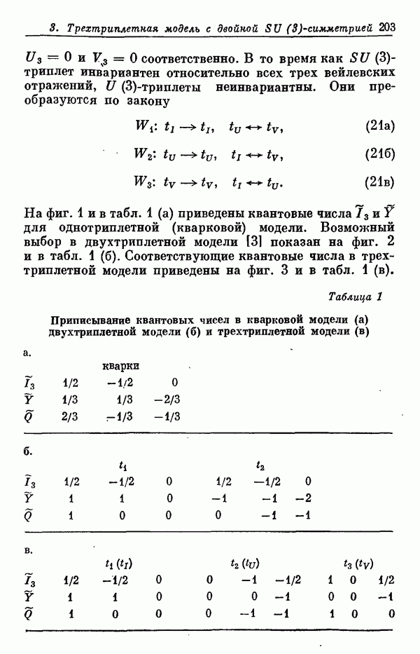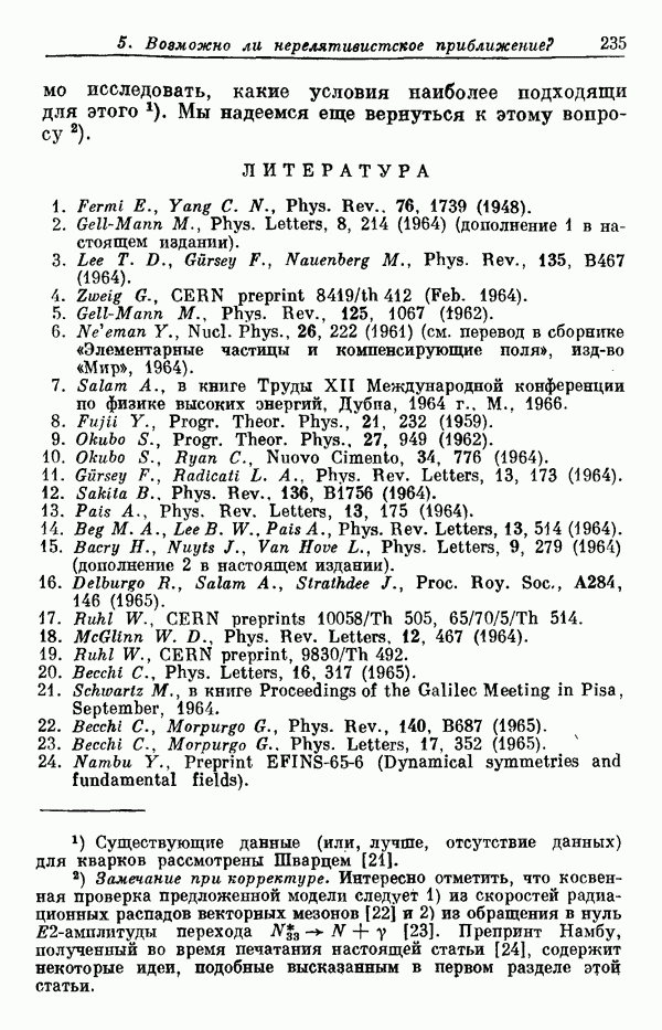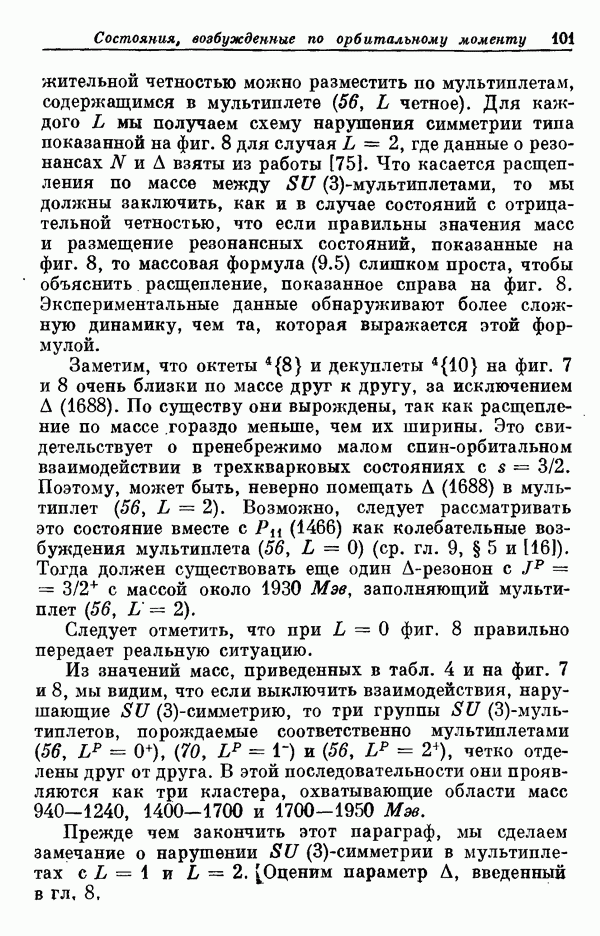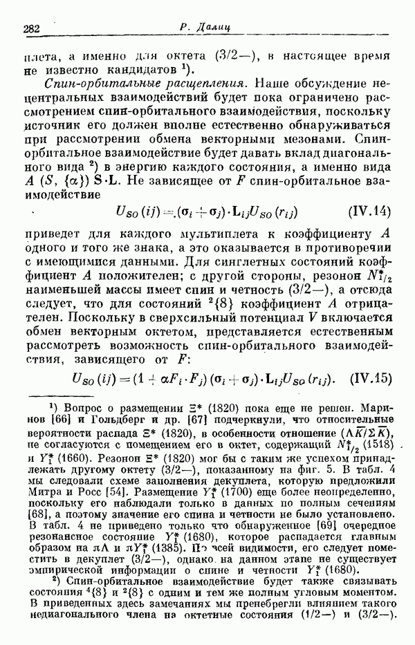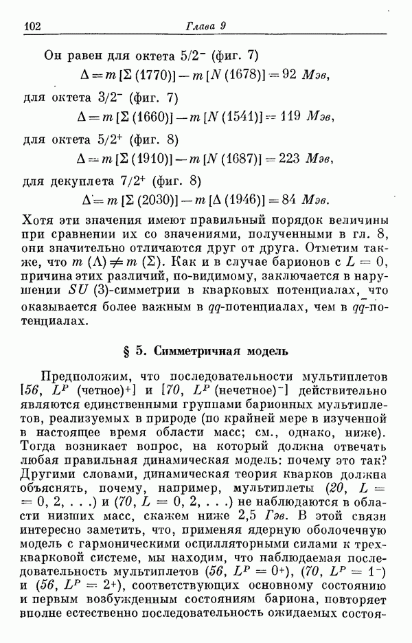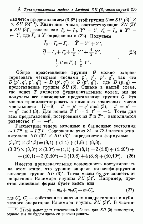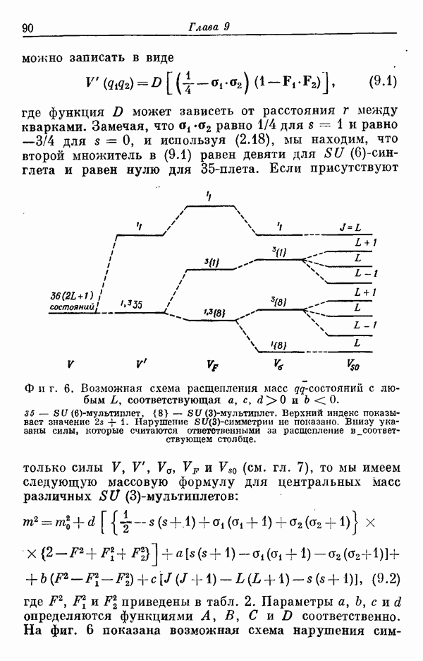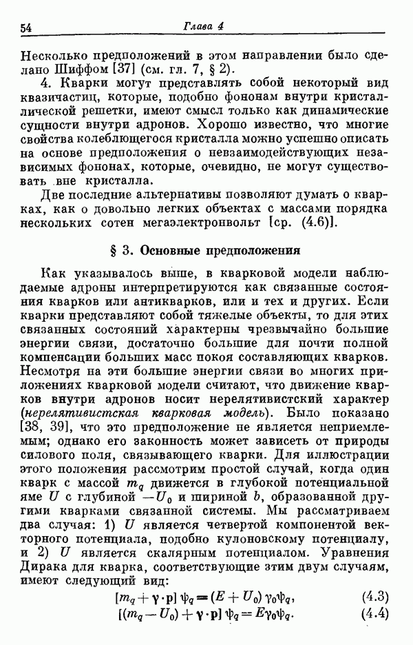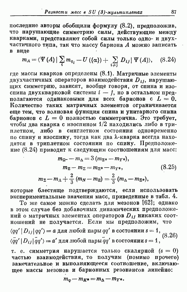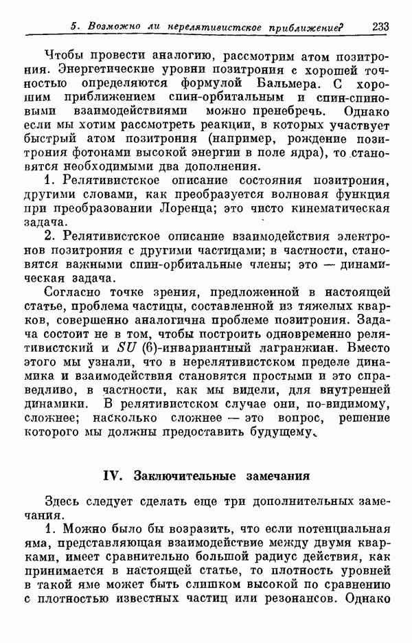 Мы должны сразу подчеркнуть, что эта гипотеза полностью согласуется с лоренц-инвариантностью, поскольку здесь речь идет только о физической ситуации, рассматриваемой в одной конкретной лоренцевской системе — в системе покоя связанного состояния. В этой ситуации низшие адронные состояния будут соответствовать определенным -супермультиплетам. Электромагнитные переходы между ними (и, возможно, даже переходы за счет сильного взаимодействия при подходящих условиях, раздел IV) будут соответствовать предсказаниям -симметрии. С другой стороны, при таком описании не требуется, чтобы эта явная -симметрия имела какой-либо общий характер; не требуется также и того, чтобы существовало какое-либо релятивистское описание,