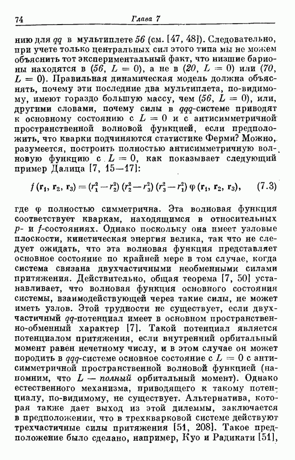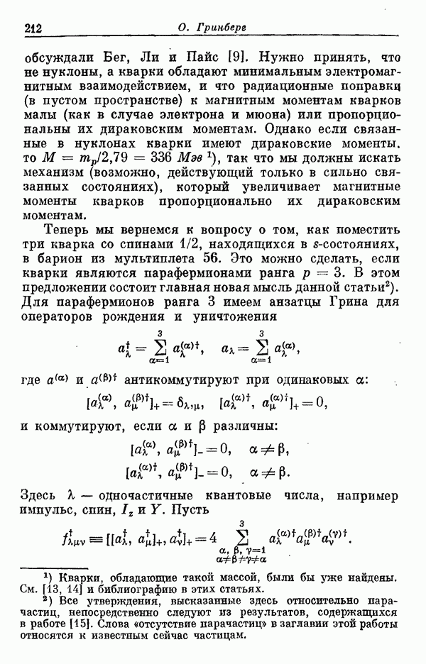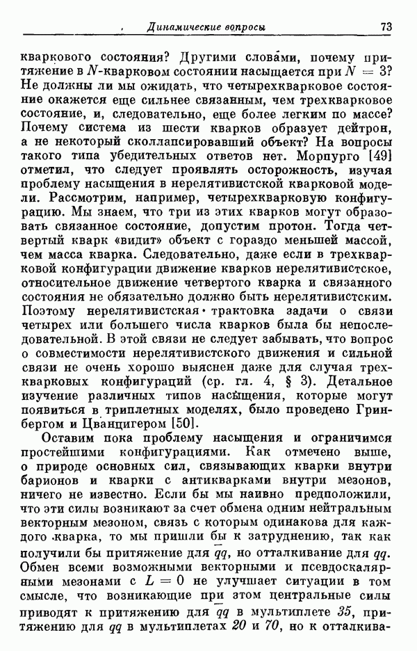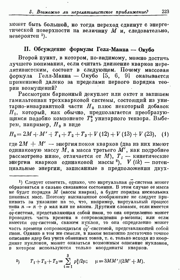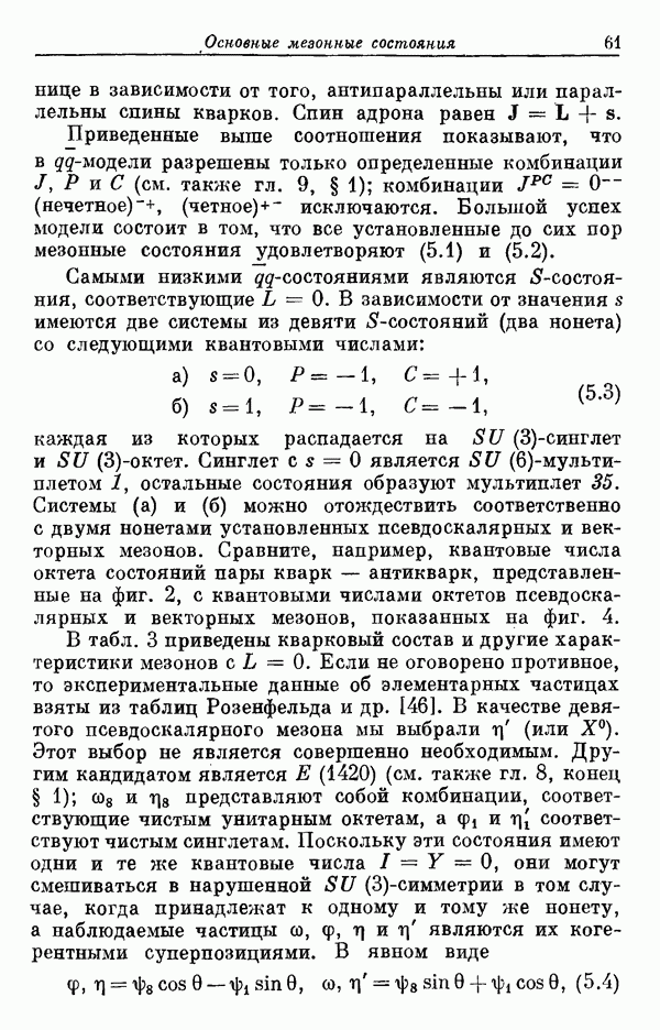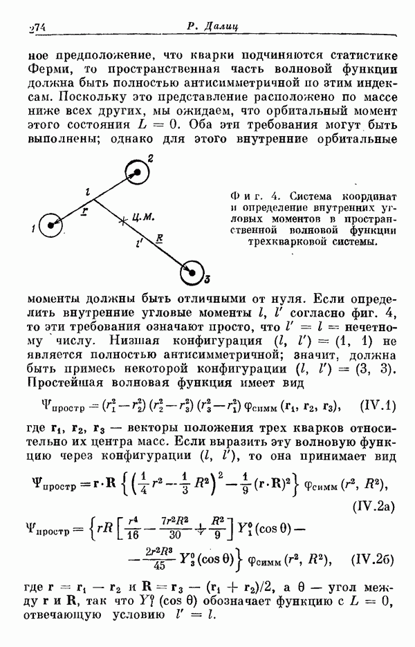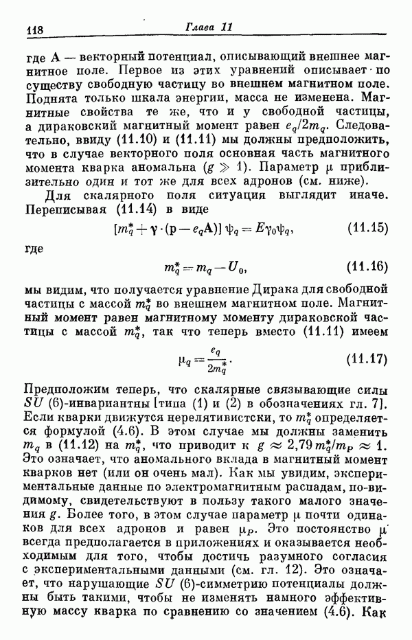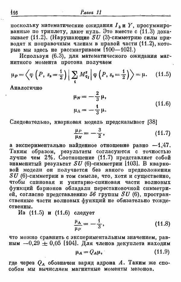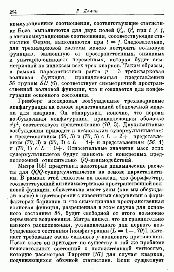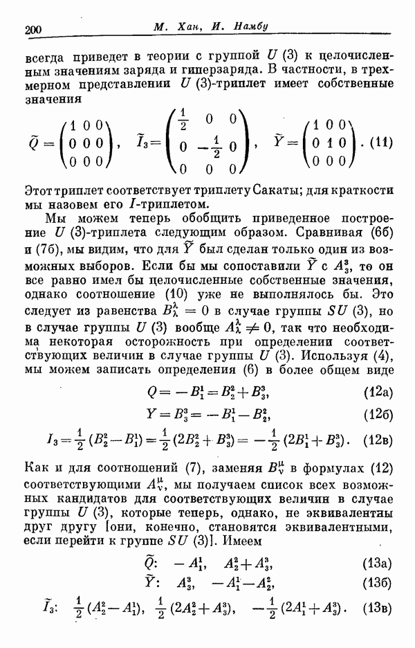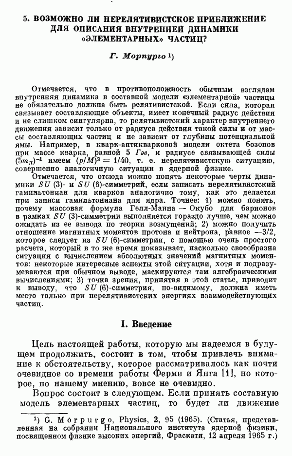 Мы должны сразу подчеркнуть, что эта гипотеза полностью согласуется с лоренц-инвариантностью, поскольку здесь речь идет только о физической ситуации, рассматриваемой в одной конкретной лоренцевской системе — в системе покоя связанного состояния. В этой ситуации низшие адронные состояния будут соответствовать определенным -супермультиплетам. Электромагнитные переходы между ними (и, возможно, даже переходы за счет сильного взаимодействия при подходящих условиях, раздел IV) будут соответствовать предсказаниям -симметрии. С другой стороны, при таком описании не требуется, чтобы эта явная -симметрия имела какой-либо общий характер; не требуется также и того, чтобы существовало какое-либо релятивистское описание,