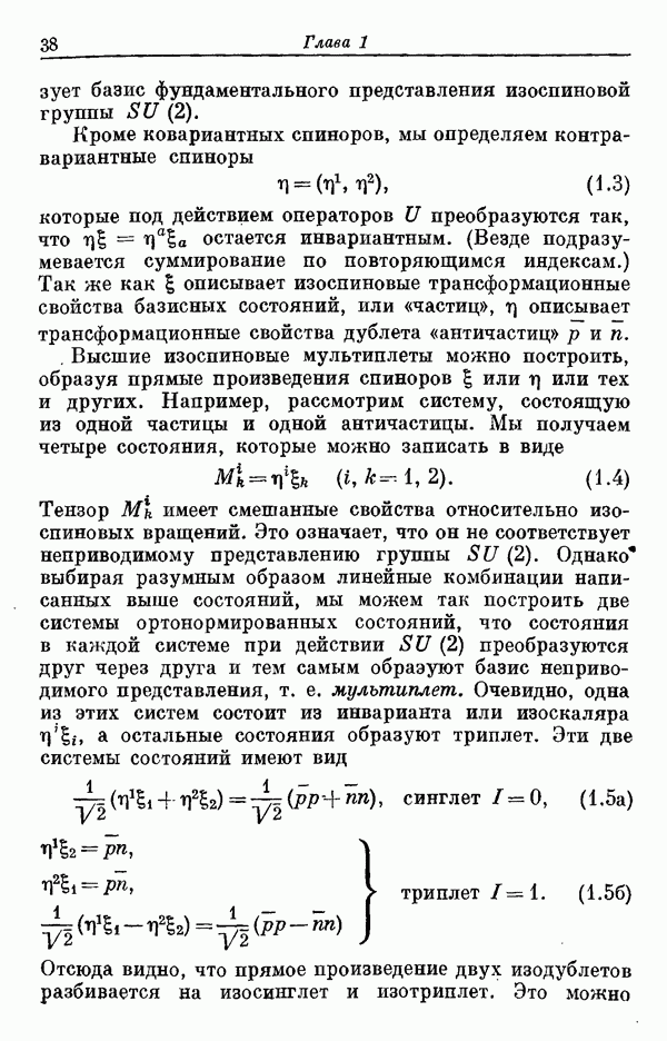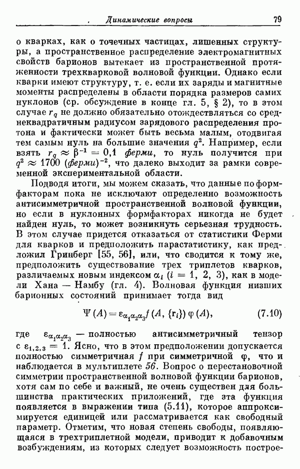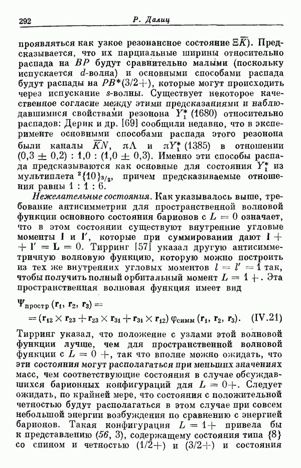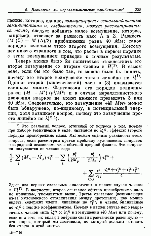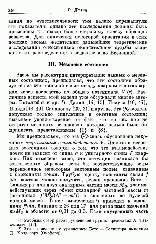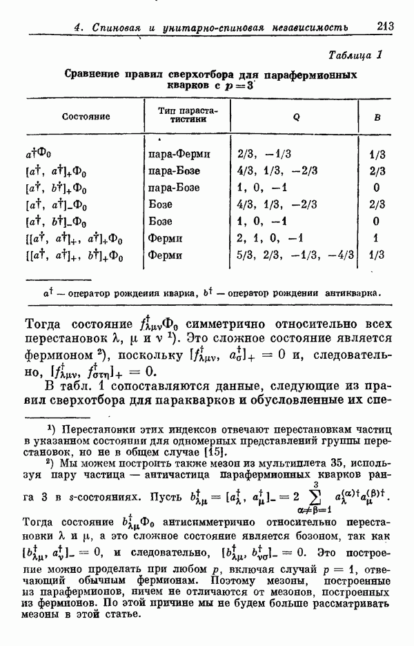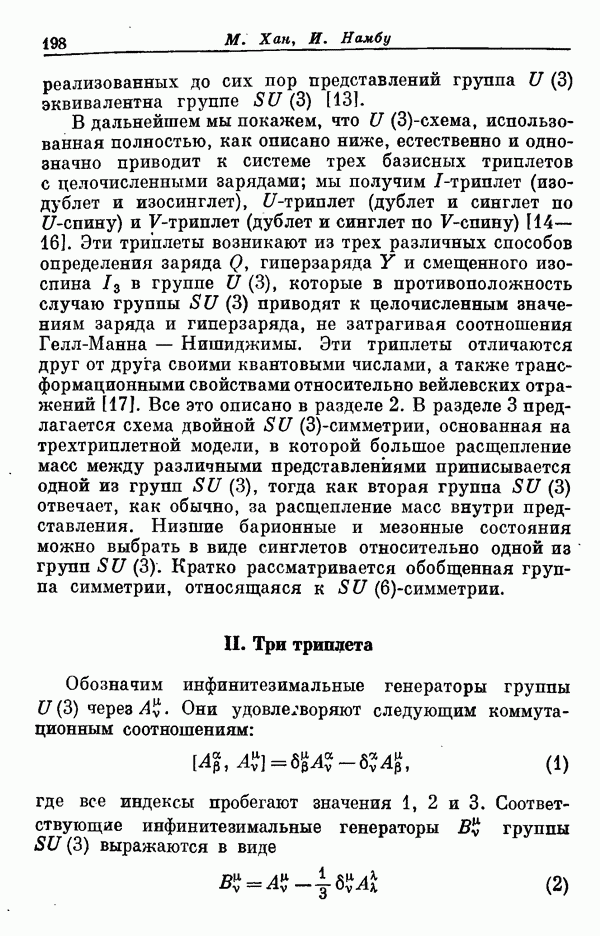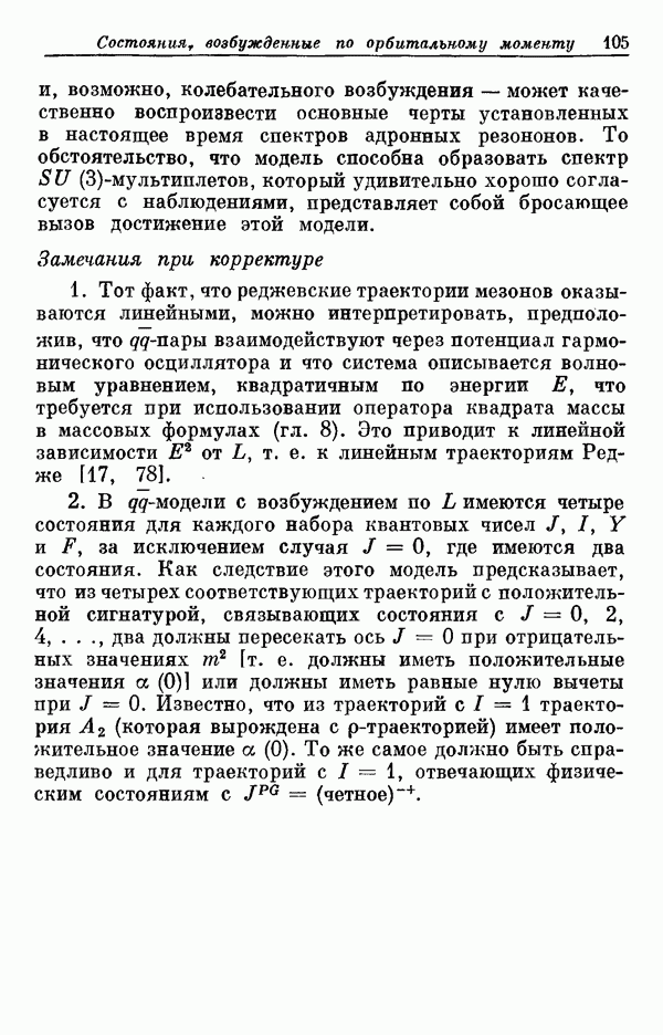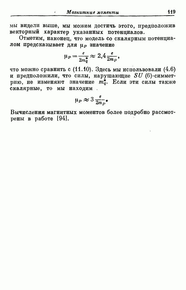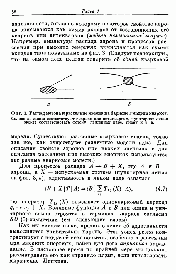 Мы должны сразу подчеркнуть, что эта гипотеза полностью согласуется с лоренц-инвариантностью, поскольку здесь речь идет только о физической ситуации, рассматриваемой в одной конкретной лоренцевской системе — в системе покоя связанного состояния. В этой ситуации низшие адронные состояния будут соответствовать определенным -супермультиплетам. Электромагнитные переходы между ними (и, возможно, даже переходы за счет сильного взаимодействия при подходящих условиях, раздел IV) будут соответствовать предсказаниям -симметрии. С другой стороны, при таком описании не требуется, чтобы эта явная -симметрия имела какой-либо общий характер; не требуется также и того, чтобы существовало какое-либо релятивистское описание,