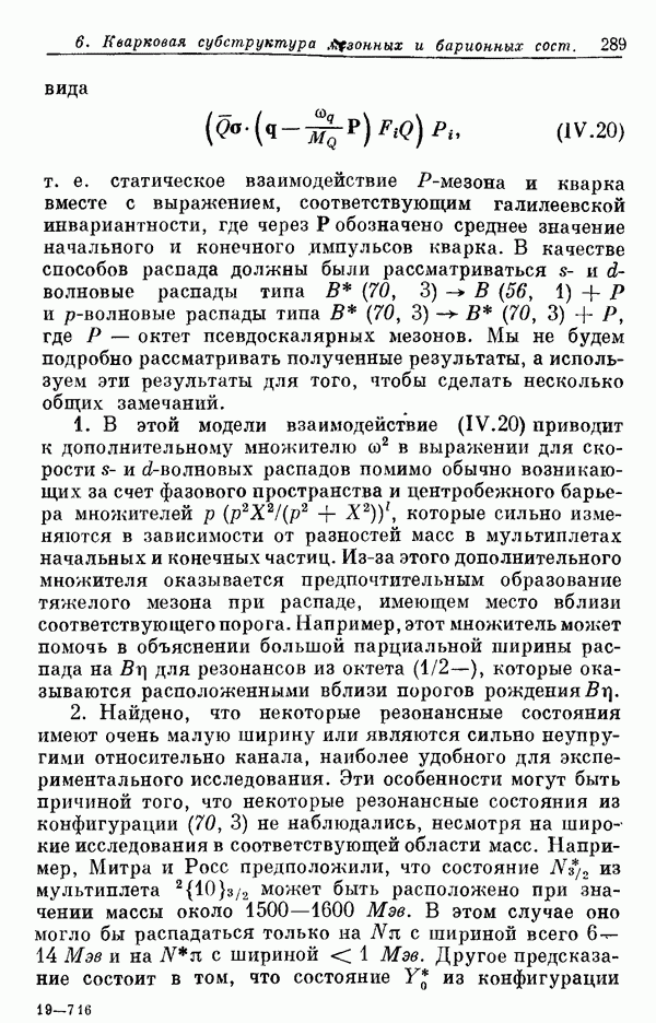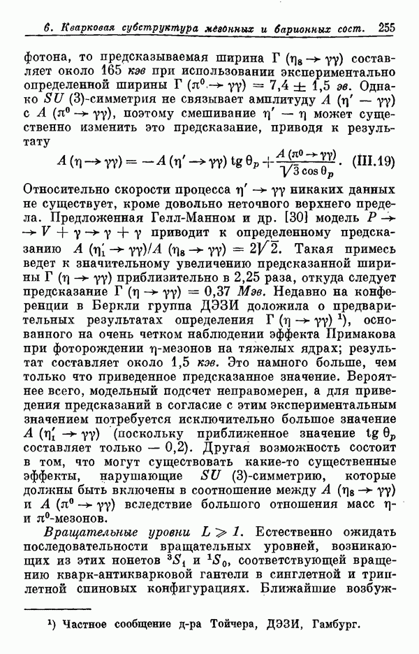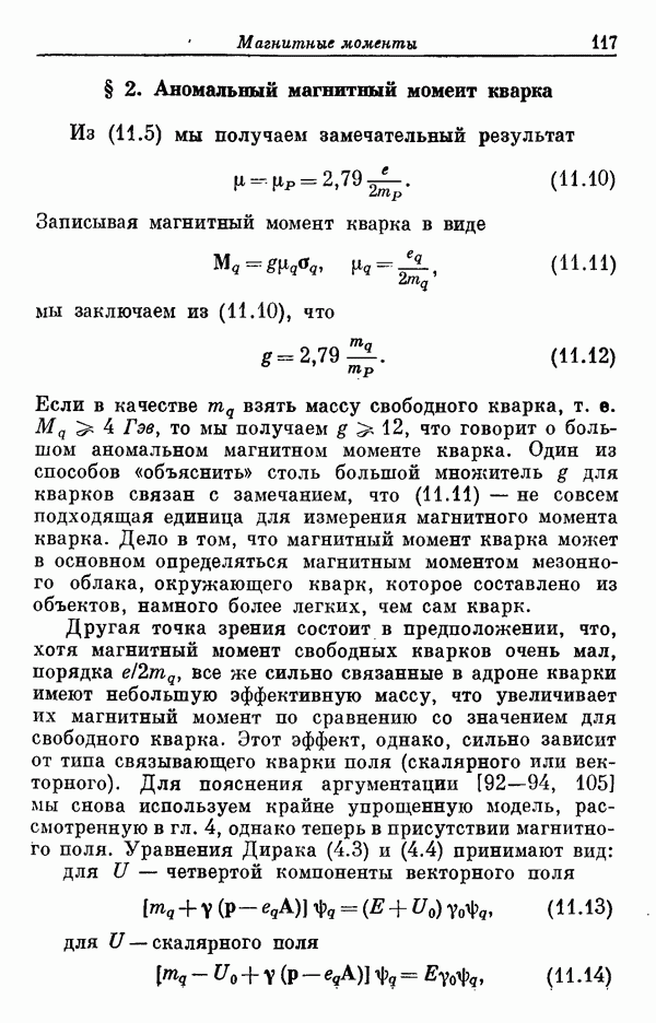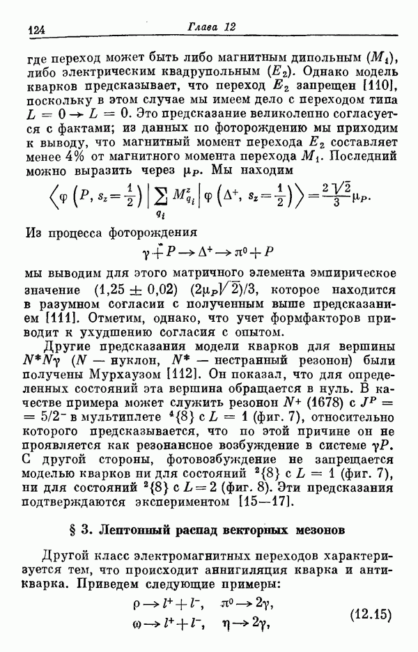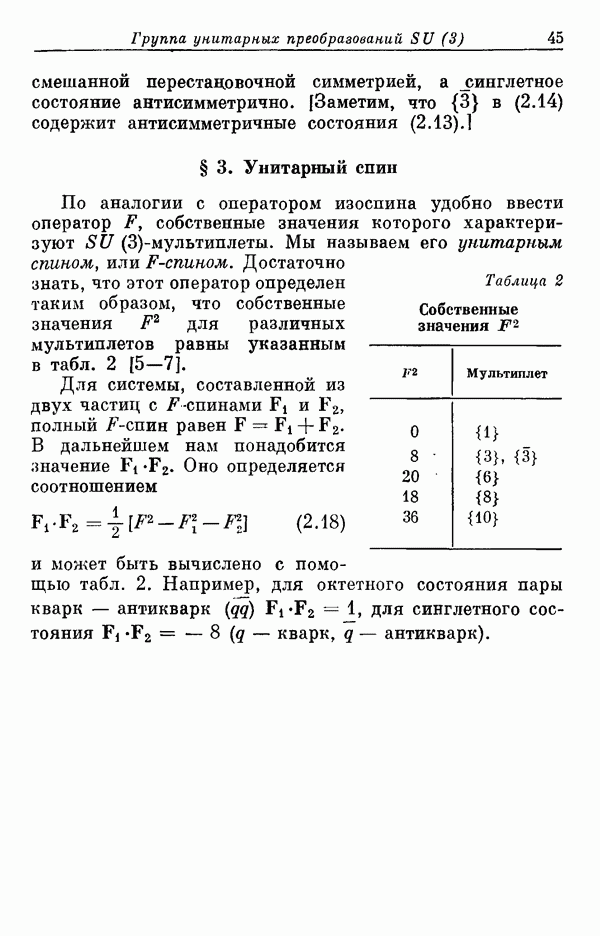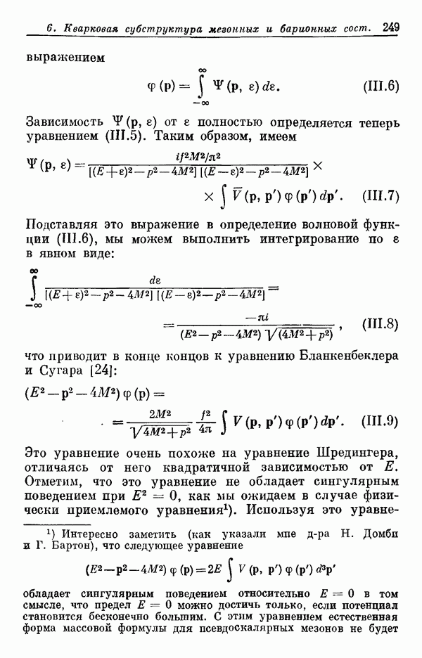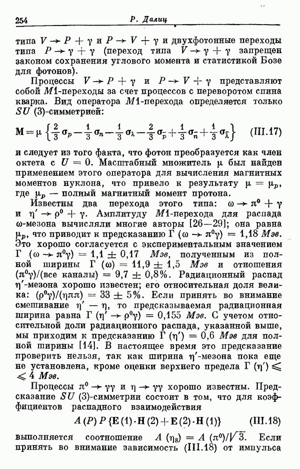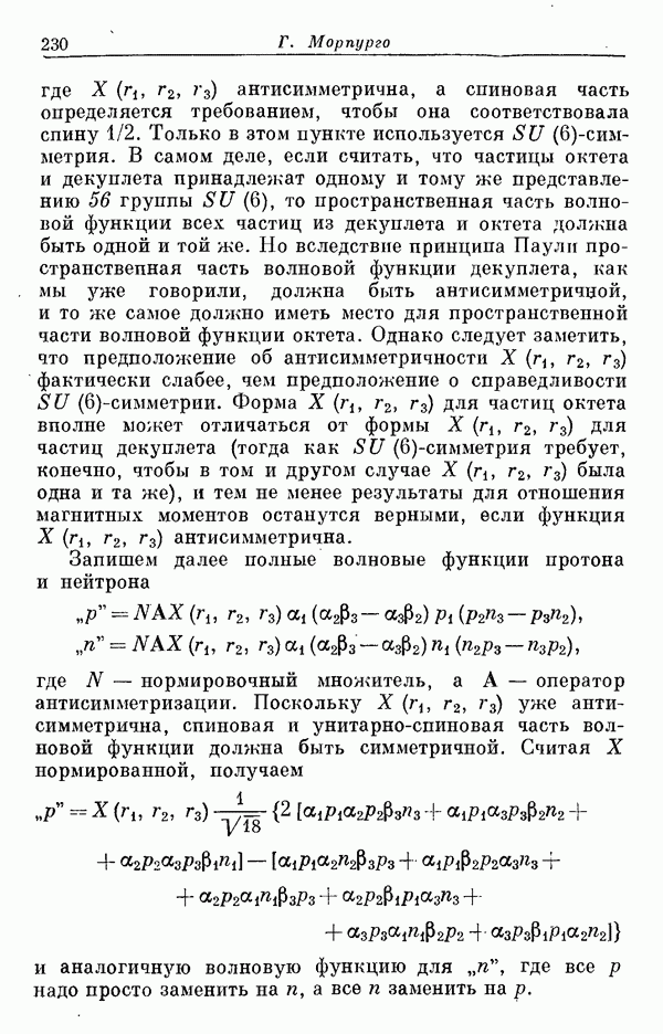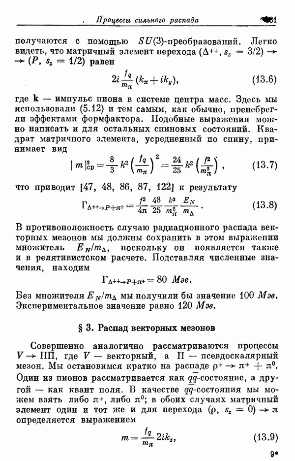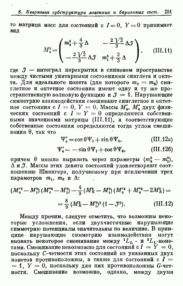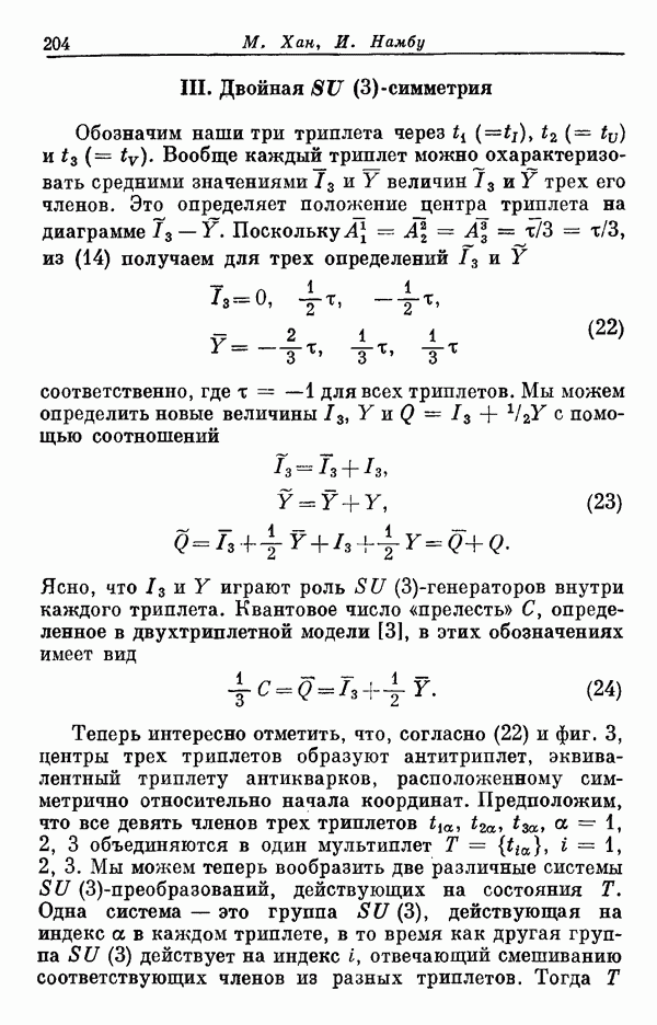 Мы должны сразу подчеркнуть, что эта гипотеза полностью согласуется с лоренц-инвариантностью, поскольку здесь речь идет только о физической ситуации, рассматриваемой в одной конкретной лоренцевской системе — в системе покоя связанного состояния. В этой ситуации низшие адронные состояния будут соответствовать определенным -супермультиплетам. Электромагнитные переходы между ними (и, возможно, даже переходы за счет сильного взаимодействия при подходящих условиях, раздел IV) будут соответствовать предсказаниям -симметрии. С другой стороны, при таком описании не требуется, чтобы эта явная -симметрия имела какой-либо общий характер; не требуется также и того, чтобы существовало какое-либо релятивистское описание,
