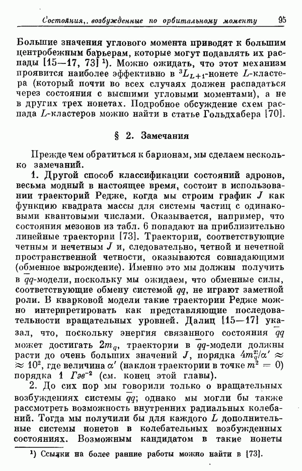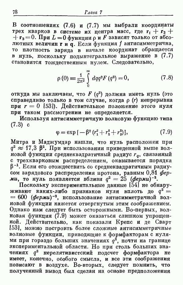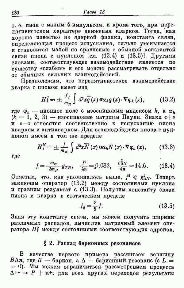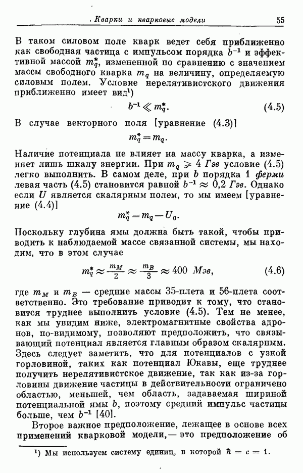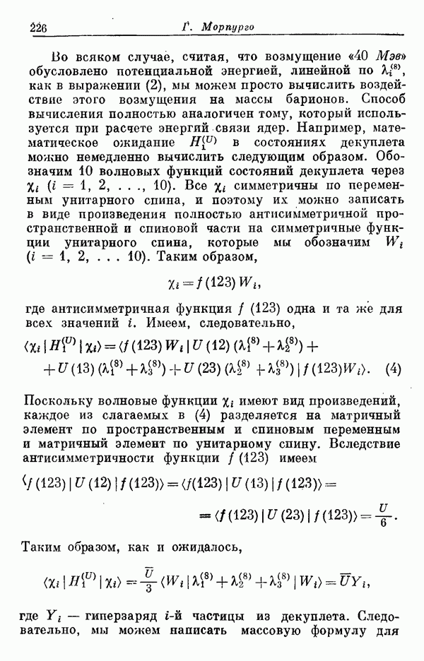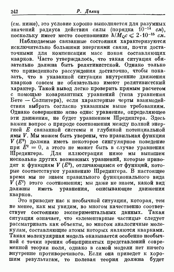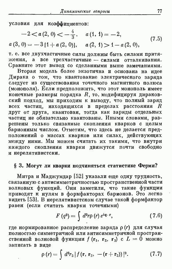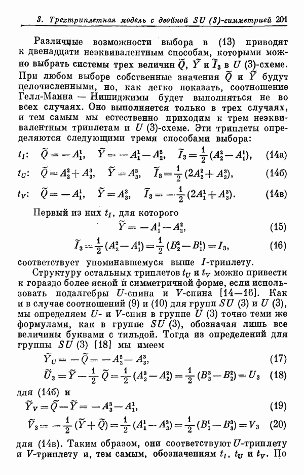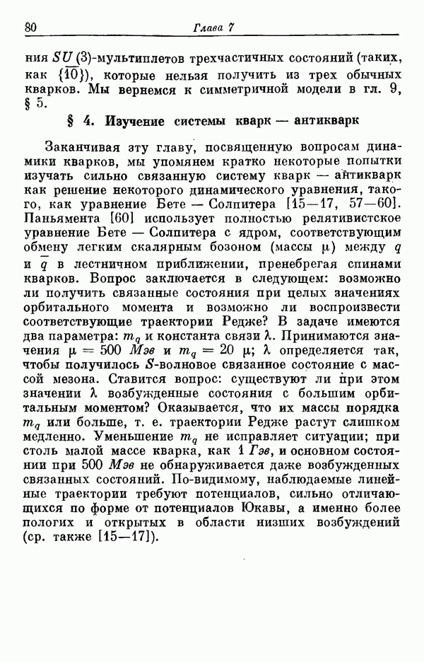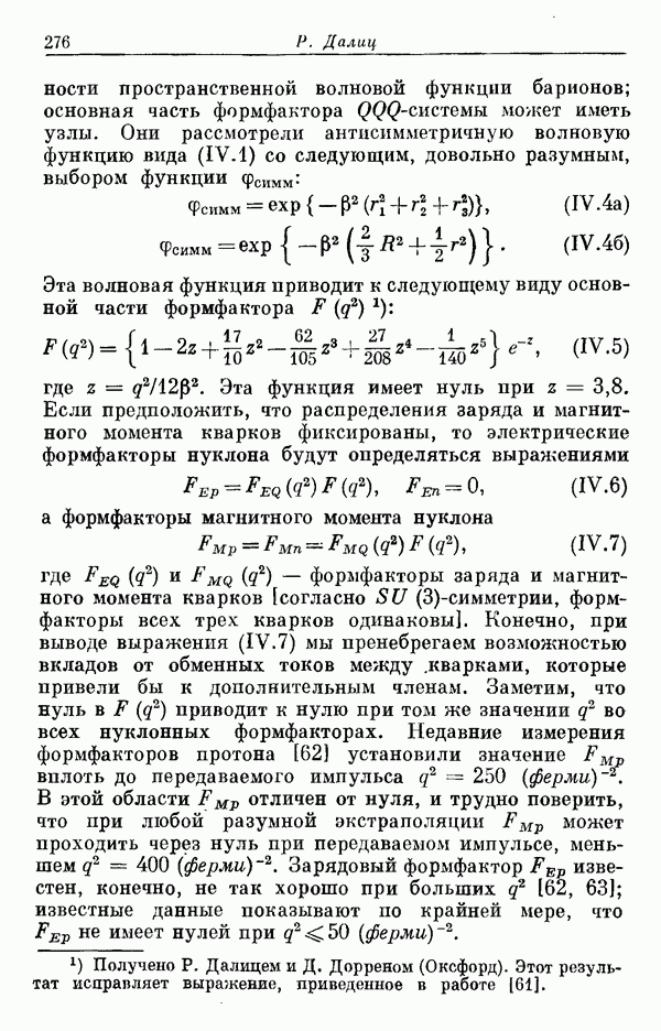 Мы должны сразу подчеркнуть, что эта гипотеза полностью согласуется с лоренц-инвариантностью, поскольку здесь речь идет только о физической ситуации, рассматриваемой в одной конкретной лоренцевской системе — в системе покоя связанного состояния. В этой ситуации низшие адронные состояния будут соответствовать определенным -супермультиплетам. Электромагнитные переходы между ними (и, возможно, даже переходы за счет сильного взаимодействия при подходящих условиях, раздел IV) будут соответствовать предсказаниям -симметрии. С другой стороны, при таком описании не требуется, чтобы эта явная -симметрия имела какой-либо общий характер; не требуется также и того, чтобы существовало какое-либо релятивистское описание,