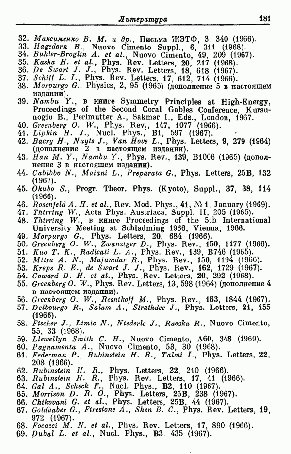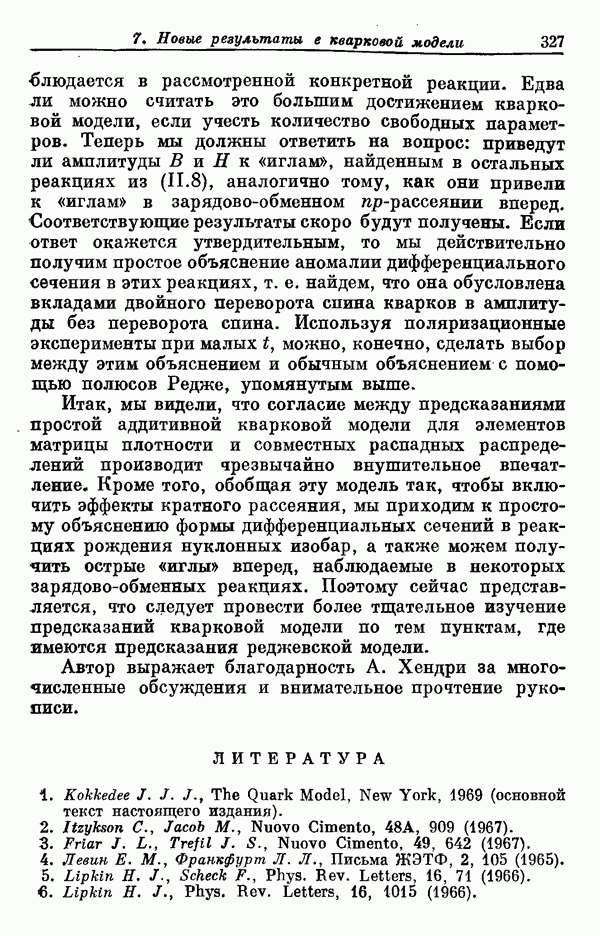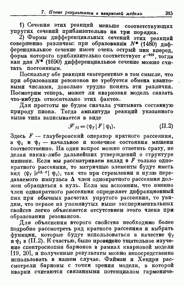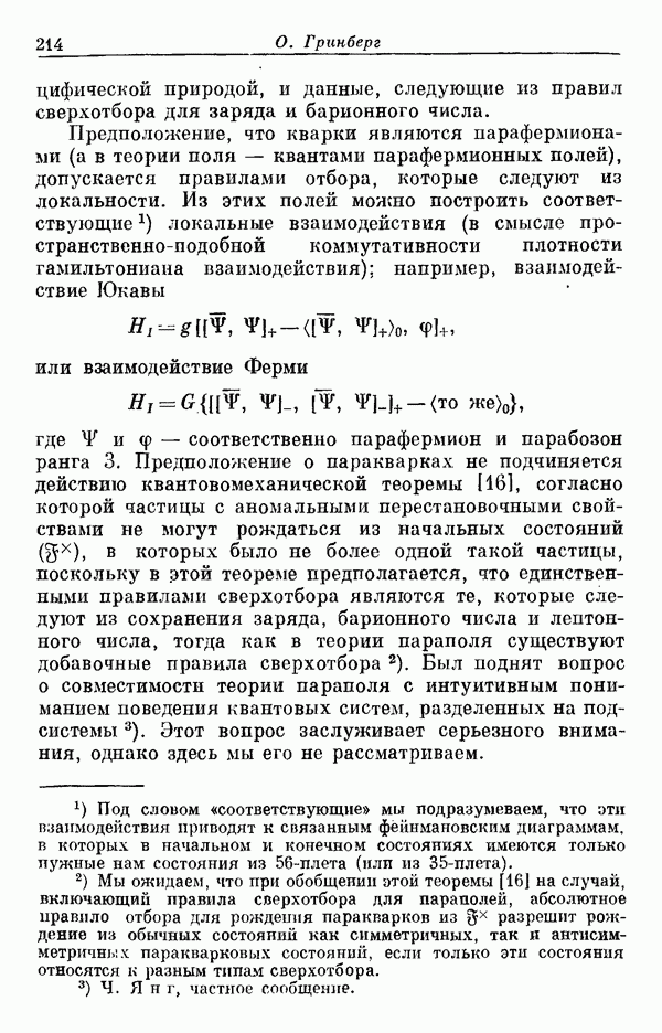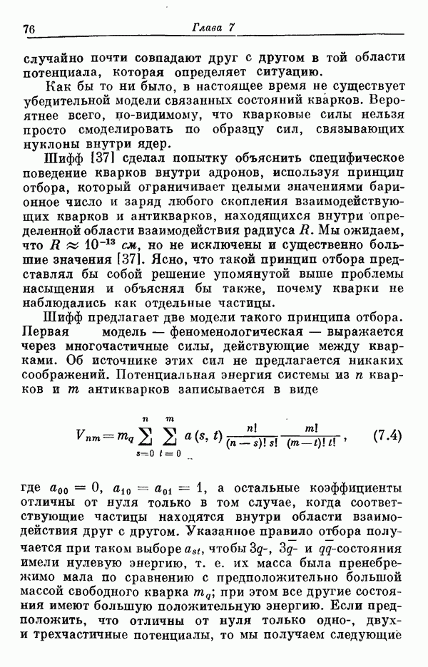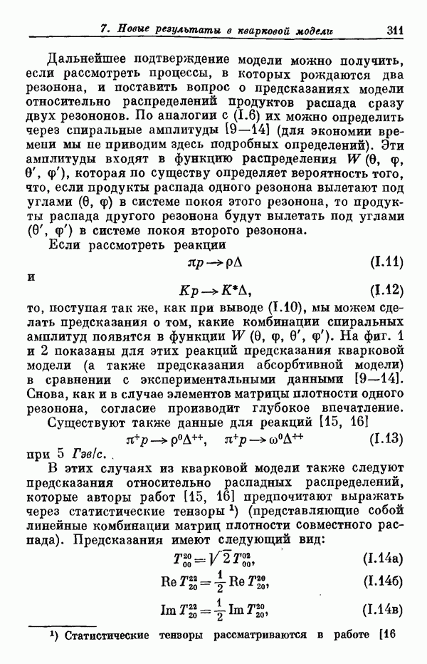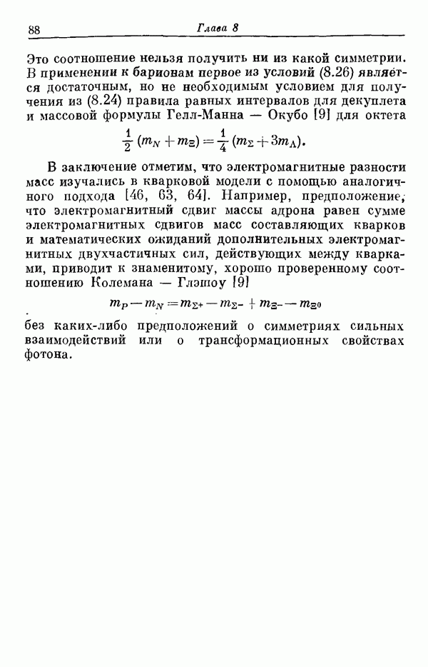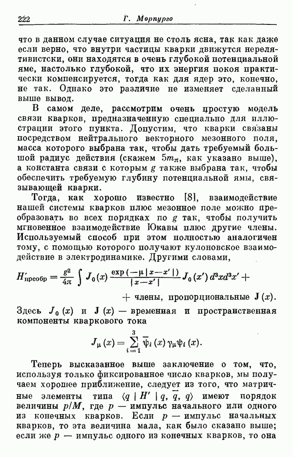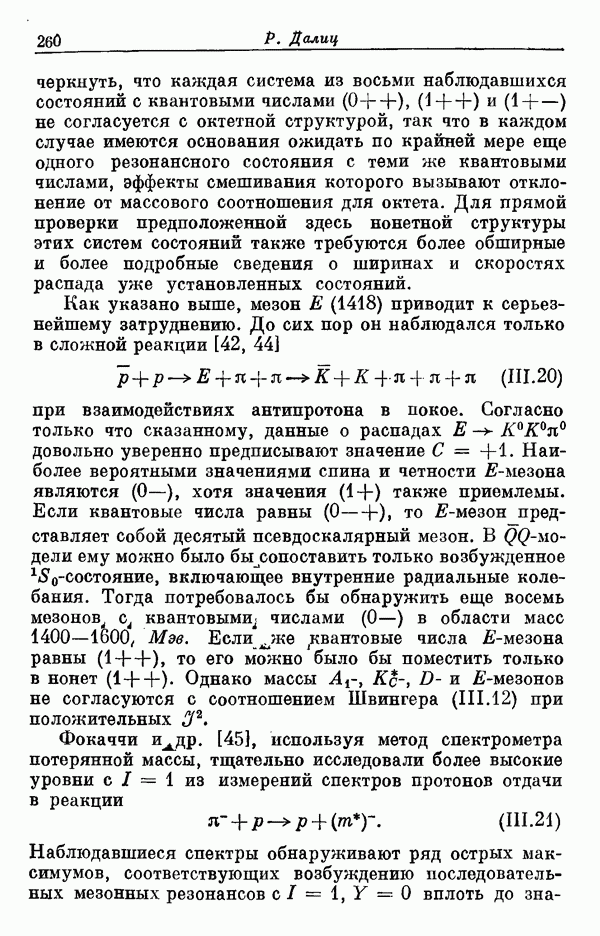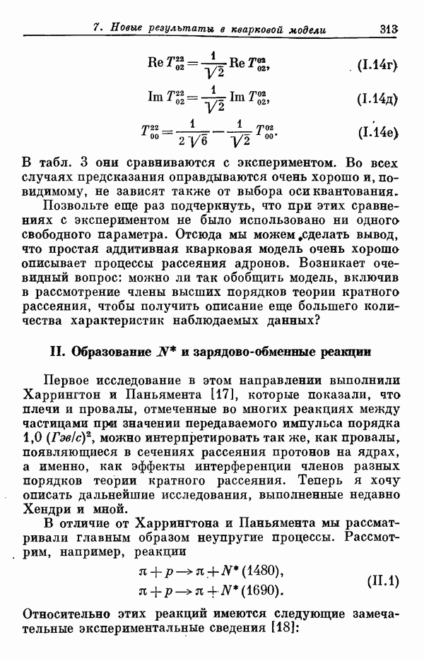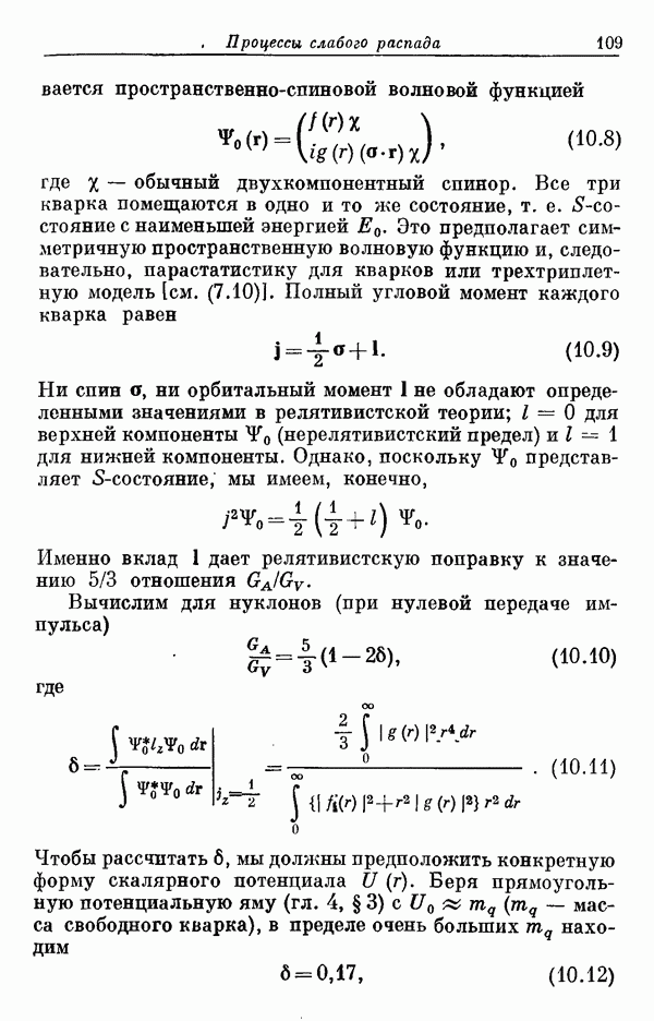 Мы должны сразу подчеркнуть, что эта гипотеза полностью согласуется с лоренц-инвариантностью, поскольку здесь речь идет только о физической ситуации, рассматриваемой в одной конкретной лоренцевской системе — в системе покоя связанного состояния. В этой ситуации низшие адронные состояния будут соответствовать определенным -супермультиплетам. Электромагнитные переходы между ними (и, возможно, даже переходы за счет сильного взаимодействия при подходящих условиях, раздел IV) будут соответствовать предсказаниям -симметрии. С другой стороны, при таком описании не требуется, чтобы эта явная -симметрия имела какой-либо общий характер; не требуется также и того, чтобы существовало какое-либо релятивистское описание,