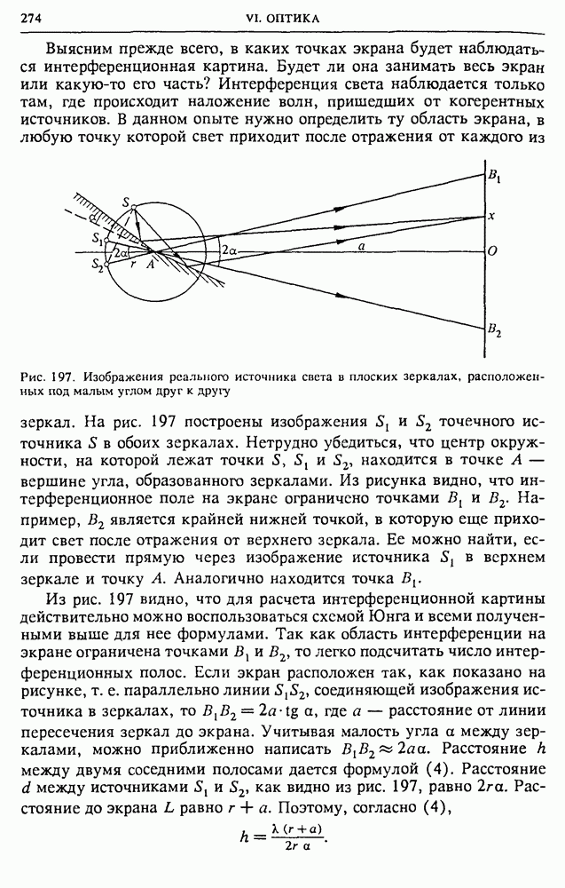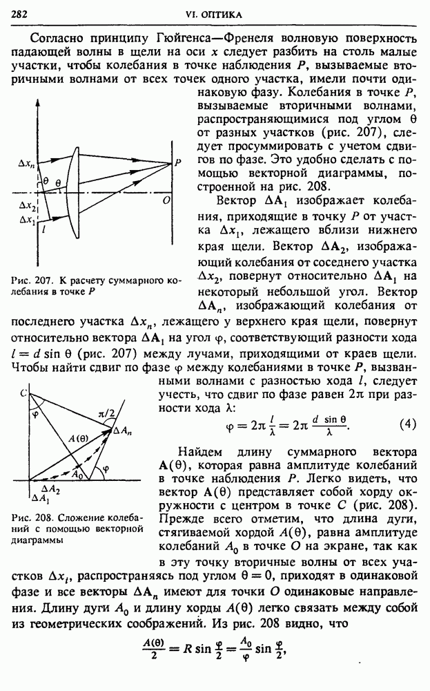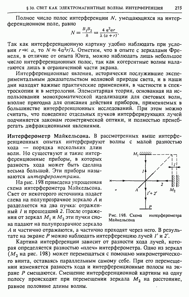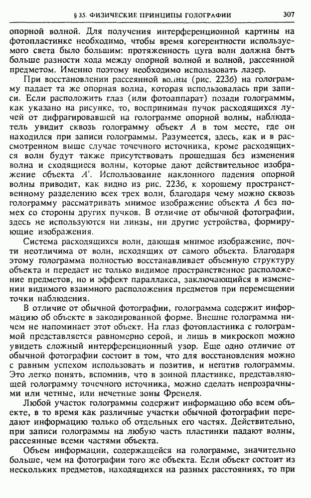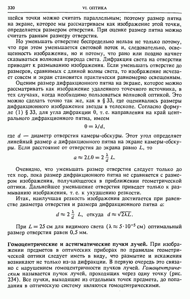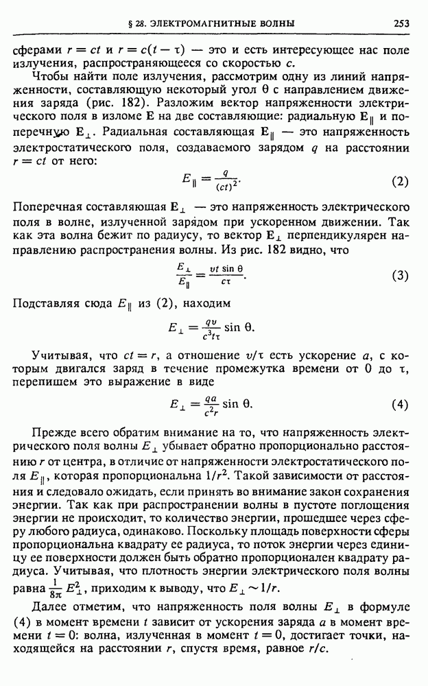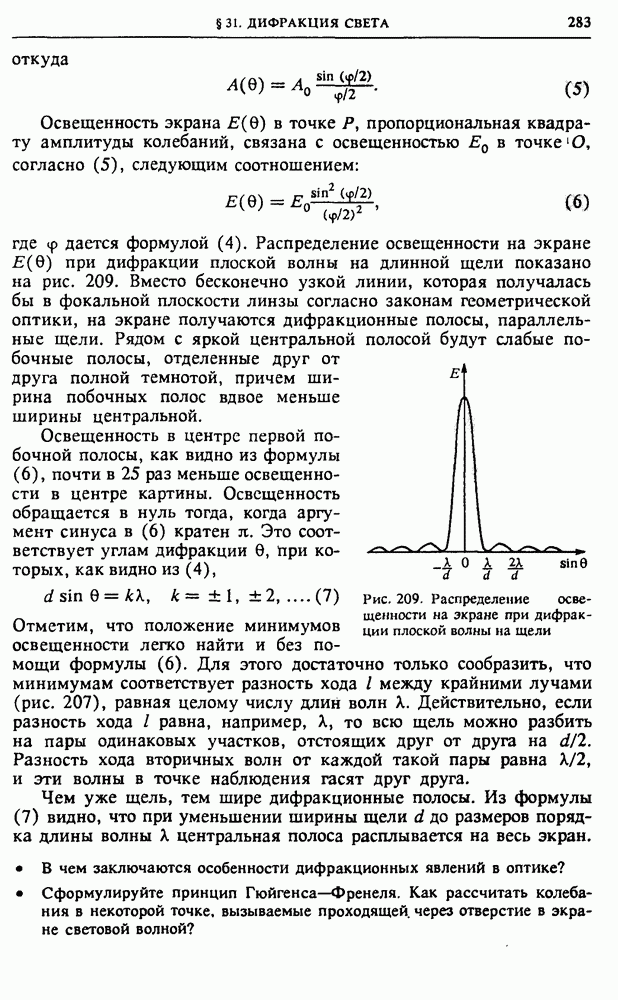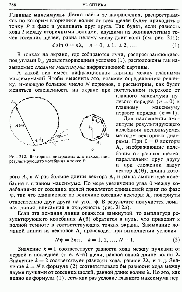 которое, очевидно, совпадает с законом преломления (3), так как угол Отражение и преломление на искривленной поверхности. Плоская волна характеризуется тем свойством, что ее волновые поверхности представляют собой неограниченные плоскости, а направление ее распространения и амплитуда везде одинаковы. Часто электромагнитные волны, не являющиеся плоскими, можно приближенно рассматривать как плоские на небольшом участке пространства. Для этого необходимо, чтобы амплитуда и направление распространения волны почти не менялись на протяжении расстояний порядка длины волны. Тогда также можно ввести понятие лучей, т. е. линий, касательная к которым в каждой точке совпадает с направлением распространения волны. Если при этом граница раздела двух сред, например поверхность линзы, может считаться приблизительно плоской на расстояниях порядка длины волны, то поведение лучей света на такой границе будет описываться теми же законами отражения и преломления. Изучение законов распространения световых волн в этом случае составляет предмет геометрической оптики, поскольку в этом приближении оптические законы можно сформулировать на языке геометрии. Многие оптические явления, такие, как, например, прохождение света через оптические системы, формирующие изображение, можно рассматривать исходя из представления о световых лучах, совершенно отвлекаясь от волновой природы света. Поэтому представления геометрической оптики справедливы лишь в той степени, в какой можно пренебречь явлениями дифракции световых волн. Дифракция сказывается тем слабее, чем меньше длина волны. Это значит, что геометрическая оптика соответствует предельному случаю малых длин волн: Физическую модель пучка световых лучей можно получить, если пропустить свет от источника пренебрежимо малого размера через небольшое отверстие в непрозрачном экране. Выходящий из отверстия свет заполняет некоторую область, и если длина волны пренебрежимо мала по сравнению с размерами отверстия, то на небольшом расстоянии от него можно говорить о пучке световых лучей с резкой границей. Интенсивность отраженного и преломленного света. Законы отражения и преломления позволяют определить только направление соответствующих световых лучей, но ничего не говорят об их интенсивности. Между тем опыт показывает, что соотношение интенсивностей отраженного и преломленного лучей, на которые расщепляется исходный луч на границе раздела, сильно зависит от угла падения. Например, при нормальном падении света на поверхность стекла отражается около 4% энергии падающего светового пучка, а при падении на поверхность воды — только 2 %. Но при скользящем падении поверхности стекла и воды отражают почти все падающее излучение. Благодаря этому мы можем любоваться зеркальными отражениями берегов в спокойной прозрачной воде горных озер.