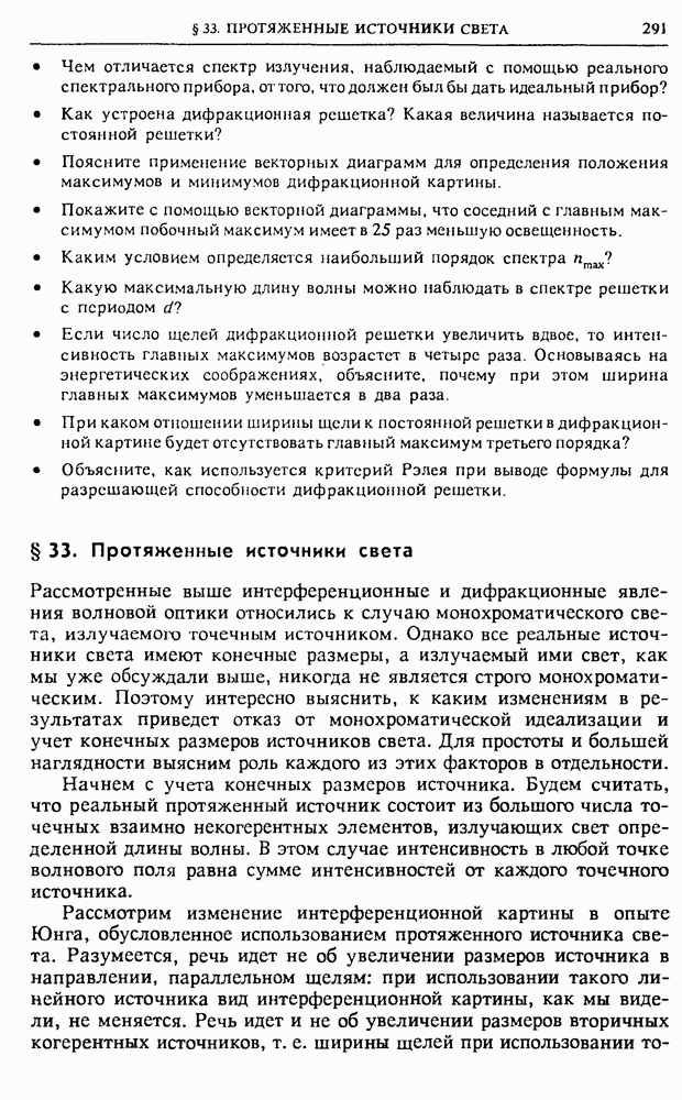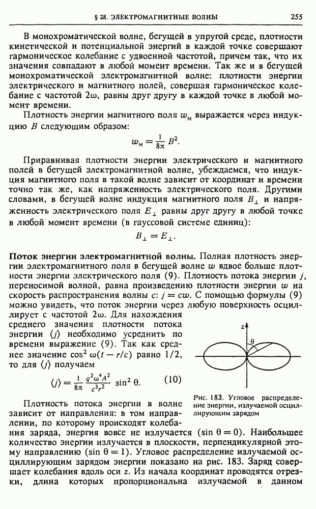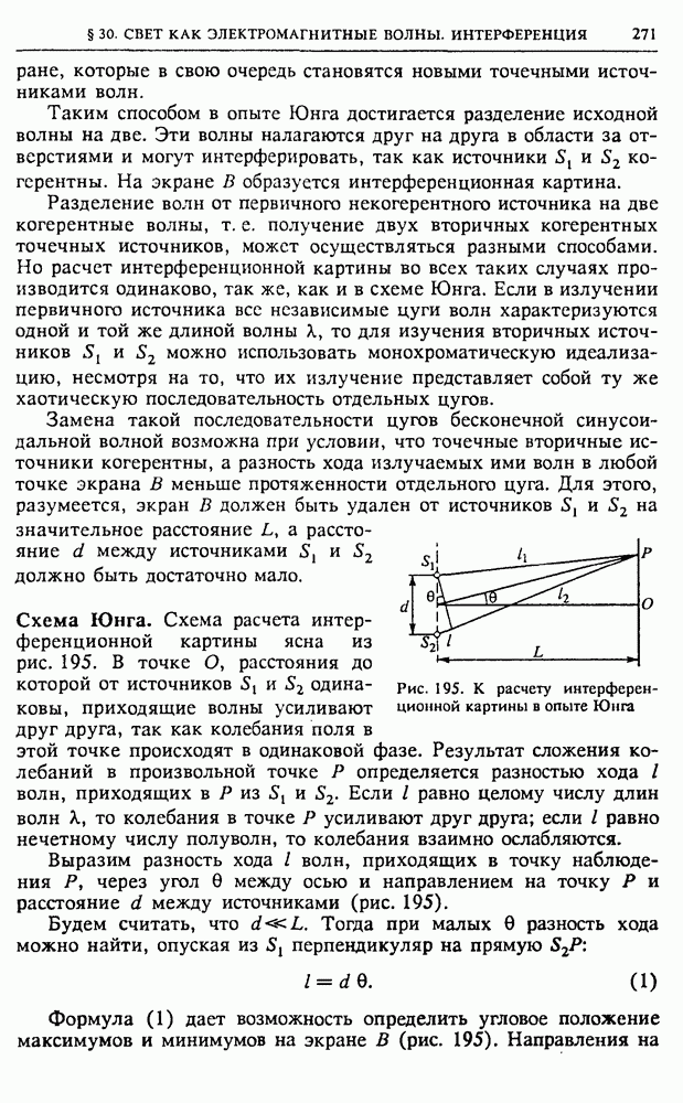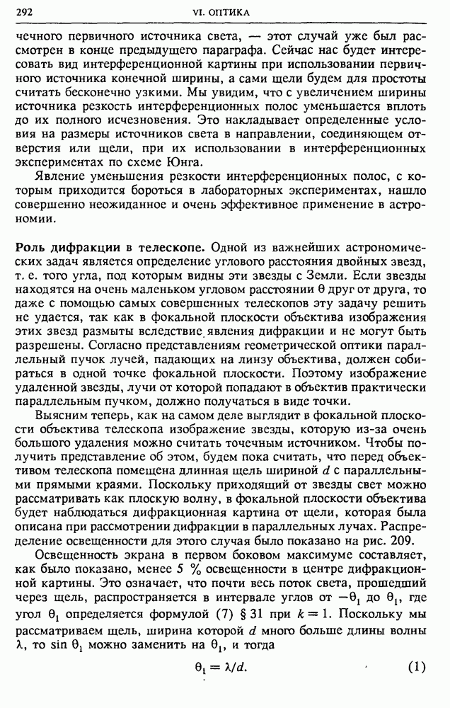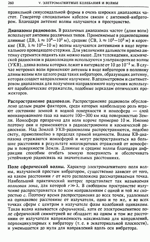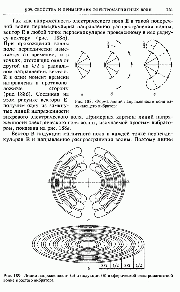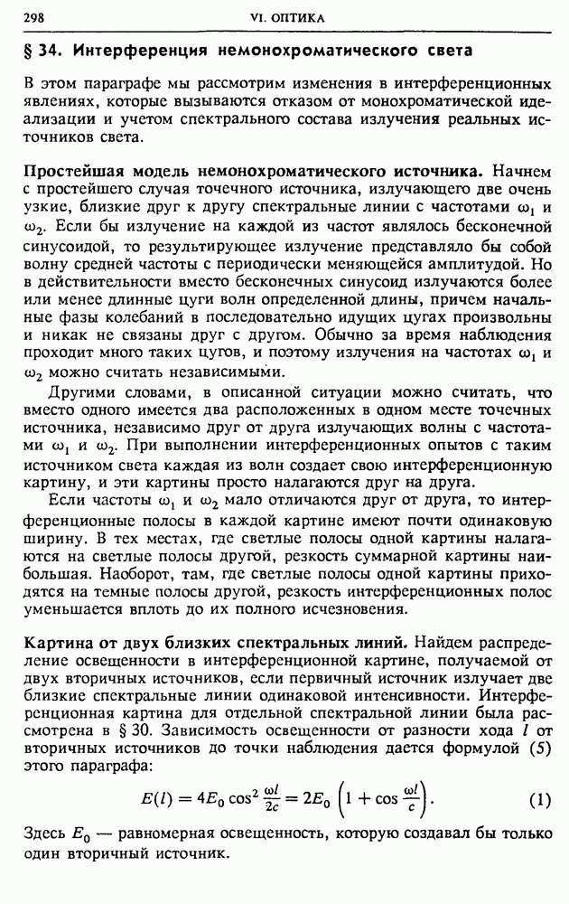 которое, очевидно, совпадает с законом преломления (3), так как угол Отражение и преломление на искривленной поверхности. Плоская волна характеризуется тем свойством, что ее волновые поверхности представляют собой неограниченные плоскости, а направление ее распространения и амплитуда везде одинаковы. Часто электромагнитные волны, не являющиеся плоскими, можно приближенно рассматривать как плоские на небольшом участке пространства. Для этого необходимо, чтобы амплитуда и направление распространения волны почти не менялись на протяжении расстояний порядка длины волны. Тогда также можно ввести понятие лучей, т. е. линий, касательная к которым в каждой точке совпадает с направлением распространения волны. Если при этом граница раздела двух сред, например поверхность линзы, может считаться приблизительно плоской на расстояниях порядка длины волны, то поведение лучей света на такой границе будет описываться теми же законами отражения и преломления. Изучение законов распространения световых волн в этом случае составляет предмет геометрической оптики, поскольку в этом приближении оптические законы можно сформулировать на языке геометрии. Многие оптические явления, такие, как, например, прохождение света через оптические системы, формирующие изображение, можно рассматривать исходя из представления о световых лучах, совершенно отвлекаясь от волновой природы света. Поэтому представления геометрической оптики справедливы лишь в той степени, в какой можно пренебречь явлениями дифракции световых волн. Дифракция сказывается тем слабее, чем меньше длина волны. Это значит, что геометрическая оптика соответствует предельному случаю малых длин волн: Физическую модель пучка световых лучей можно получить, если пропустить свет от источника пренебрежимо малого размера через небольшое отверстие в непрозрачном экране. Выходящий из отверстия свет заполняет некоторую область, и если длина волны пренебрежимо мала по сравнению с размерами отверстия, то на небольшом расстоянии от него можно говорить о пучке световых лучей с резкой границей. Интенсивность отраженного и преломленного света. Законы отражения и преломления позволяют определить только направление соответствующих световых лучей, но ничего не говорят об их интенсивности. Между тем опыт показывает, что соотношение интенсивностей отраженного и преломленного лучей, на которые расщепляется исходный луч на границе раздела, сильно зависит от угла падения. Например, при нормальном падении света на поверхность стекла отражается около 4% энергии падающего светового пучка, а при падении на поверхность воды — только 2 %. Но при скользящем падении поверхности стекла и воды отражают почти все падающее излучение. Благодаря этому мы можем любоваться зеркальными отражениями берегов в спокойной прозрачной воде горных озер.