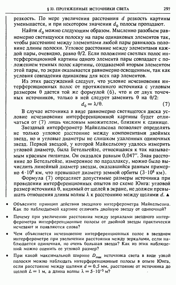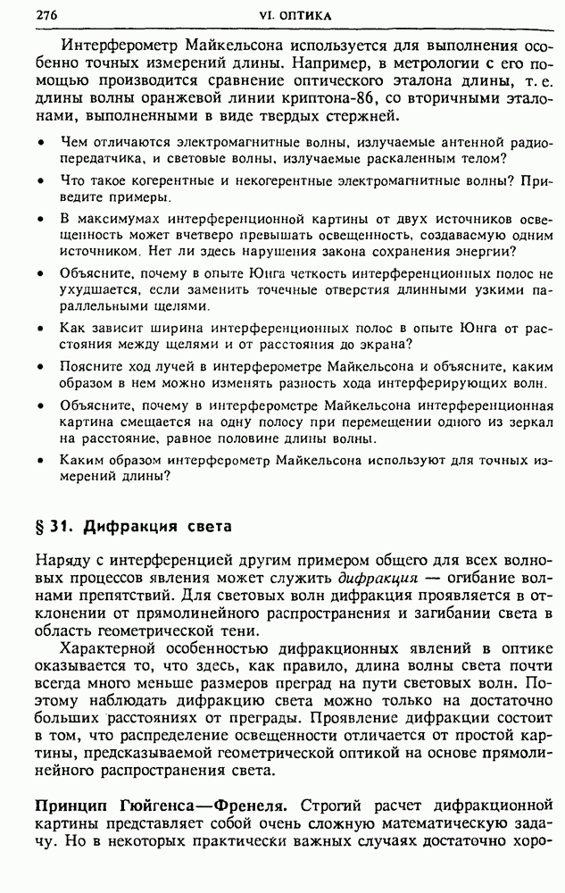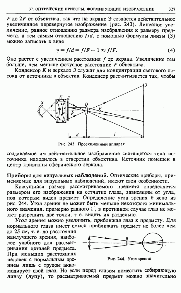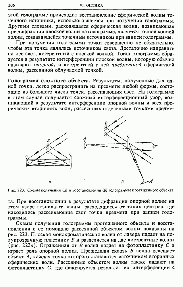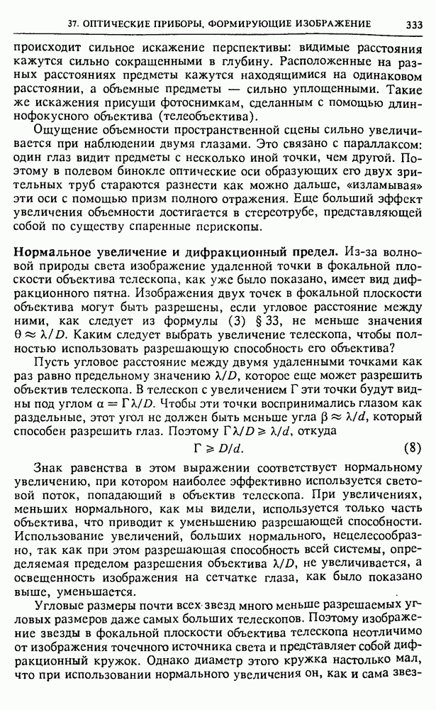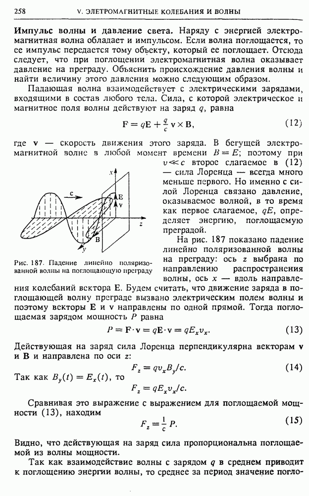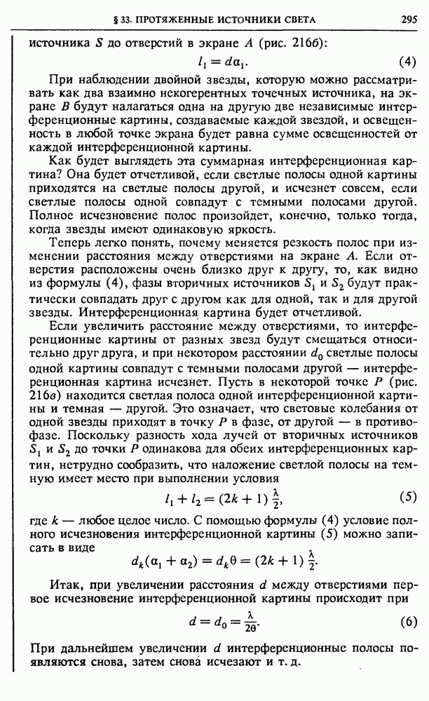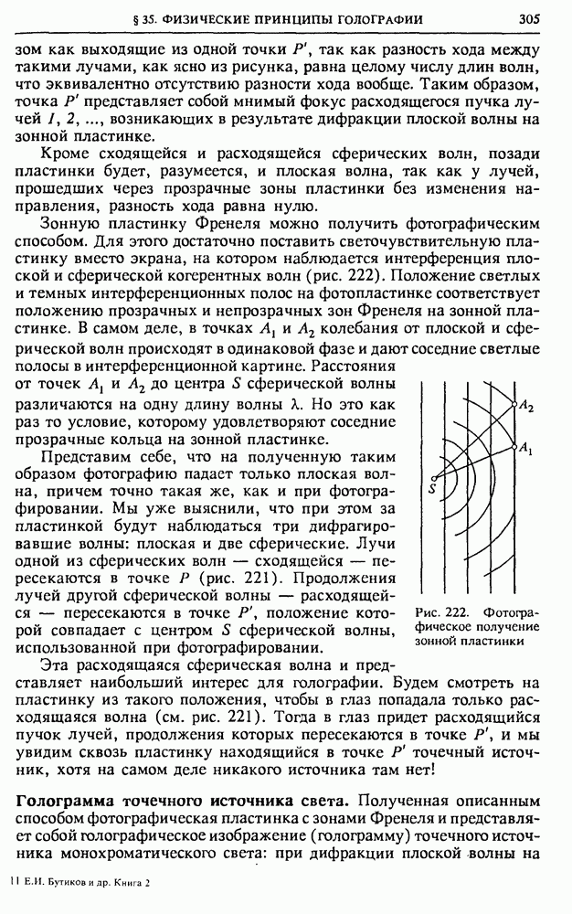 которое, очевидно, совпадает с законом преломления (3), так как угол Отражение и преломление на искривленной поверхности. Плоская волна характеризуется тем свойством, что ее волновые поверхности представляют собой неограниченные плоскости, а направление ее распространения и амплитуда везде одинаковы. Часто электромагнитные волны, не являющиеся плоскими, можно приближенно рассматривать как плоские на небольшом участке пространства. Для этого необходимо, чтобы амплитуда и направление распространения волны почти не менялись на протяжении расстояний порядка длины волны. Тогда также можно ввести понятие лучей, т. е. линий, касательная к которым в каждой точке совпадает с направлением распространения волны. Если при этом граница раздела двух сред, например поверхность линзы, может считаться приблизительно плоской на расстояниях порядка длины волны, то поведение лучей света на такой границе будет описываться теми же законами отражения и преломления. Изучение законов распространения световых волн в этом случае составляет предмет геометрической оптики, поскольку в этом приближении оптические законы можно сформулировать на языке геометрии. Многие оптические явления, такие, как, например, прохождение света через оптические системы, формирующие изображение, можно рассматривать исходя из представления о световых лучах, совершенно отвлекаясь от волновой природы света. Поэтому представления геометрической оптики справедливы лишь в той степени, в какой можно пренебречь явлениями дифракции световых волн. Дифракция сказывается тем слабее, чем меньше длина волны. Это значит, что геометрическая оптика соответствует предельному случаю малых длин волн: Физическую модель пучка световых лучей можно получить, если пропустить свет от источника пренебрежимо малого размера через небольшое отверстие в непрозрачном экране. Выходящий из отверстия свет заполняет некоторую область, и если длина волны пренебрежимо мала по сравнению с размерами отверстия, то на небольшом расстоянии от него можно говорить о пучке световых лучей с резкой границей. Интенсивность отраженного и преломленного света. Законы отражения и преломления позволяют определить только направление соответствующих световых лучей, но ничего не говорят об их интенсивности. Между тем опыт показывает, что соотношение интенсивностей отраженного и преломленного лучей, на которые расщепляется исходный луч на границе раздела, сильно зависит от угла падения. Например, при нормальном падении света на поверхность стекла отражается около 4% энергии падающего светового пучка, а при падении на поверхность воды — только 2 %. Но при скользящем падении поверхности стекла и воды отражают почти все падающее излучение. Благодаря этому мы можем любоваться зеркальными отражениями берегов в спокойной прозрачной воде горных озер.