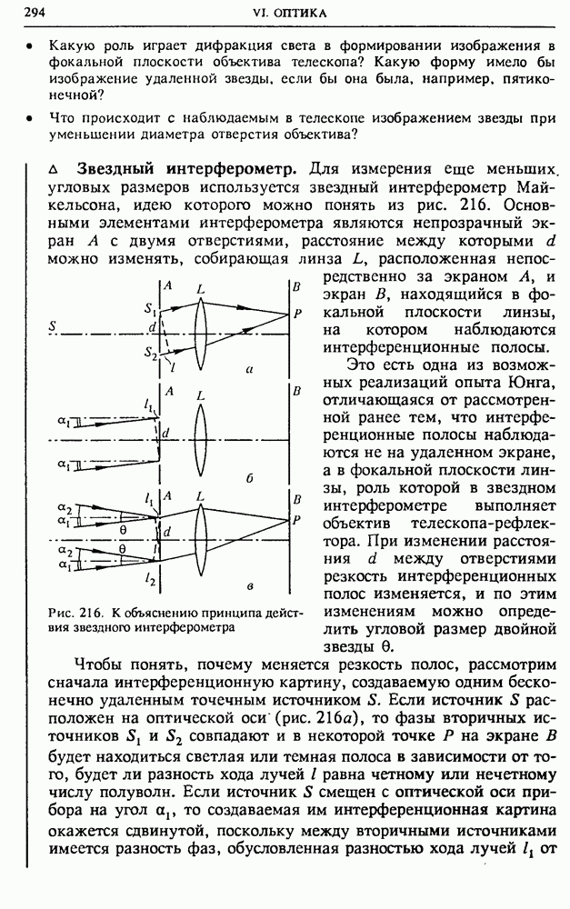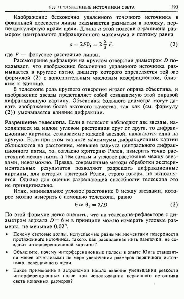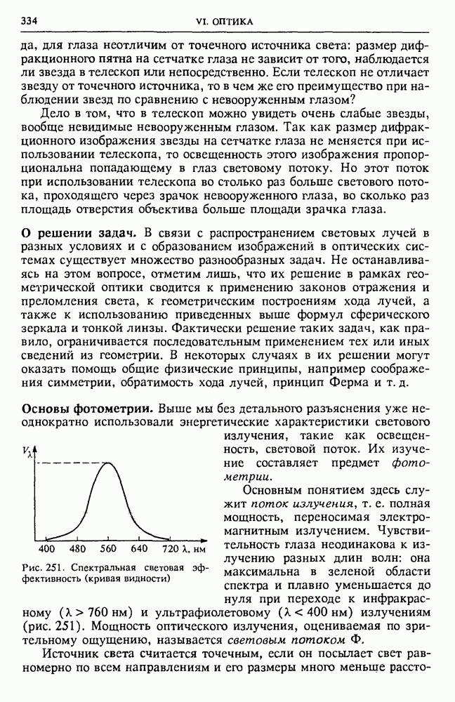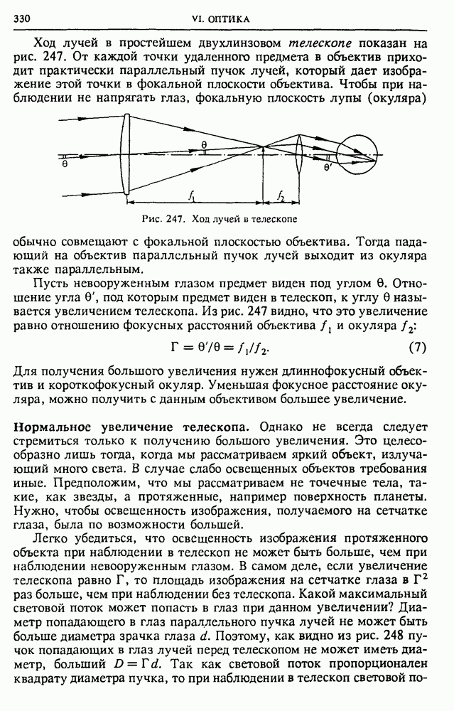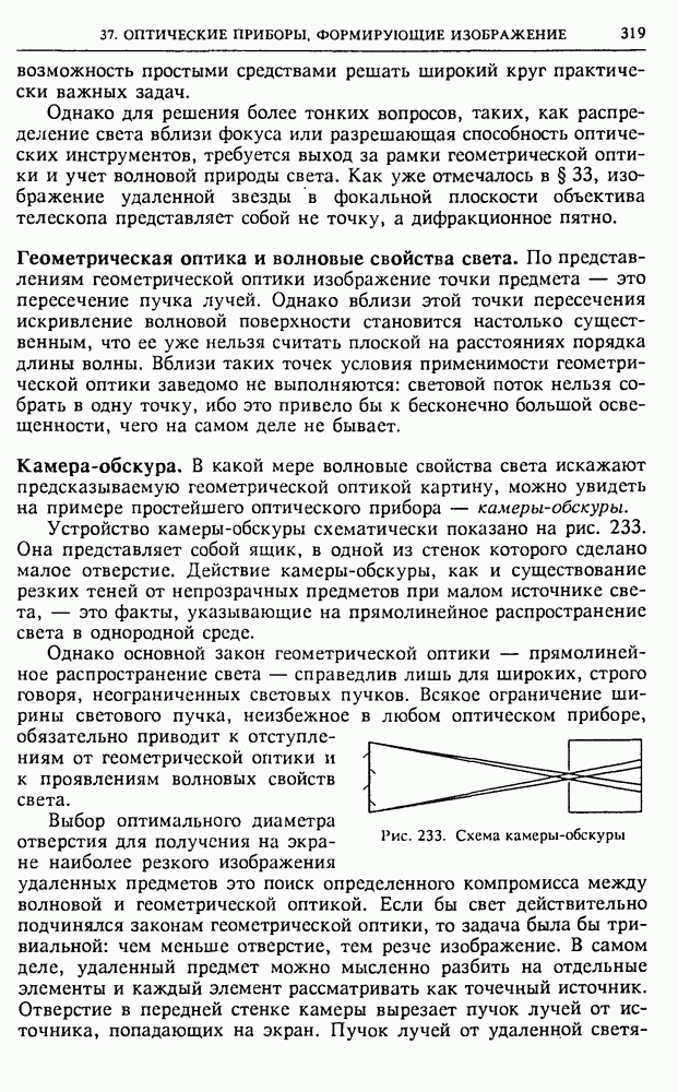 Рис. 232. Все параллельные лучи после отражения от параболического зеркала собираются в точке Параболические зеркала используются во всех крупнейших телескопах. В этих телескопах устранены сферическая и хроматическая аберрации; однако параллельные пучки, идущие даже под небольшими углами к оптической оси, после отражения не пересекаются в одной точке и дают сильно искаженные внеосевые изображения. Поэтому пригодное для работы поле зрения оказывается очень небольшим, порядка нескольких десятков угловых минут, • Поясните, почему применительно к фокусирующей оптической системе принцип Ферма формулируется как условие равенства оптических длин всех лучей от точки предмета до ее изображения. • Выведите с помощью принципа Ферма закон преломления света на границе раздела двух сред. • Сформулируйте приближения, при выполнении которых справедлива формула тонкой линзы. • В чем проявляются сферическая и хроматическая аберрации линзы? • Какие преимущества и какие недостатки имеет параболическое зеркало по сравнению со сферическим? • Покажите, что эллиптическое зеркало отражает все лучи, вышедшие из одного фокуса эллипсоида, в другой фокус.