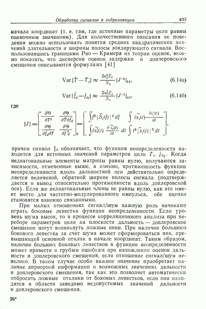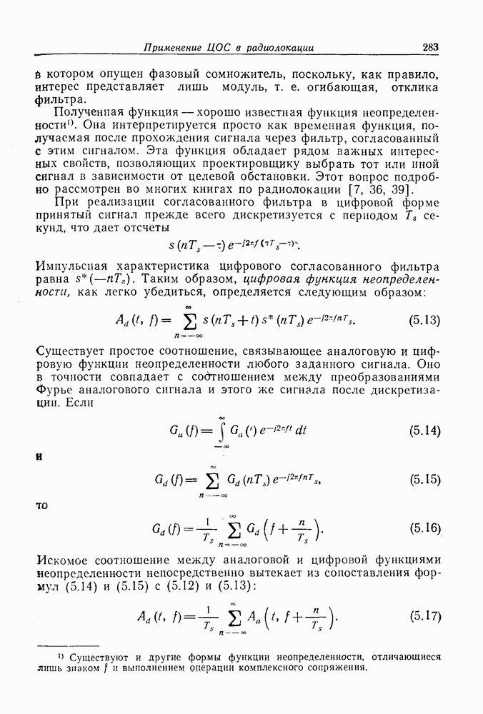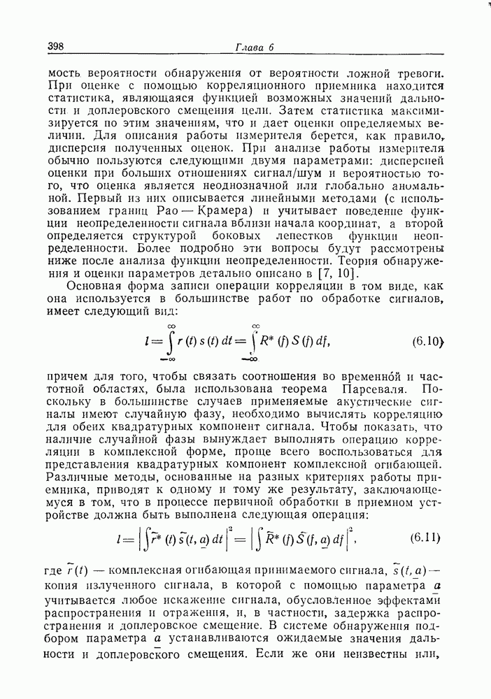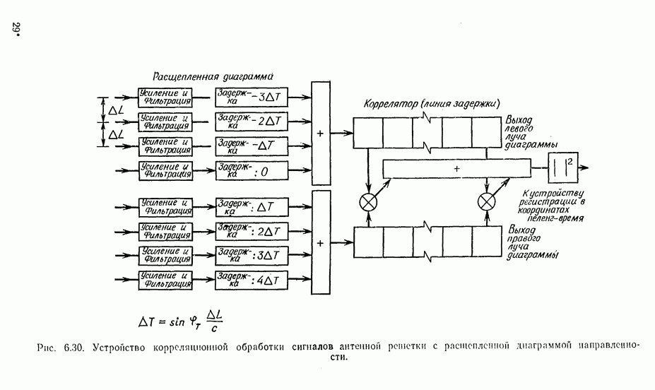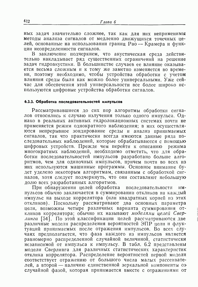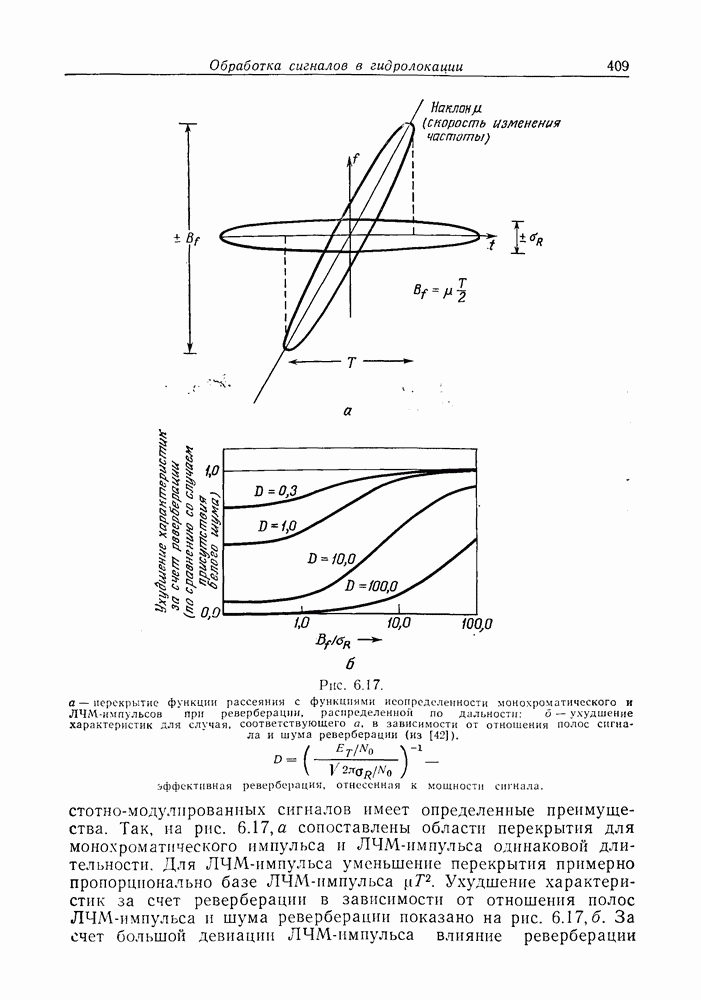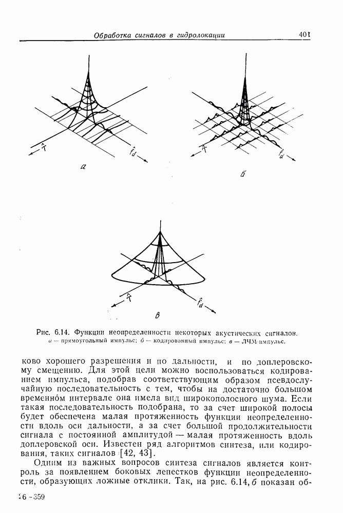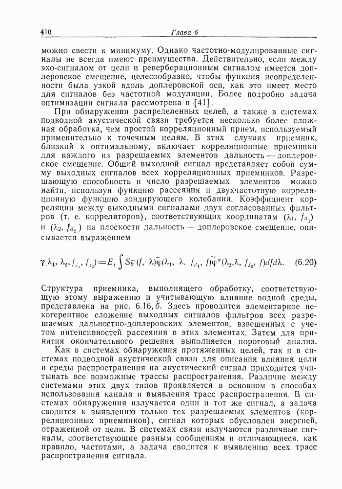 Следовательно, частота эхо-сигнала от точечной цели, принимаемого в РСА, меняется приблизительно по линейному закону. Скорость изменения частоты этого ЛЧМ-сигнала равна Как и при обычной согласованной фильтрации, рассмотренной выше (см. разд. 5.4.2), сжатие импульса можно дополнить взвешиванием и уменьшить таким образом уровень боковых лепестков за счет некоторого расширения главного лепестка. В общем случае принятый сигнал является результатам суперпозиции большого количества эхо-сигналов с различными амплитудами, поэтому уровень суммарной энергии в боковых лепестках оказывает существенное влияние на величину динамического диапазона итоговой радиолокационной карты. Несмотря на то что почти все предположения, использованные в проведенном выше анализе, на практике справедливы лишь приблизительно, основные идеи обработки сигналов РСА все же остаются в силе. Рассмотрим введенные предположения более подробно. Прежде всего аппроксимация как сжатие импульса в азимутальном направлении выполняется для фиксированной дальности. Таким образом, в реальной системе не удается достичь теоретического значения предельного разрешения по азимуту, равного Выше предполагалось, что излучается непрерывный монохроматический сигнал. Он не обеспечивает разрешения по второй координате — дальности, а без этого невозможно, используя РСА, получить радиолокационную карту. Поэтому обычно в качестве зондирующего сигнала используется пачка импульсов. Эхо-сигналы, соответствующие одной и той же дальностной полосе, накапливаются на нескольких последовательных периодах излучения, а затем совместно обрабатываются, причем эхо-сигналы от различных дальностей обрабатываются раздельно. Частота повторения излучаемых импульсов в пачке должна удовлетворять двум требованиям, вытекающим из условий однозначного разрешения по дальности и по доплеровскому смещению (т. е. в азимутальном направлении). Чтобы обеспечить однозначное разрешение по дальности, нужно выбрать период повторения импульсов короче