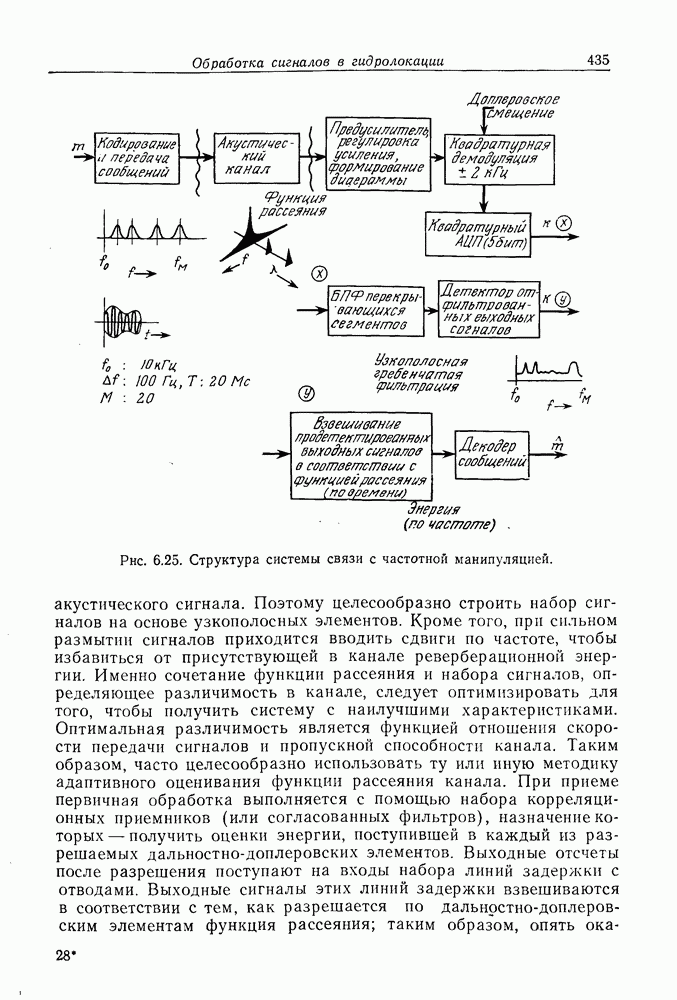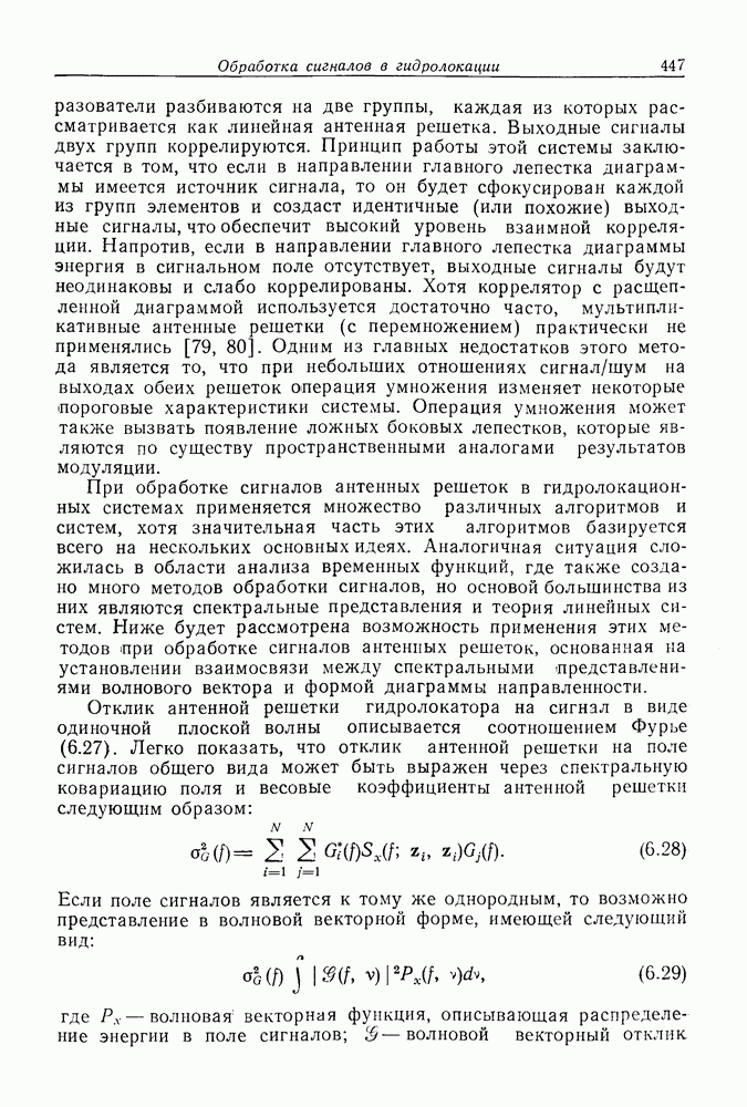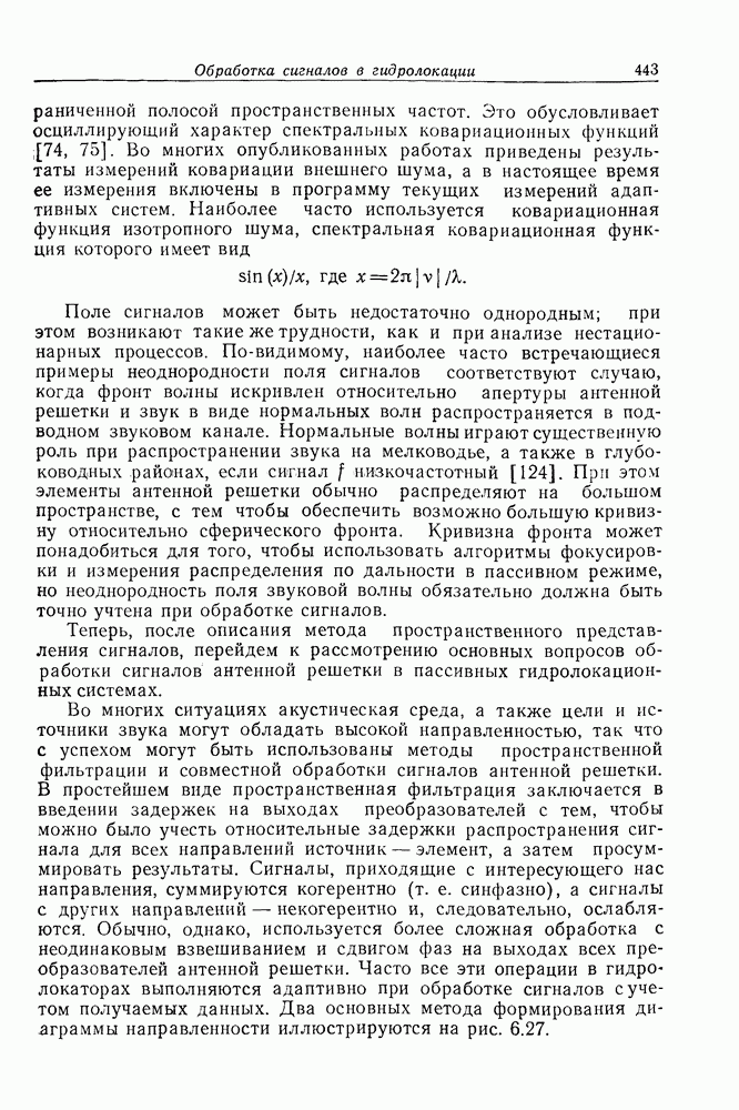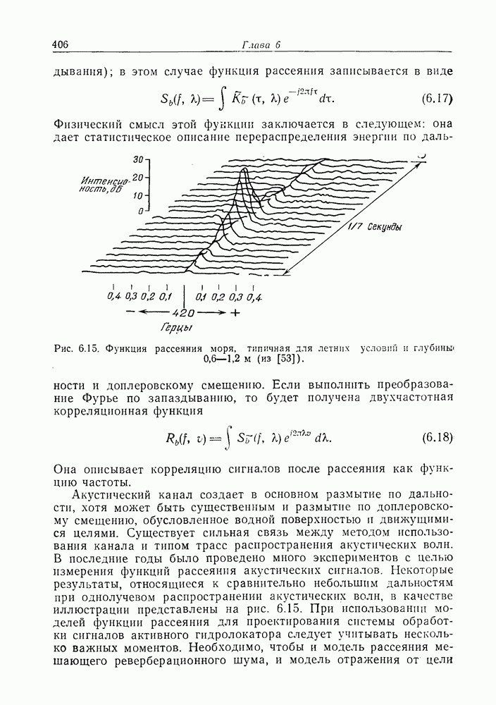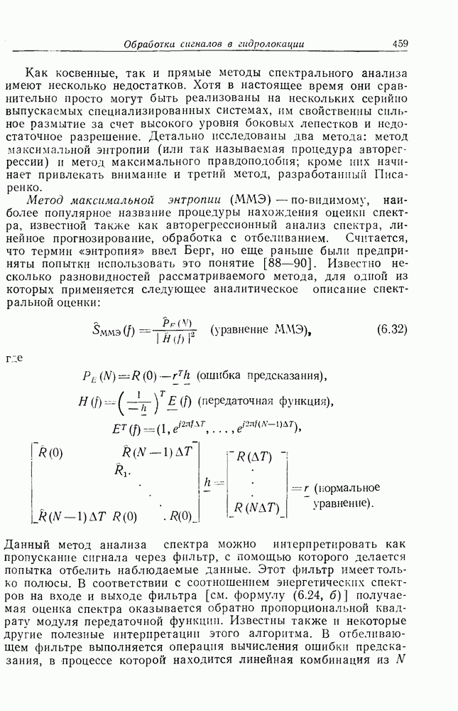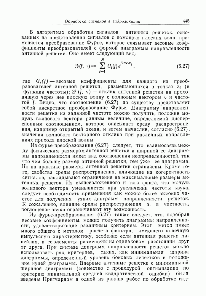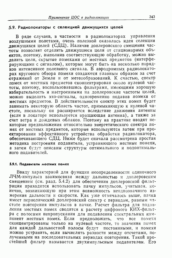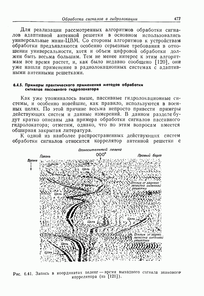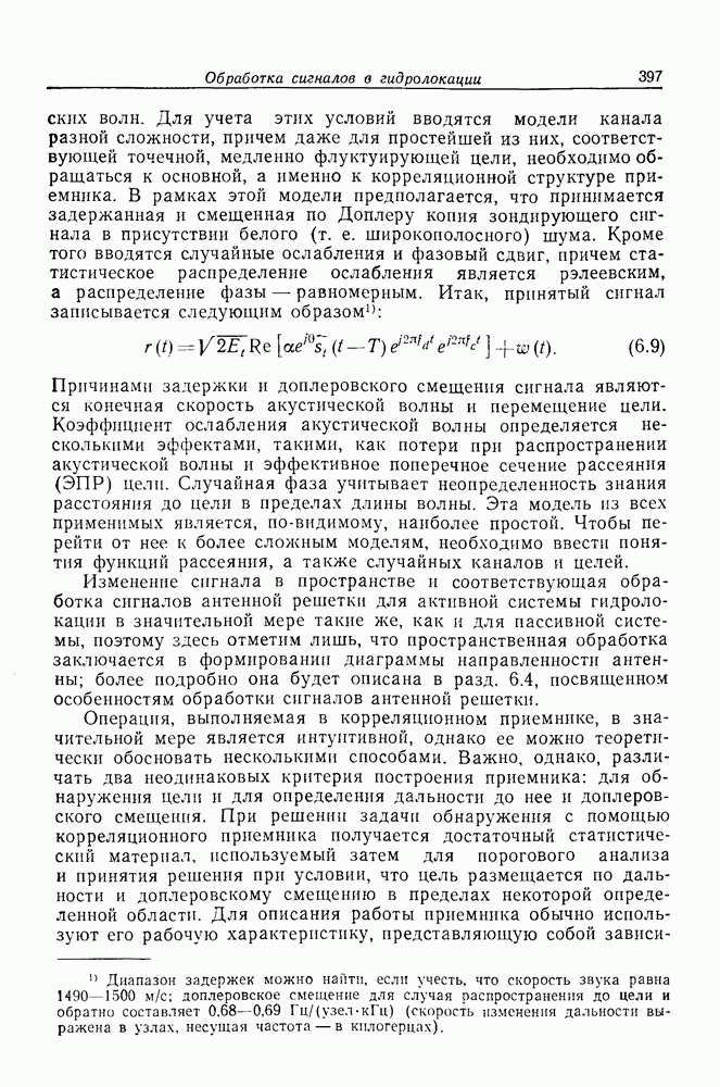 Следовательно, частота эхо-сигнала от точечной цели, принимаемого в РСА, меняется приблизительно по линейному закону. Скорость изменения частоты этого ЛЧМ-сигнала равна Как и при обычной согласованной фильтрации, рассмотренной выше (см. разд. 5.4.2), сжатие импульса можно дополнить взвешиванием и уменьшить таким образом уровень боковых лепестков за счет некоторого расширения главного лепестка. В общем случае принятый сигнал является результатам суперпозиции большого количества эхо-сигналов с различными амплитудами, поэтому уровень суммарной энергии в боковых лепестках оказывает существенное влияние на величину динамического диапазона итоговой радиолокационной карты. Несмотря на то что почти все предположения, использованные в проведенном выше анализе, на практике справедливы лишь приблизительно, основные идеи обработки сигналов РСА все же остаются в силе. Рассмотрим введенные предположения более подробно. Прежде всего аппроксимация как сжатие импульса в азимутальном направлении выполняется для фиксированной дальности. Таким образом, в реальной системе не удается достичь теоретического значения предельного разрешения по азимуту, равного Выше предполагалось, что излучается непрерывный монохроматический сигнал. Он не обеспечивает разрешения по второй координате — дальности, а без этого невозможно, используя РСА, получить радиолокационную карту. Поэтому обычно в качестве зондирующего сигнала используется пачка импульсов. Эхо-сигналы, соответствующие одной и той же дальностной полосе, накапливаются на нескольких последовательных периодах излучения, а затем совместно обрабатываются, причем эхо-сигналы от различных дальностей обрабатываются раздельно. Частота повторения излучаемых импульсов в пачке должна удовлетворять двум требованиям, вытекающим из условий однозначного разрешения по дальности и по доплеровскому смещению (т. е. в азимутальном направлении). Чтобы обеспечить однозначное разрешение по дальности, нужно выбрать период повторения импульсов короче