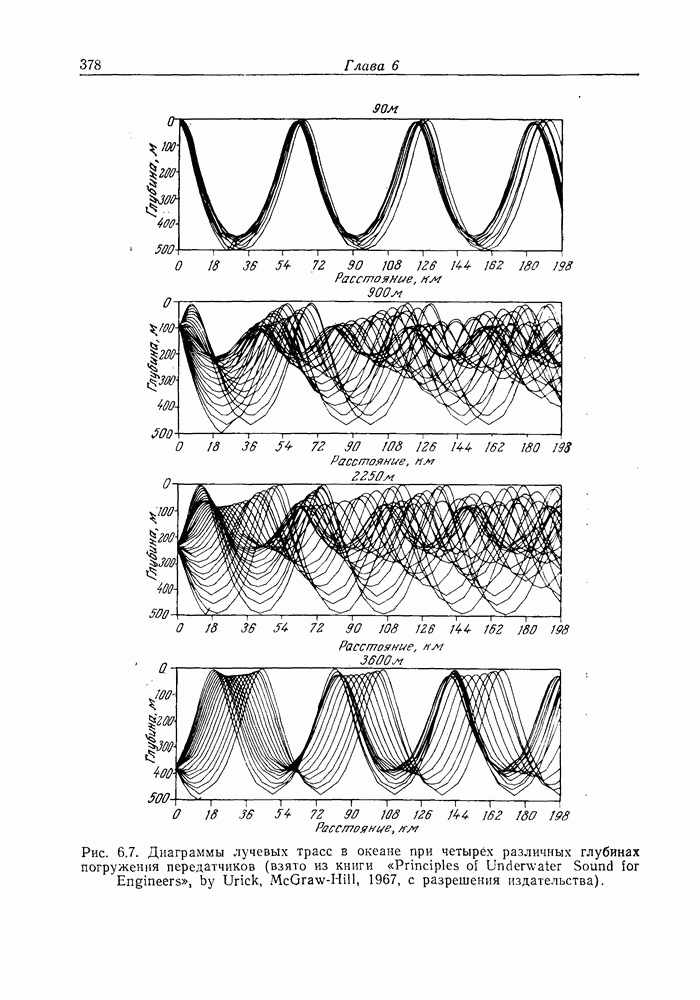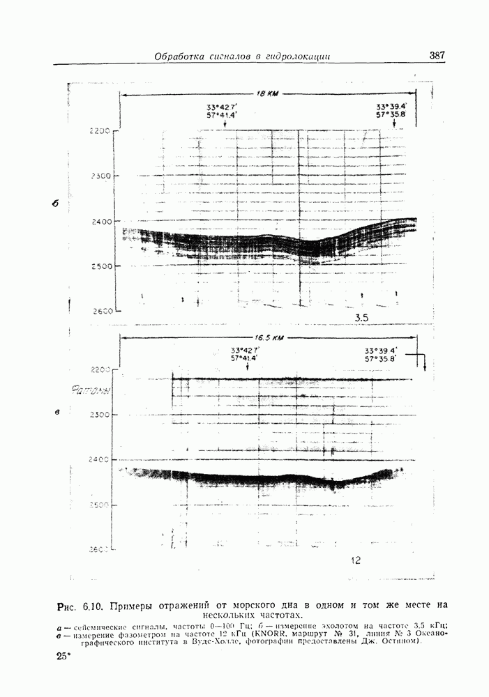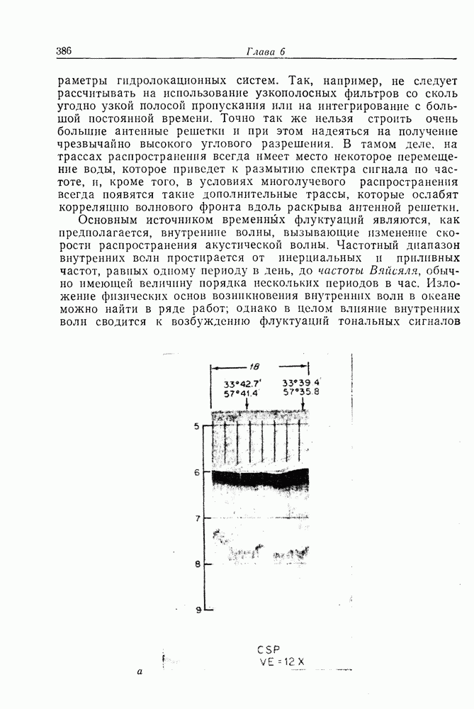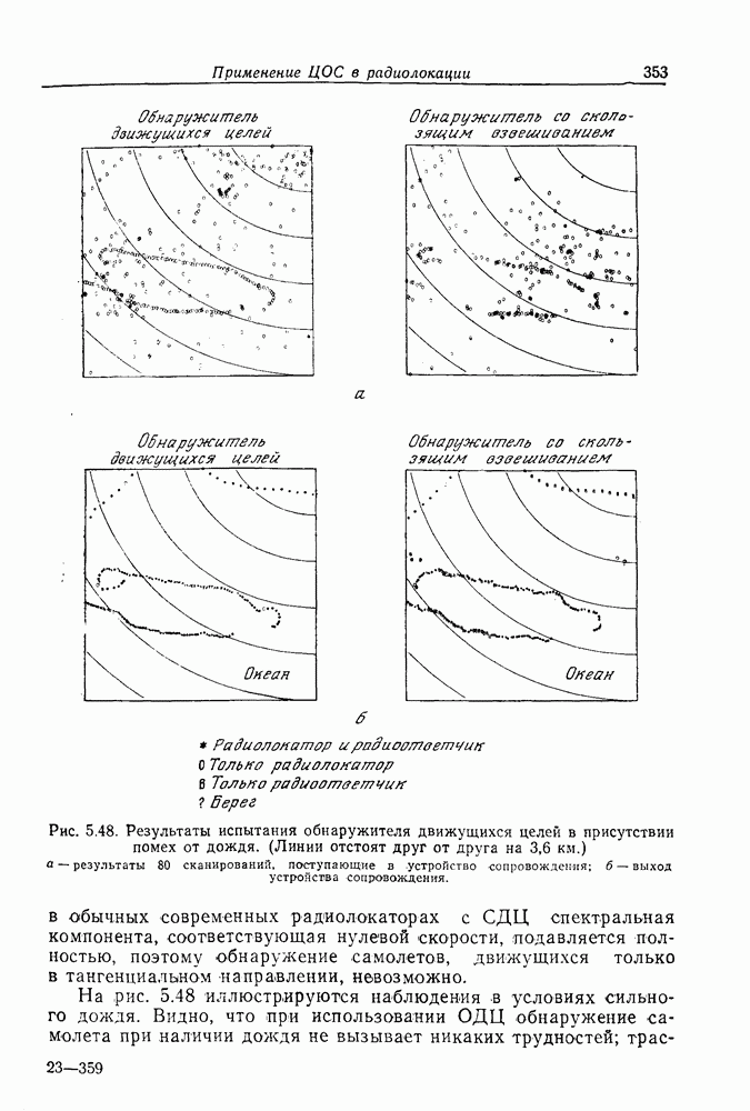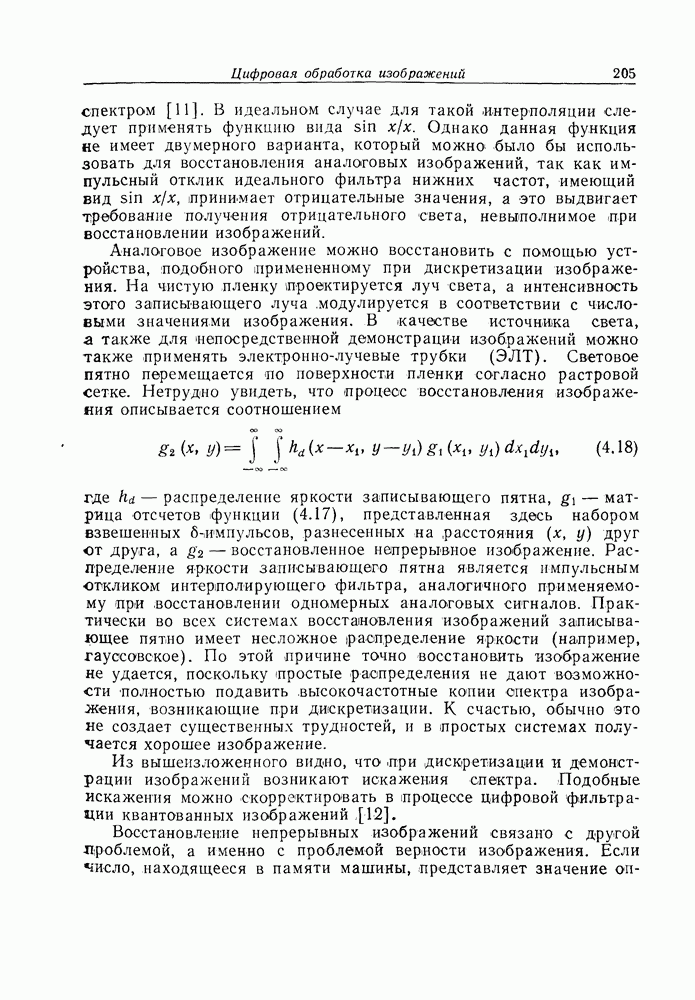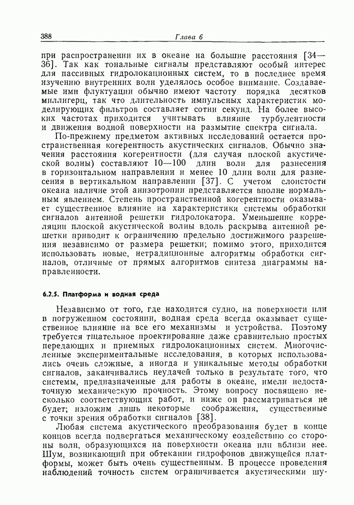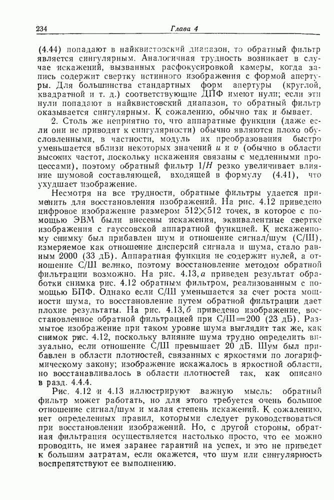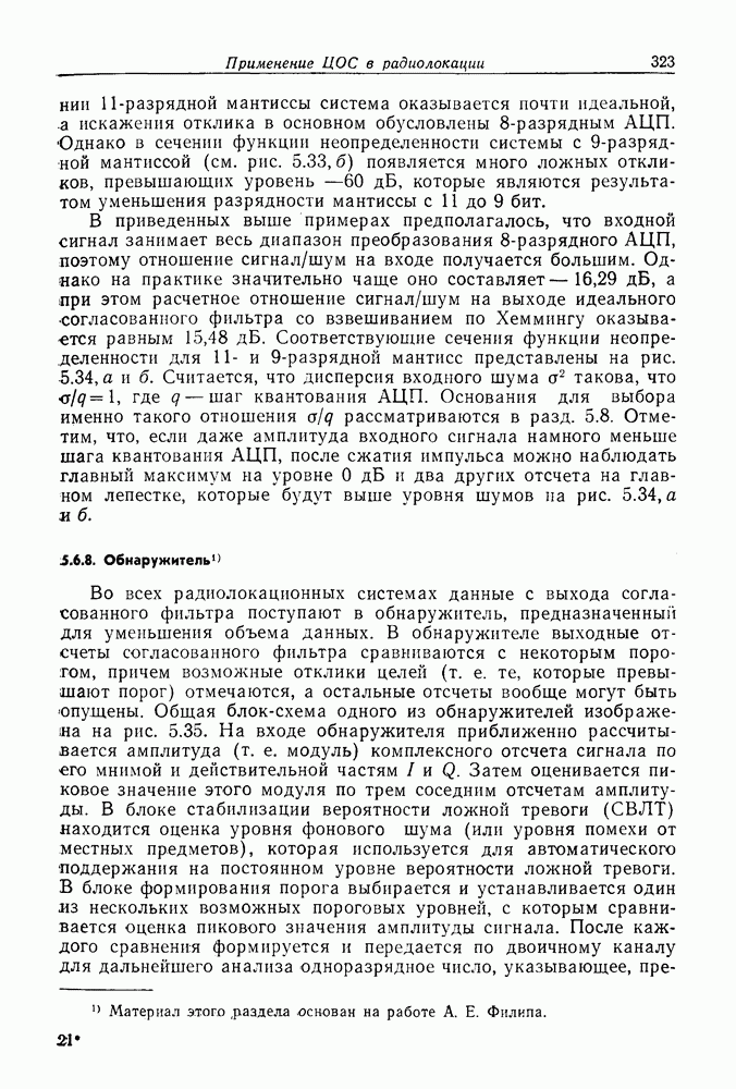 Следовательно, частота эхо-сигнала от точечной цели, принимаемого в РСА, меняется приблизительно по линейному закону. Скорость изменения частоты этого ЛЧМ-сигнала равна Как и при обычной согласованной фильтрации, рассмотренной выше (см. разд. 5.4.2), сжатие импульса можно дополнить взвешиванием и уменьшить таким образом уровень боковых лепестков за счет некоторого расширения главного лепестка. В общем случае принятый сигнал является результатам суперпозиции большого количества эхо-сигналов с различными амплитудами, поэтому уровень суммарной энергии в боковых лепестках оказывает существенное влияние на величину динамического диапазона итоговой радиолокационной карты. Несмотря на то что почти все предположения, использованные в проведенном выше анализе, на практике справедливы лишь приблизительно, основные идеи обработки сигналов РСА все же остаются в силе. Рассмотрим введенные предположения более подробно. Прежде всего аппроксимация как сжатие импульса в азимутальном направлении выполняется для фиксированной дальности. Таким образом, в реальной системе не удается достичь теоретического значения предельного разрешения по азимуту, равного Выше предполагалось, что излучается непрерывный монохроматический сигнал. Он не обеспечивает разрешения по второй координате — дальности, а без этого невозможно, используя РСА, получить радиолокационную карту. Поэтому обычно в качестве зондирующего сигнала используется пачка импульсов. Эхо-сигналы, соответствующие одной и той же дальностной полосе, накапливаются на нескольких последовательных периодах излучения, а затем совместно обрабатываются, причем эхо-сигналы от различных дальностей обрабатываются раздельно. Частота повторения излучаемых импульсов в пачке должна удовлетворять двум требованиям, вытекающим из условий однозначного разрешения по дальности и по доплеровскому смещению (т. е. в азимутальном направлении). Чтобы обеспечить однозначное разрешение по дальности, нужно выбрать период повторения импульсов короче