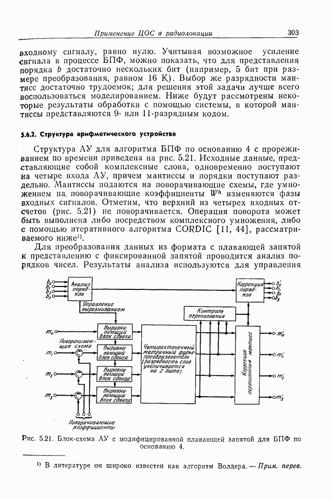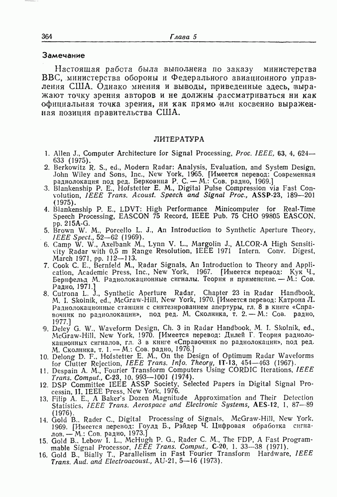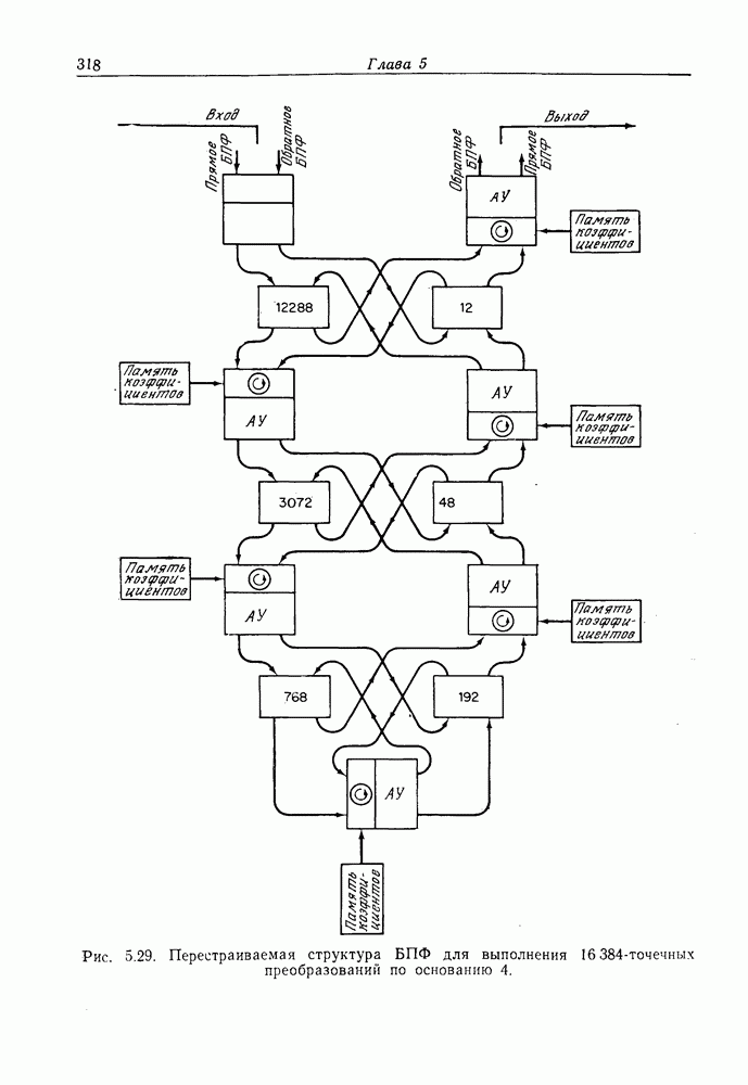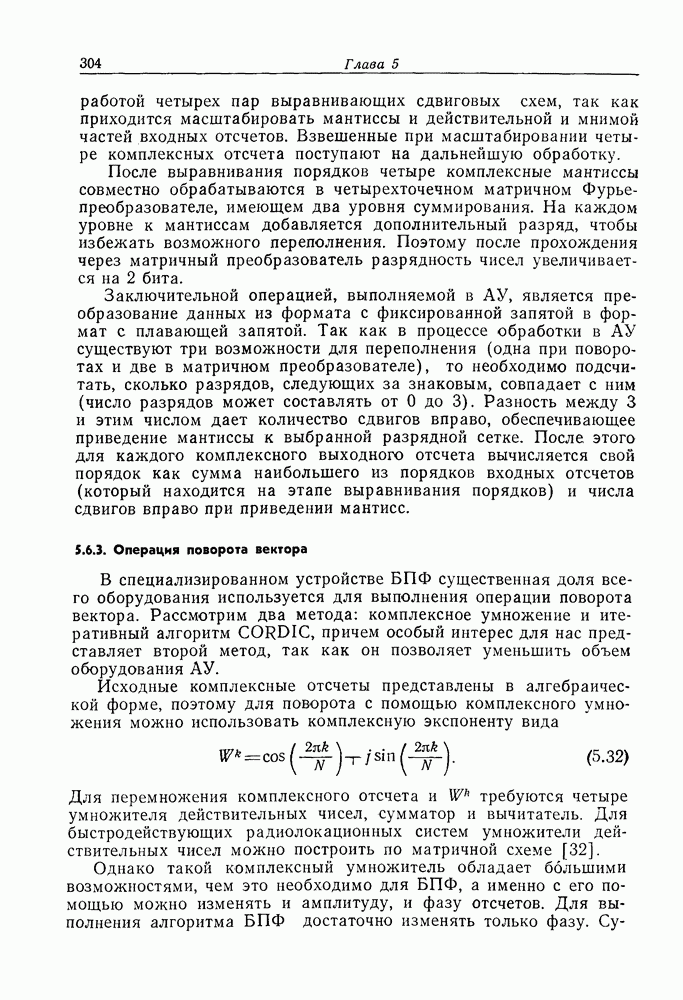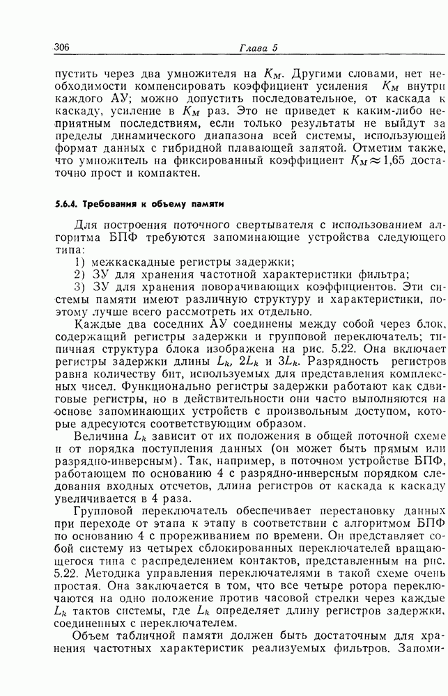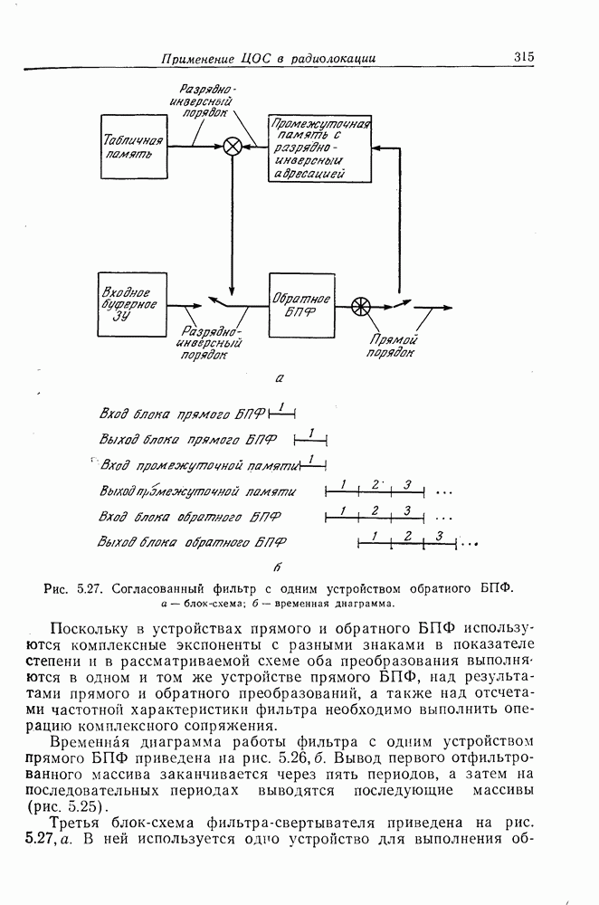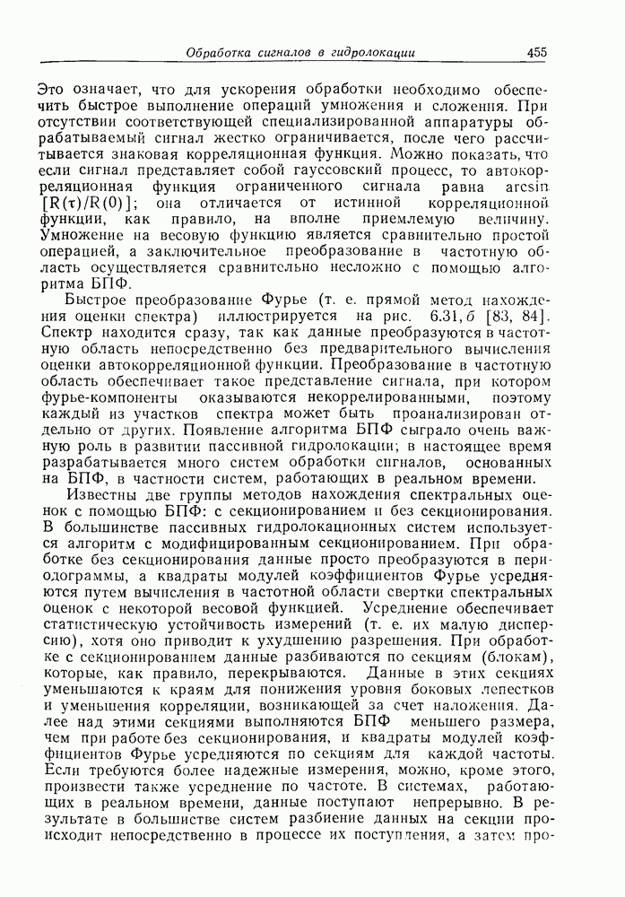 Если рассмотреть типовые характеристики РСА, то можно убедиться, что предъявляемые требования исключительно высоки. При Требование к быстродействию можно снизить, если использовать алгоритм высокоскоростной свертки с применением БПФ и распараллеливание операций, но даже при этом необходимая скорость вычислений остается все еще слишком высокой. Более того, объем памяти на самом деле требуется увеличить, так как необходимо промежуточное накопление данных. При работе РСА в телескопическом режиме применение алгоритма БПФ создает дополнительные возможности сокращения требуемого быстродействия и практической реализации устройства обработки сигналов РСА.