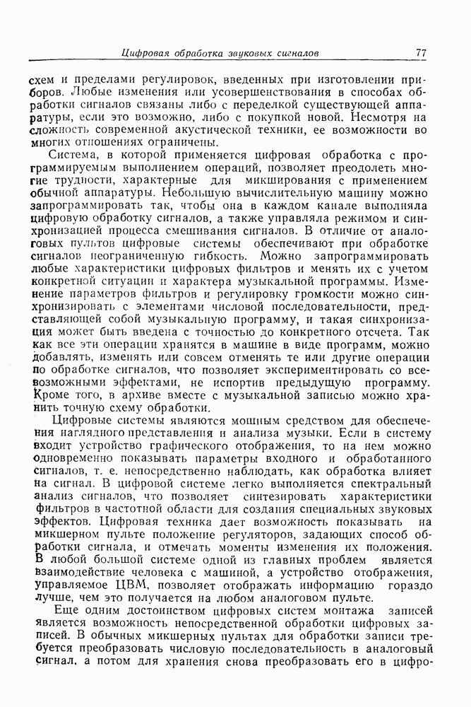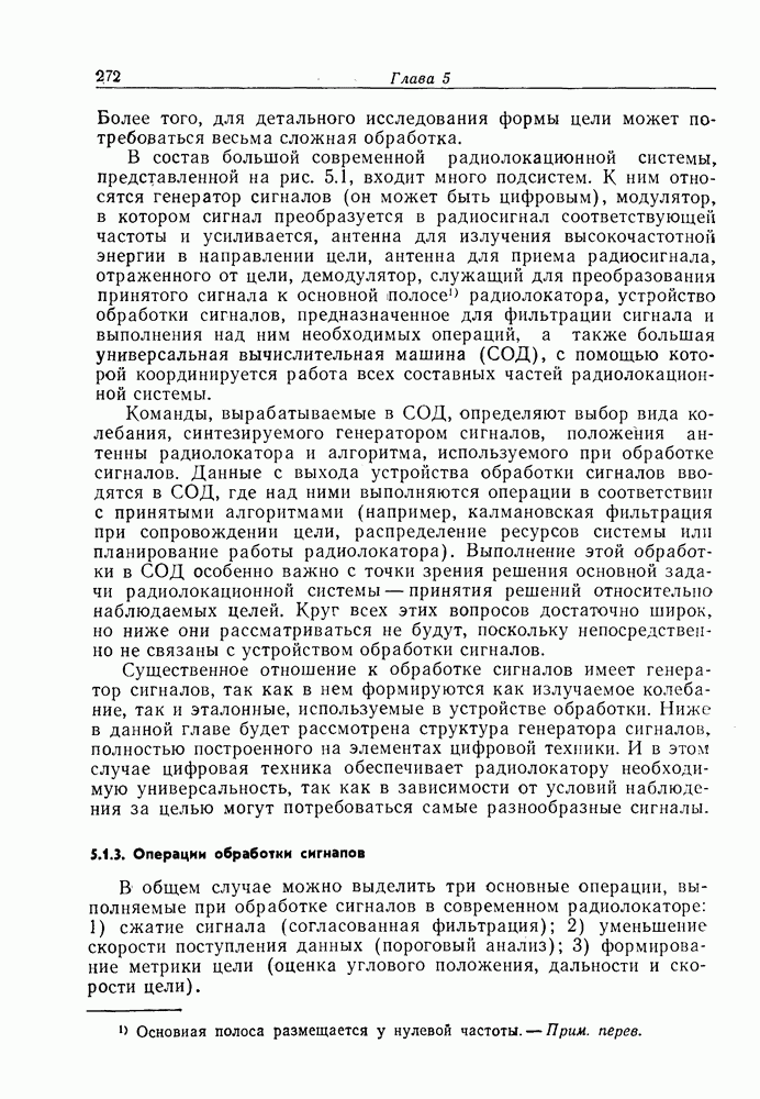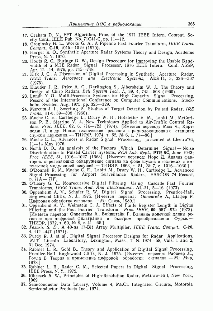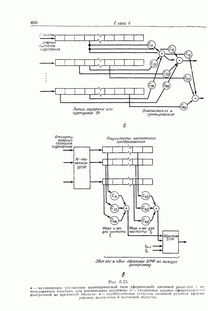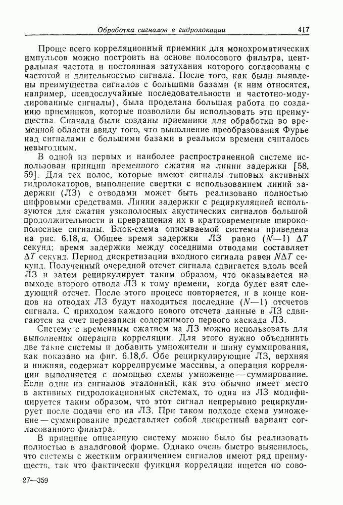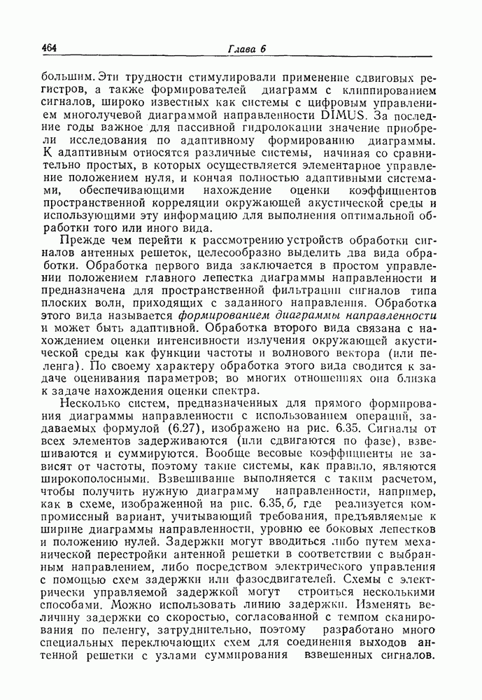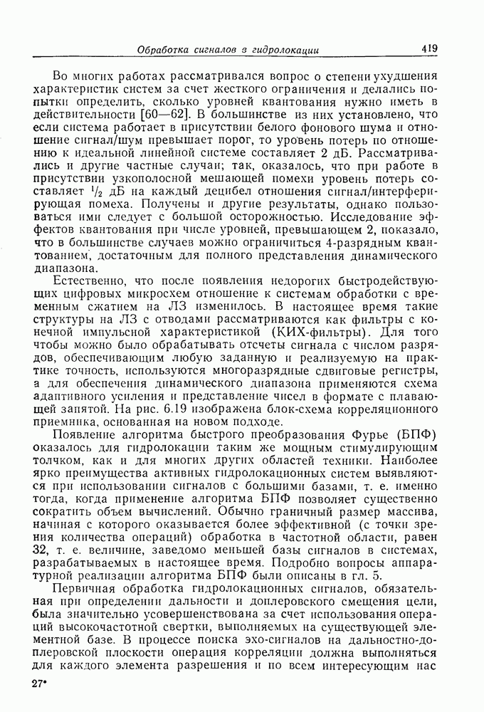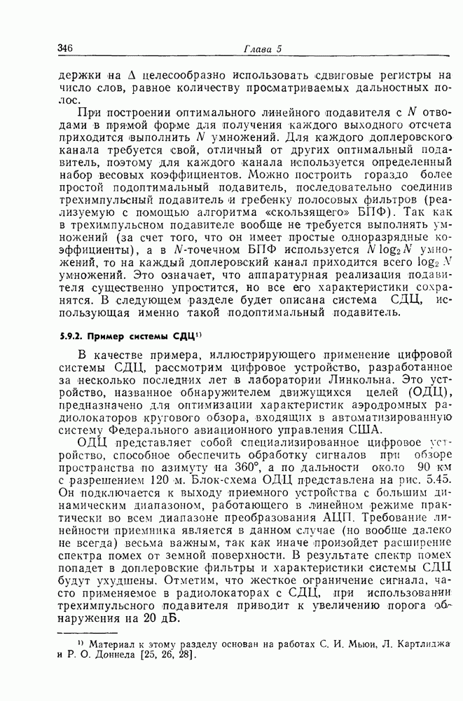 Если рассмотреть типовые характеристики РСА, то можно убедиться, что предъявляемые требования исключительно высоки. При Требование к быстродействию можно снизить, если использовать алгоритм высокоскоростной свертки с применением БПФ и распараллеливание операций, но даже при этом необходимая скорость вычислений остается все еще слишком высокой. Более того, объем памяти на самом деле требуется увеличить, так как необходимо промежуточное накопление данных. При работе РСА в телескопическом режиме применение алгоритма БПФ создает дополнительные возможности сокращения требуемого быстродействия и практической реализации устройства обработки сигналов РСА.