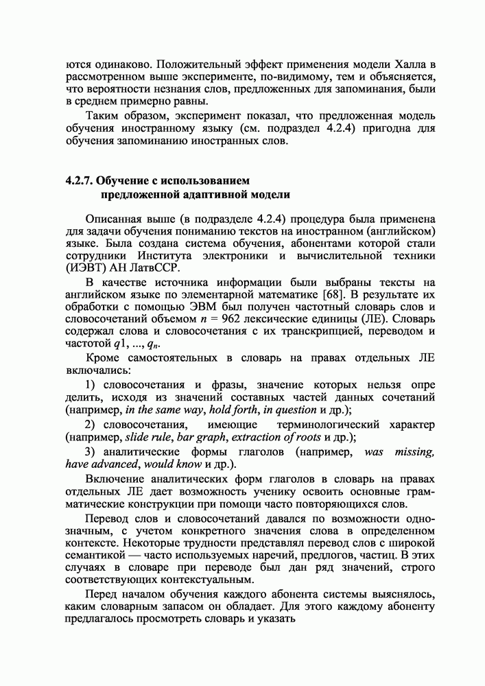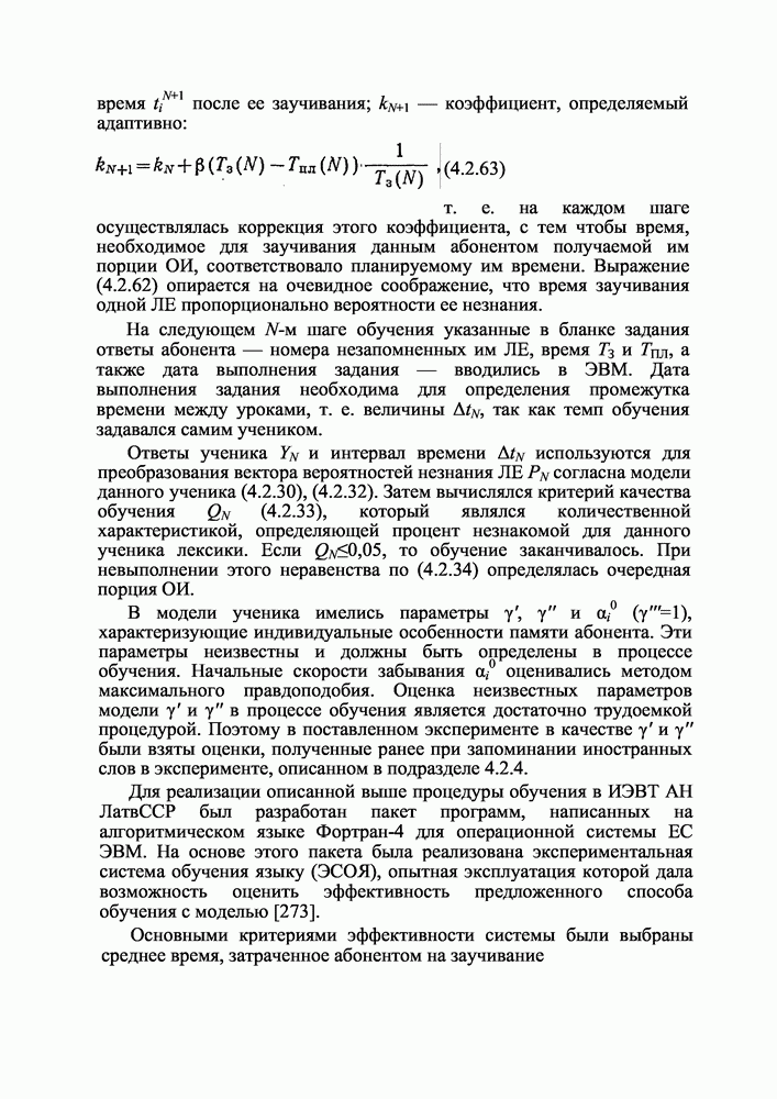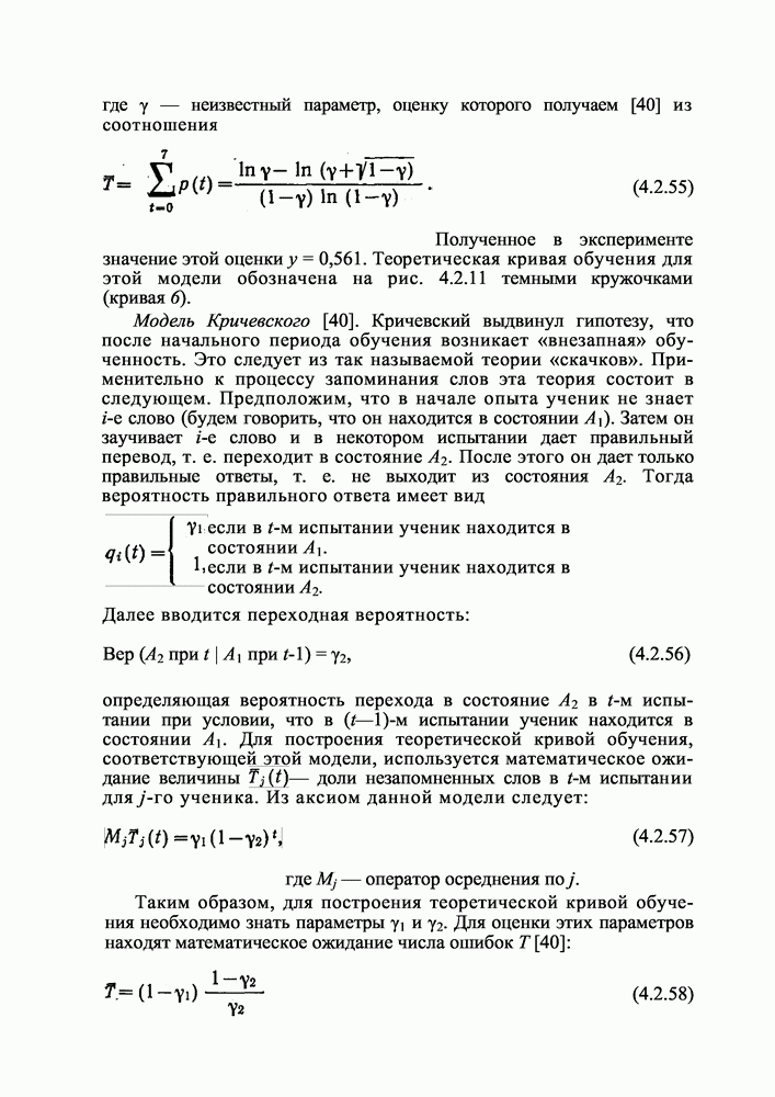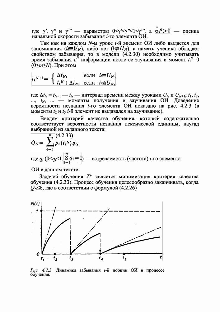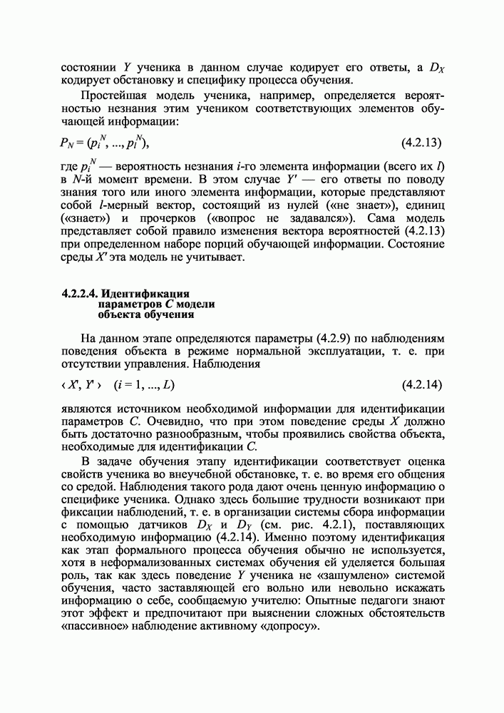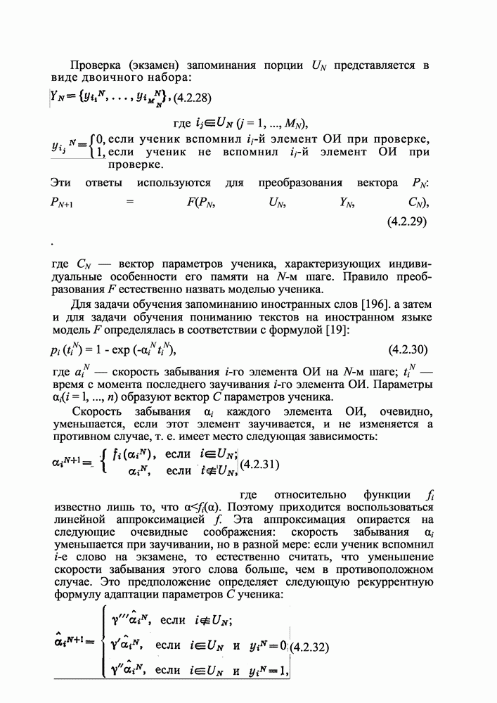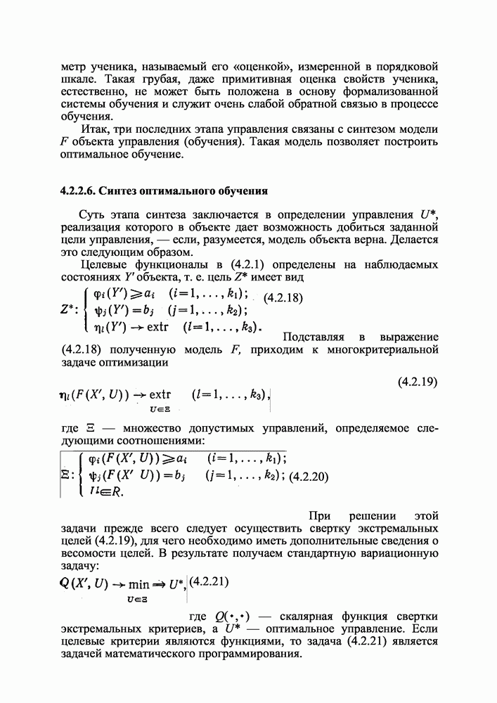 параметр ученика, называемый его «оценкой», измеренной в порядковой шкале. Такая грубая, даже примитивная оценка свойств ученика, естественно, не может быть положена в основу формализованной системы обучения и служит очень слабой обратной связью в процессе обучения.