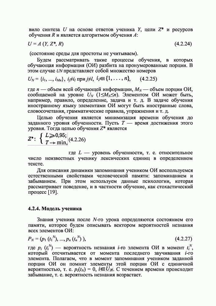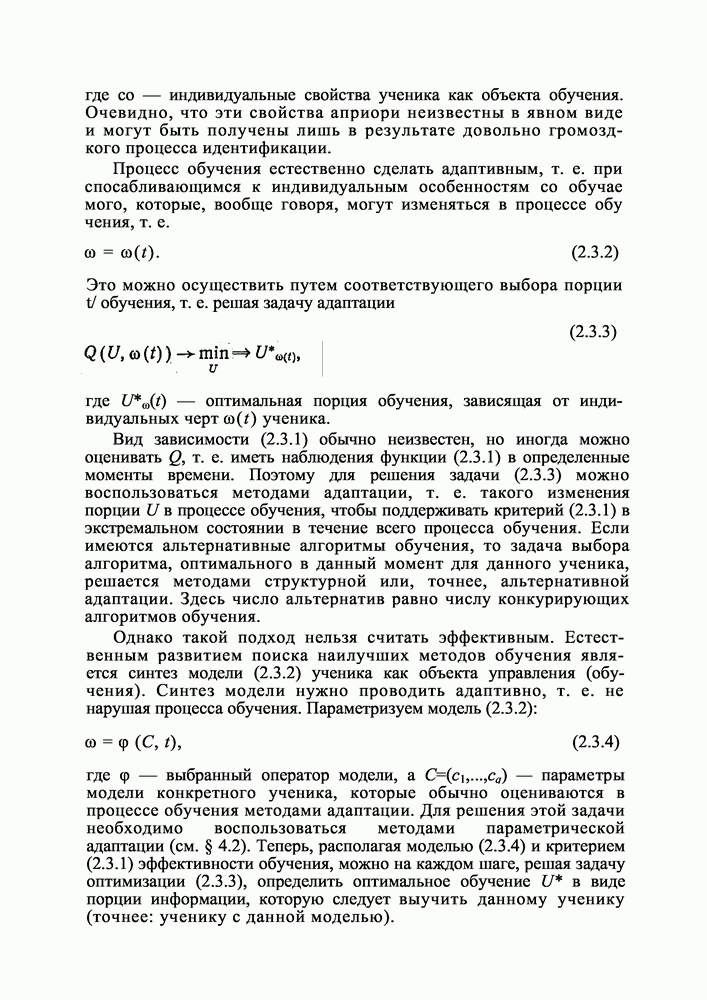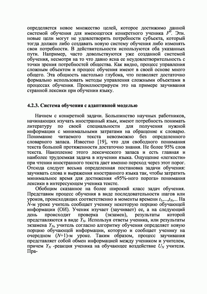 объекта управления (обучения). Такая модель позволяет построить оптимальное обучение.