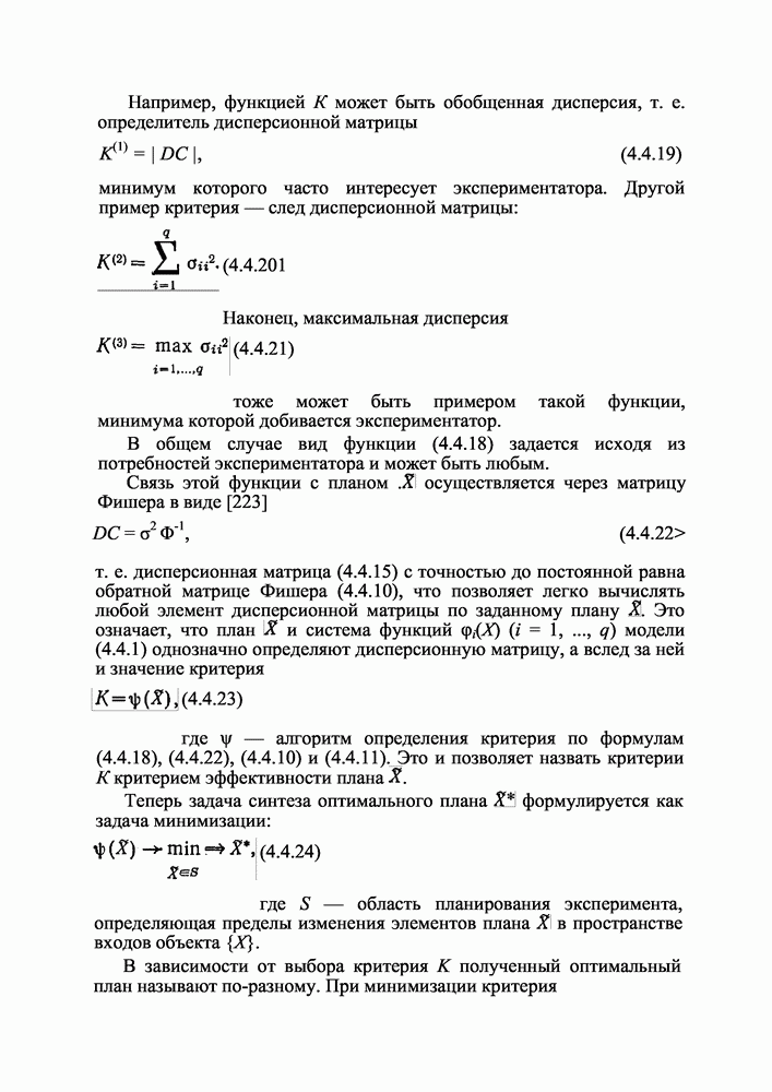 Например, при минимизации объема эллипсоида, образованного рассеянием ошибок параметров С, имеет место так называемый
