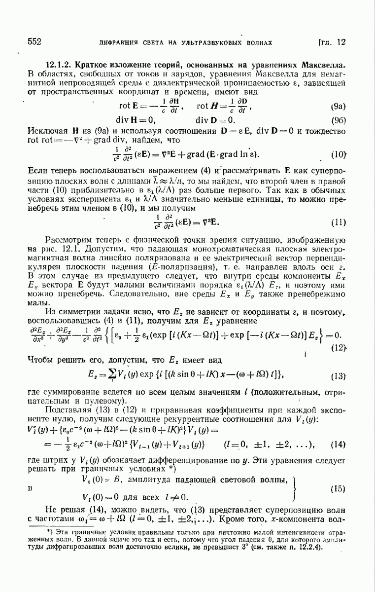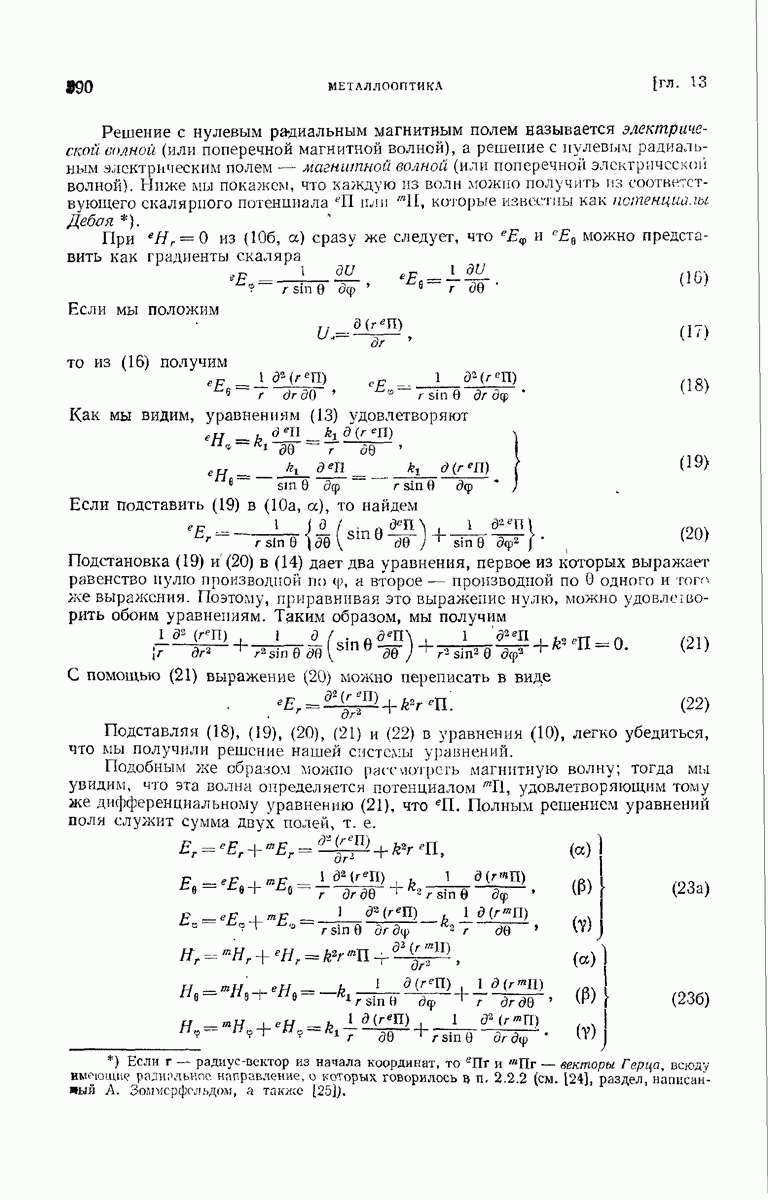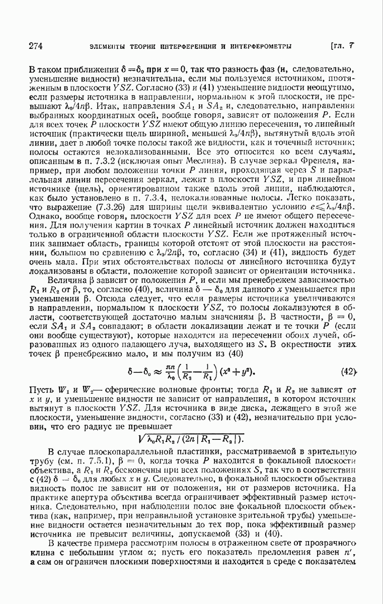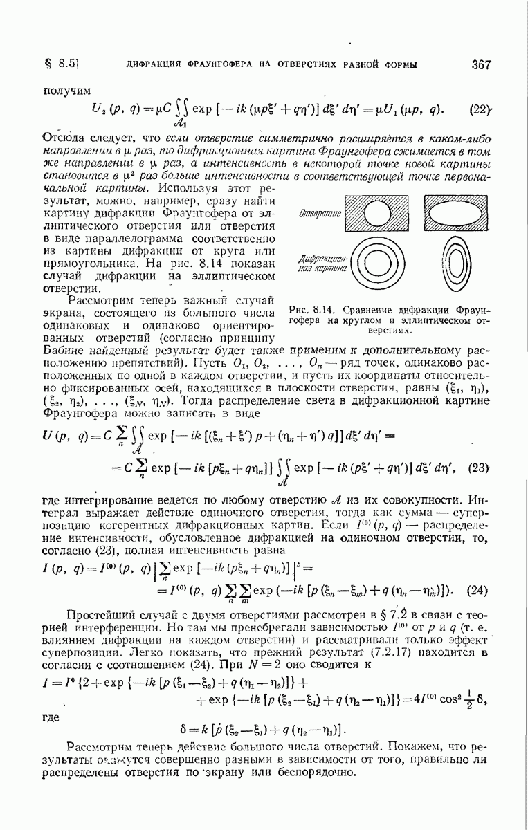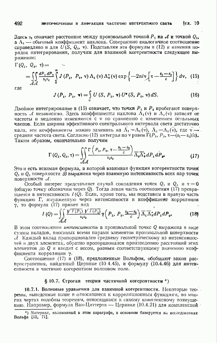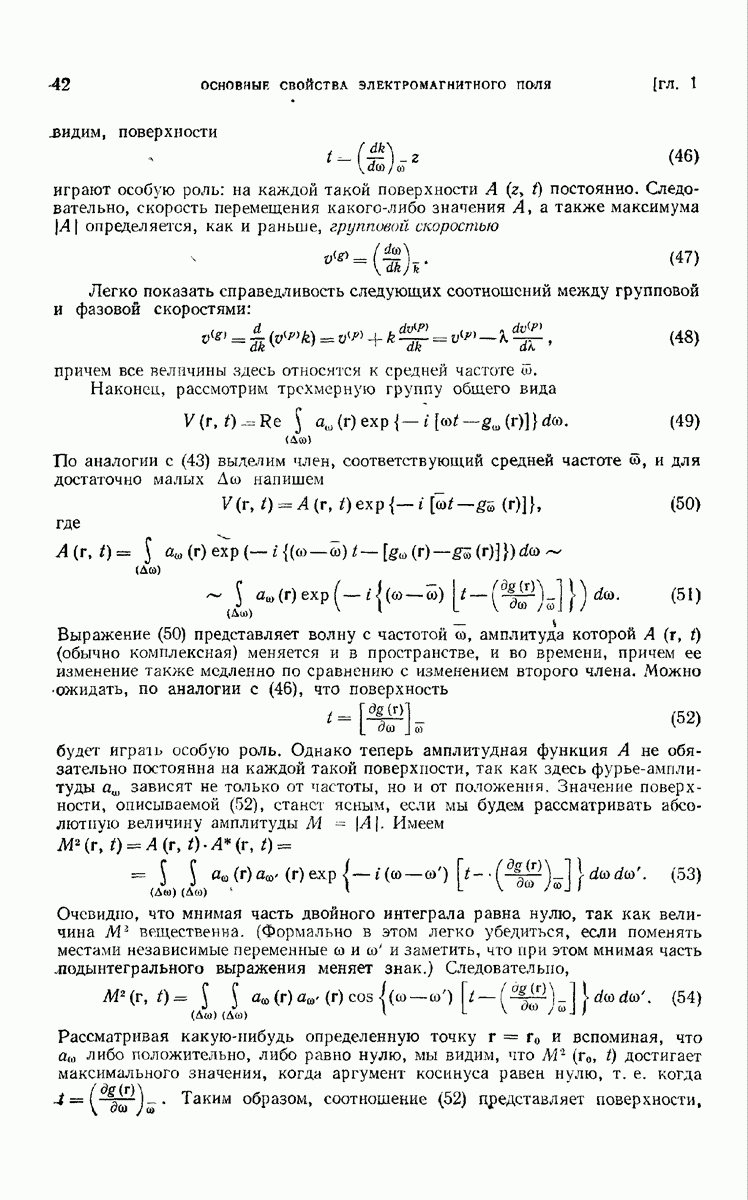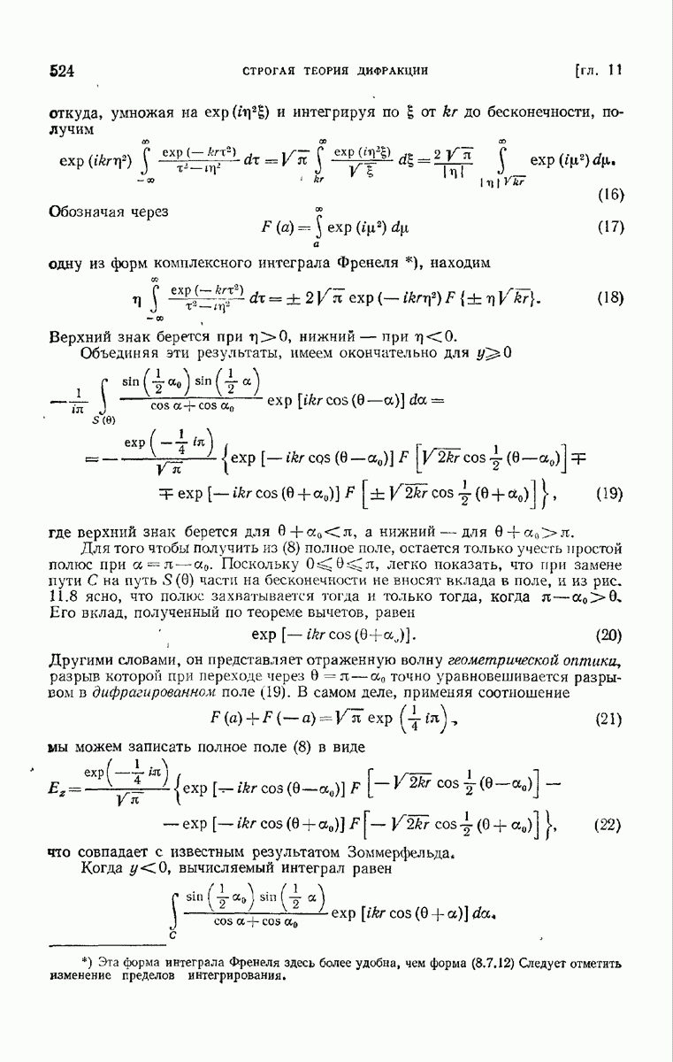 а именно тем, что она удовлетворяет однородному скалярному волновому уравнению. Следовательно, эта теорема и заключения предыдущей главы применимы к каждой декартовой компоненте векторов поля, векторного потенциала, векторов Герца и т. д. в областях, где не существует ни токов, ни зарядов. Для того чтобы полностью описать поле, теорему Кирхгофа следует применять отдельно к каждой декартовой компоненте. Однако в силу удачного стечения обстоятельств в большинстве оптических задач вполне достаточно приближенного описания поля одной комплексной скалярной волновой функцией.