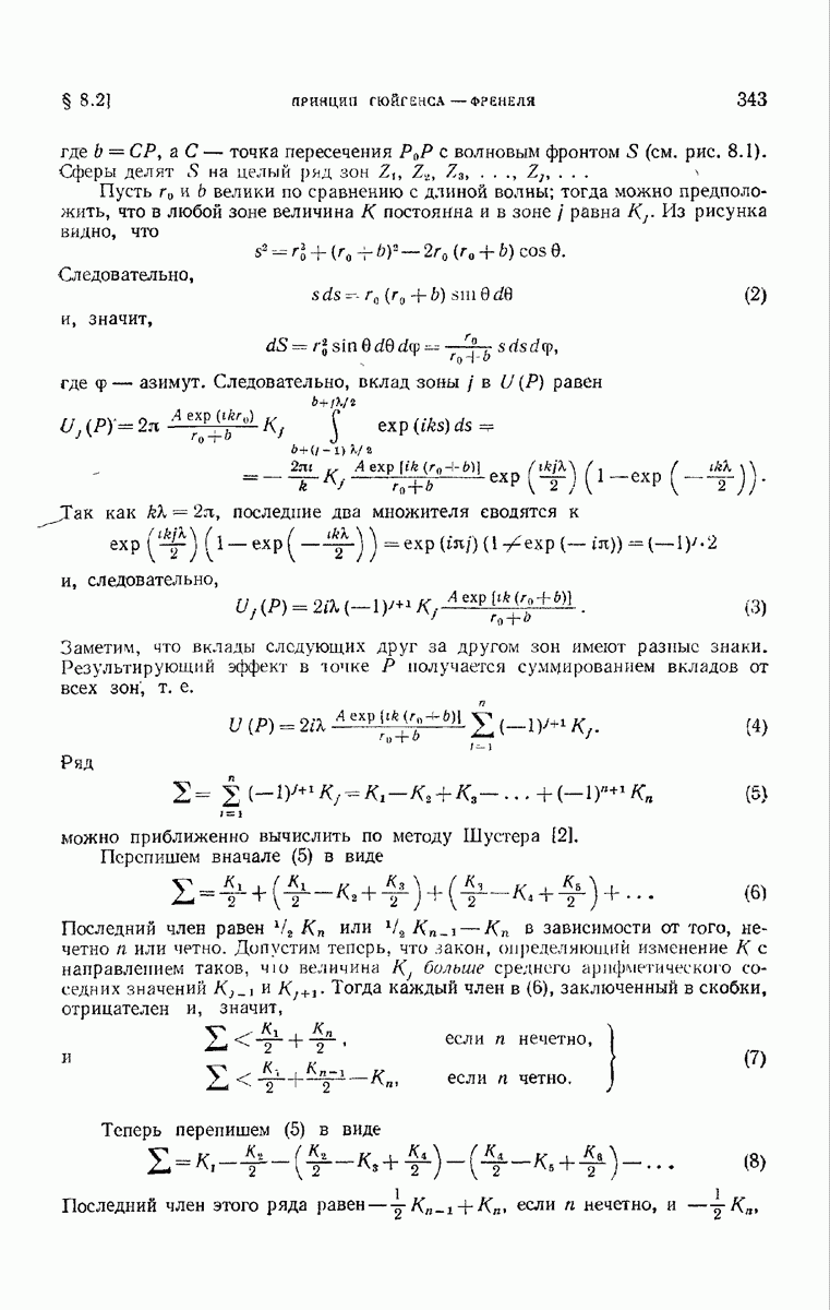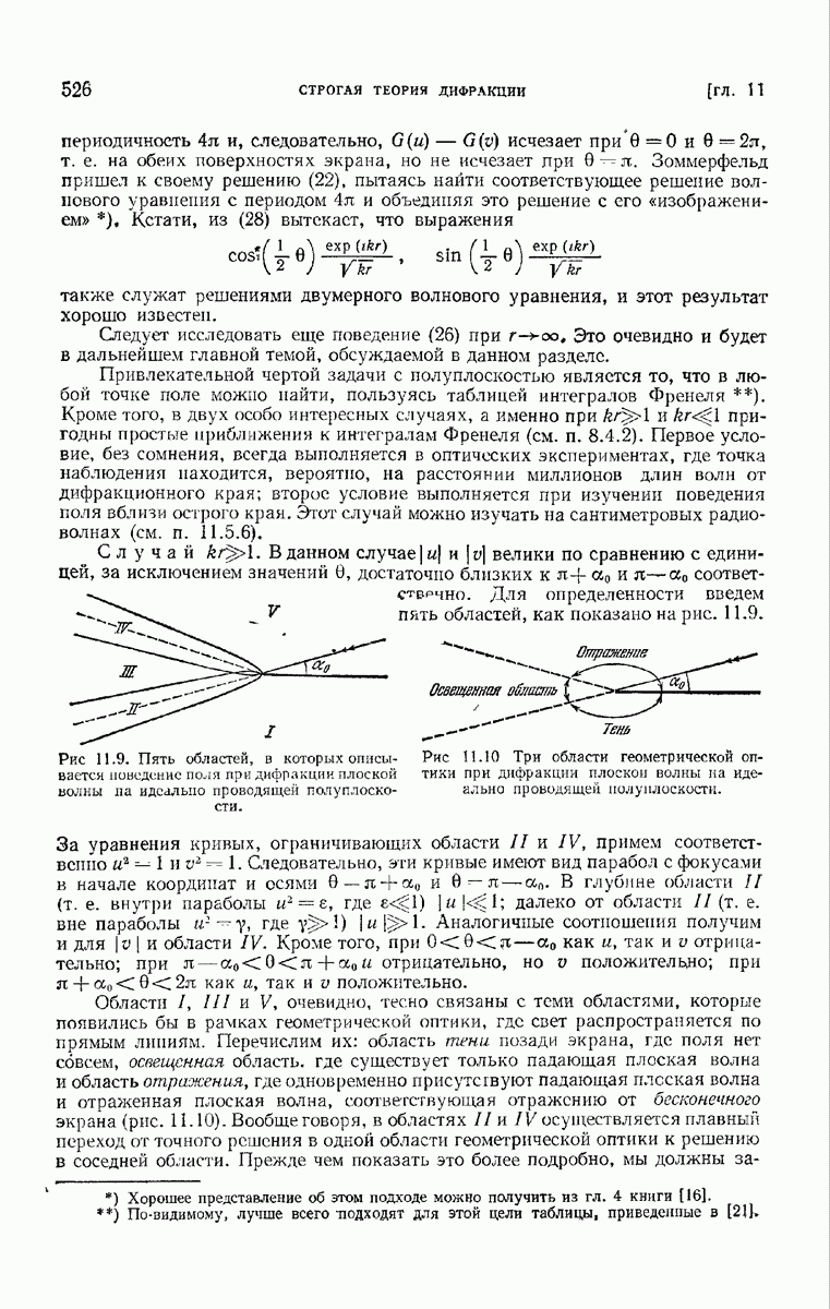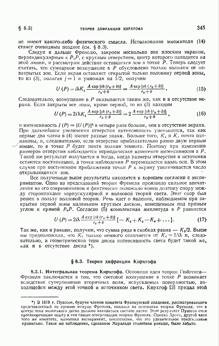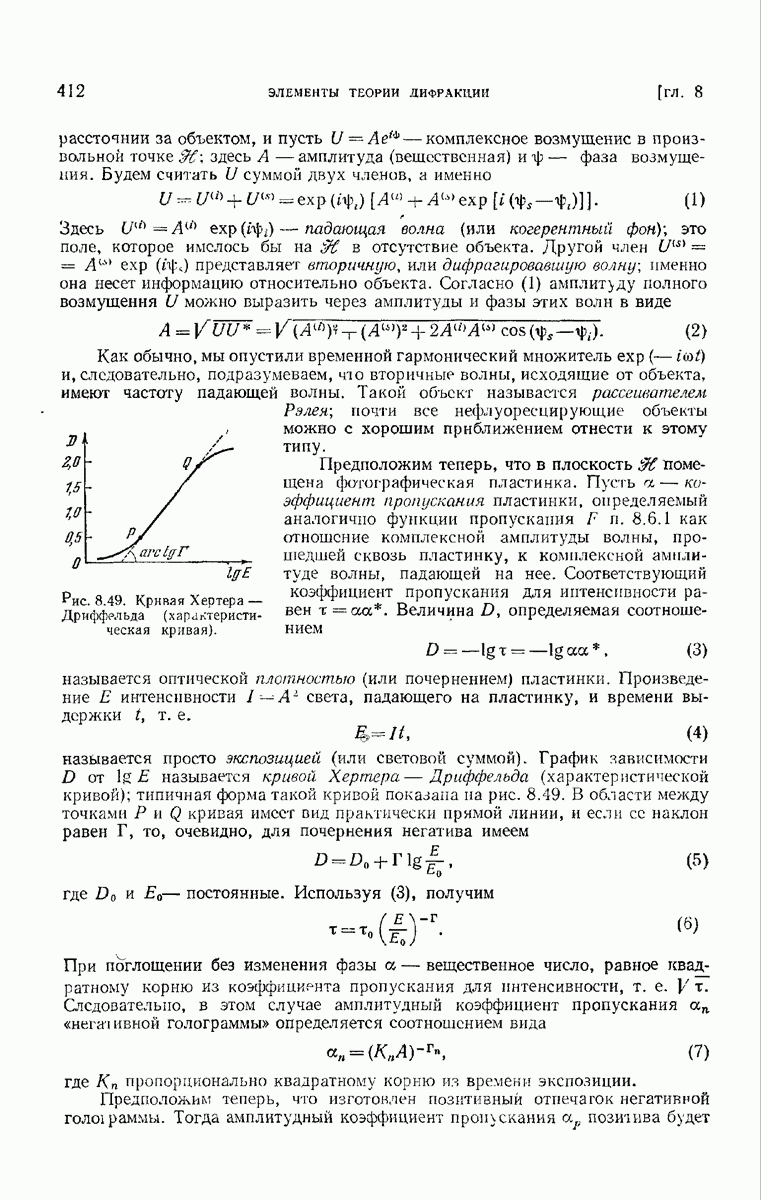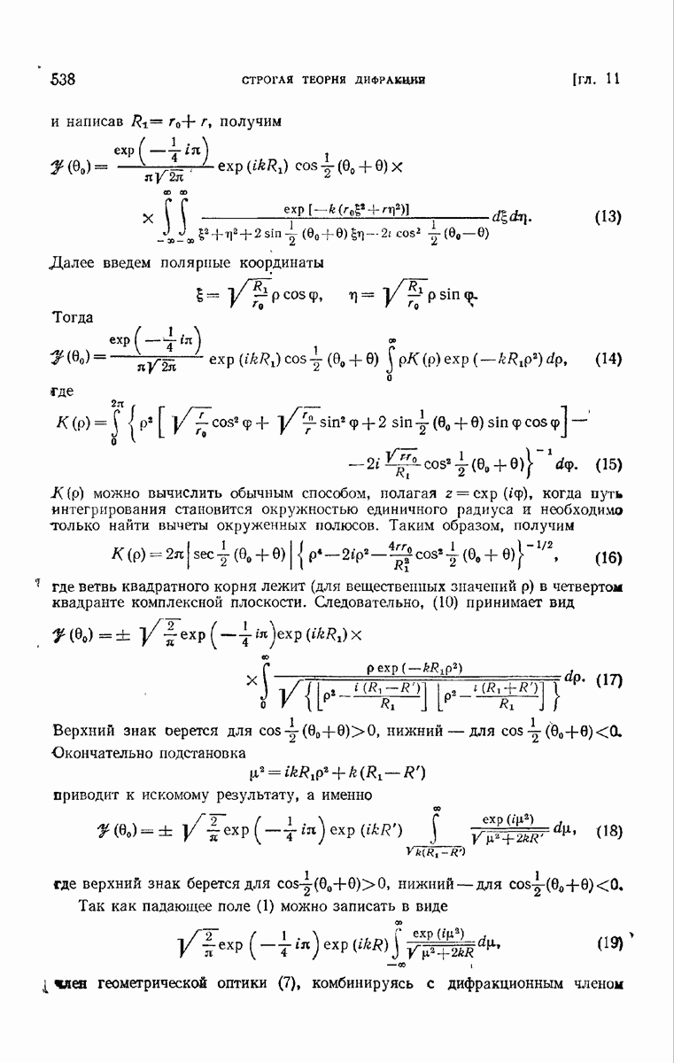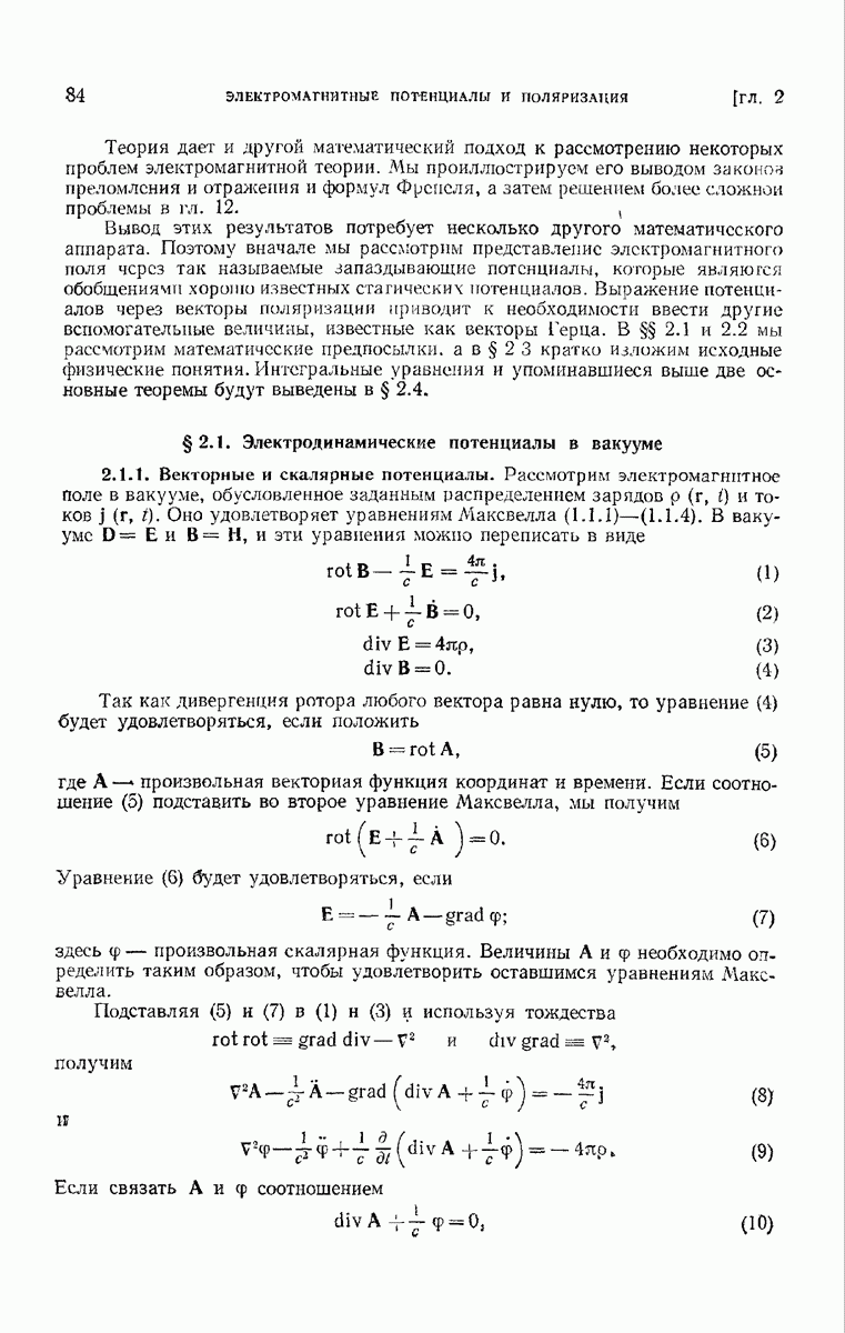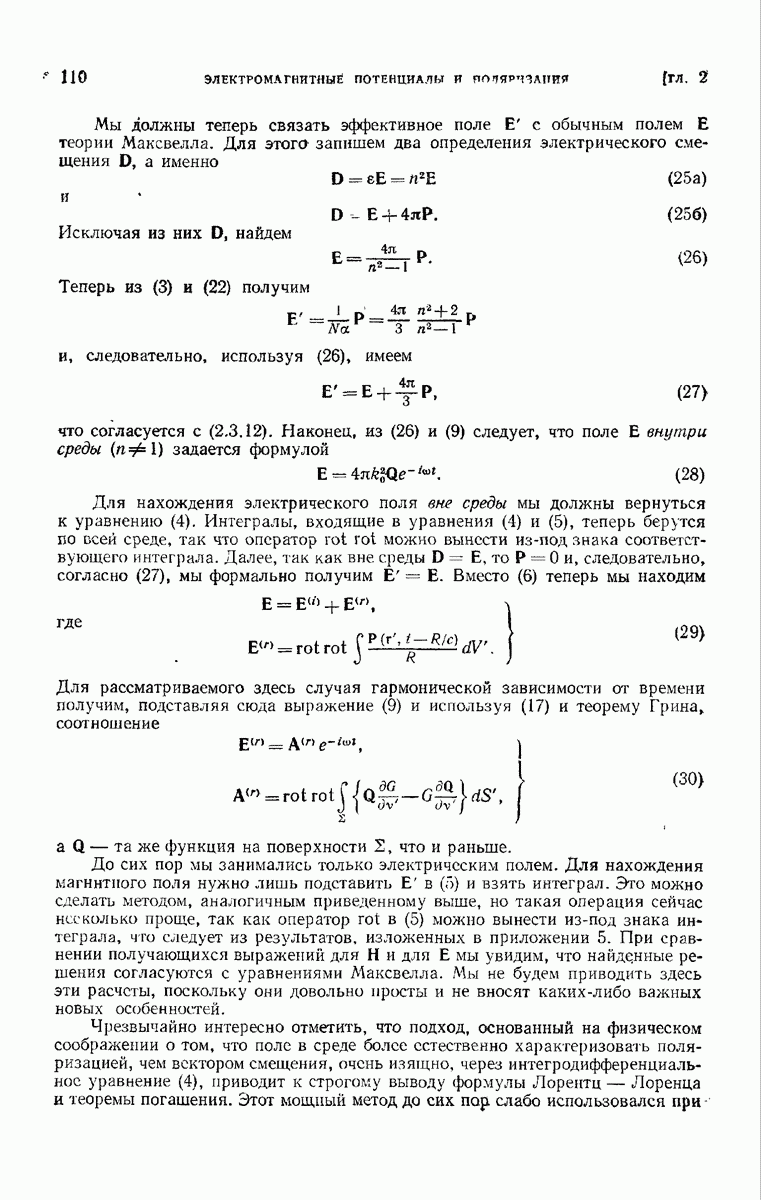 а именно тем, что она удовлетворяет однородному скалярному волновому уравнению. Следовательно, эта теорема и заключения предыдущей главы применимы к каждой декартовой компоненте векторов поля, векторного потенциала, векторов Герца и т. д. в областях, где не существует ни токов, ни зарядов. Для того чтобы полностью описать поле, теорему Кирхгофа следует применять отдельно к каждой декартовой компоненте. Однако в силу удачного стечения обстоятельств в большинстве оптических задач вполне достаточно приближенного описания поля одной комплексной скалярной волновой функцией.