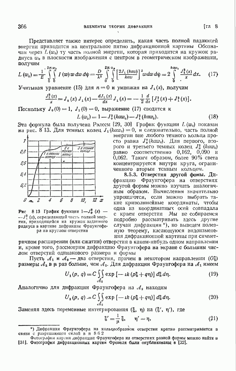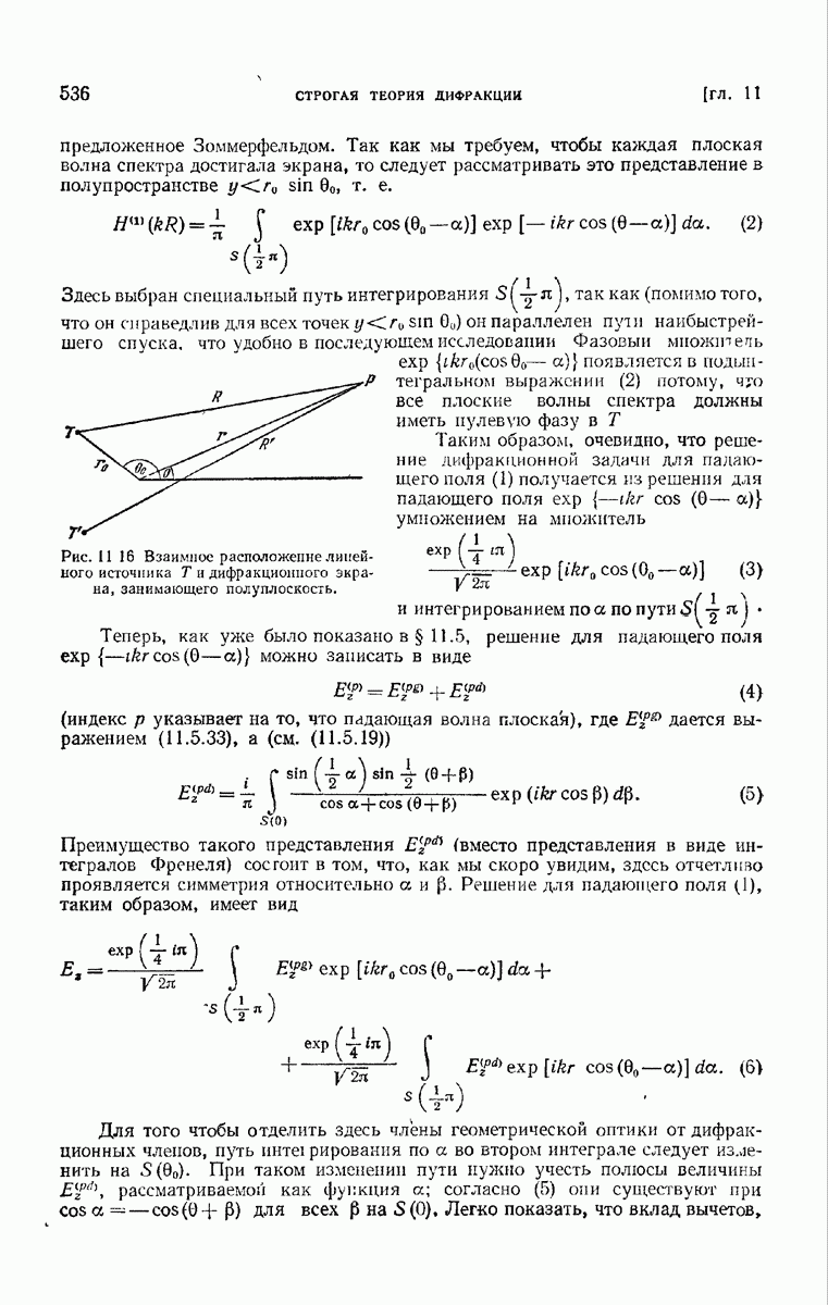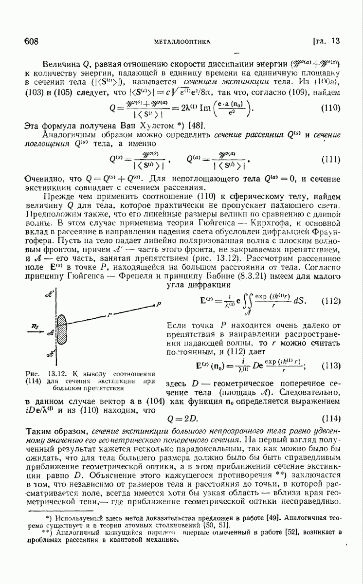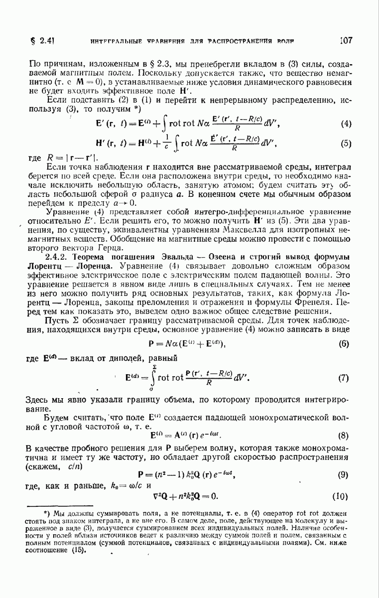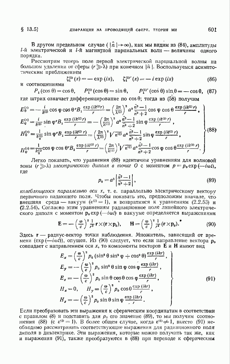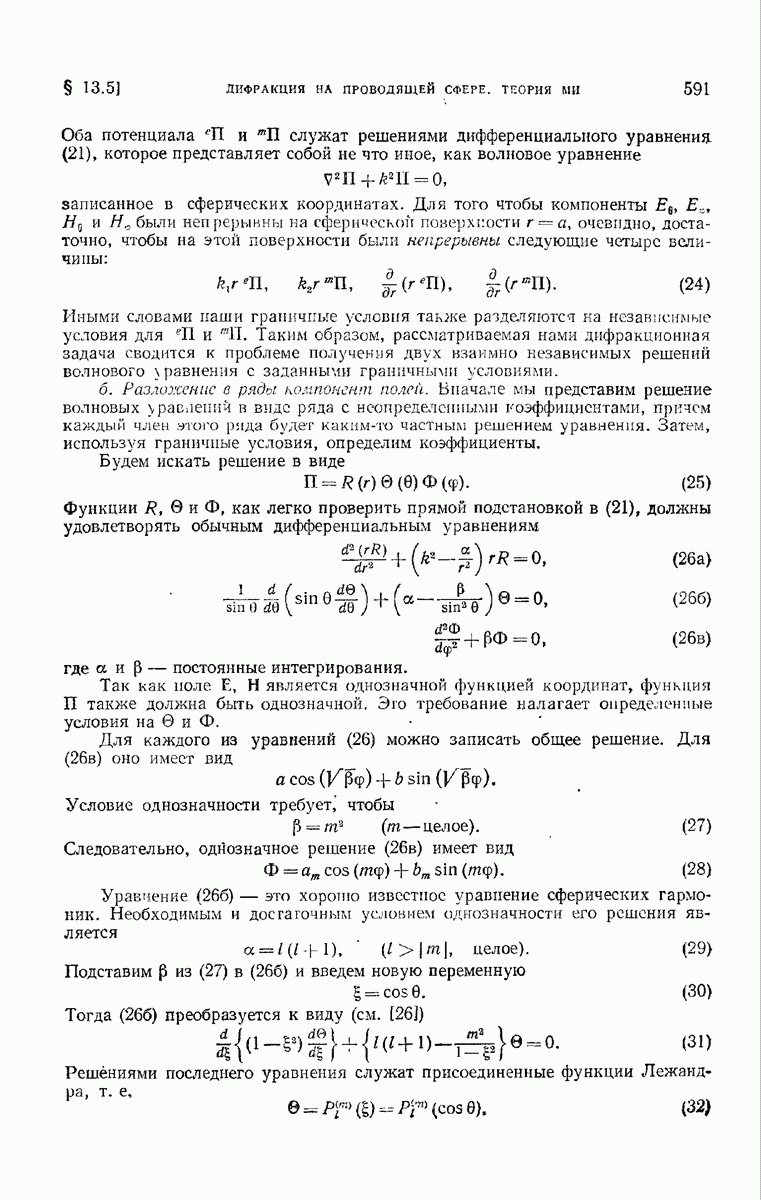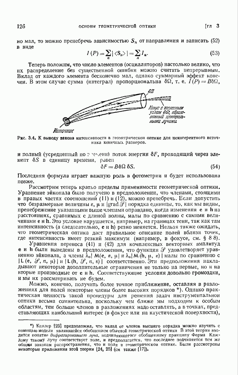 а именно тем, что она удовлетворяет однородному скалярному волновому уравнению. Следовательно, эта теорема и заключения предыдущей главы применимы к каждой декартовой компоненте векторов поля, векторного потенциала, векторов Герца и т. д. в областях, где не существует ни токов, ни зарядов. Для того чтобы полностью описать поле, теорему Кирхгофа следует применять отдельно к каждой декартовой компоненте. Однако в силу удачного стечения обстоятельств в большинстве оптических задач вполне достаточно приближенного описания поля одной комплексной скалярной волновой функцией.
