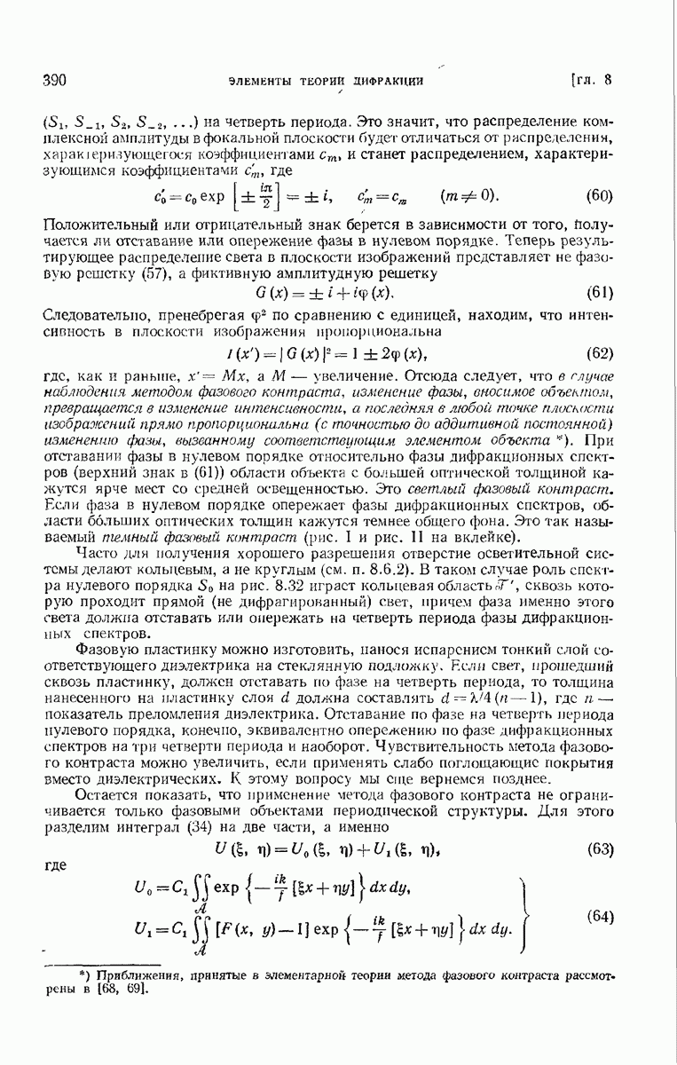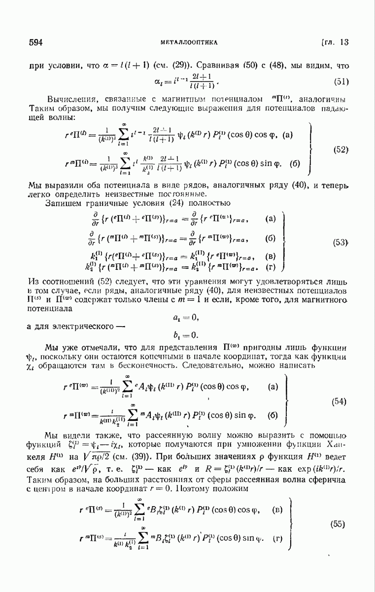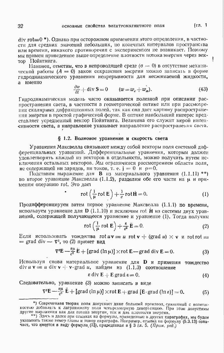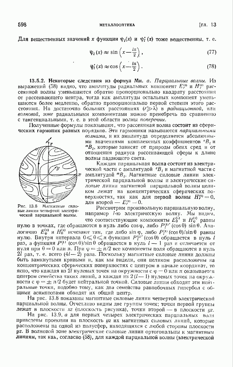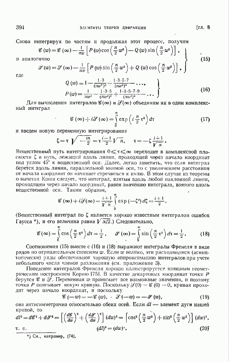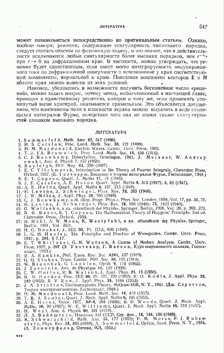 а именно тем, что она удовлетворяет однородному скалярному волновому уравнению. Следовательно, эта теорема и заключения предыдущей главы применимы к каждой декартовой компоненте векторов поля, векторного потенциала, векторов Герца и т. д. в областях, где не существует ни токов, ни зарядов. Для того чтобы полностью описать поле, теорему Кирхгофа следует применять отдельно к каждой декартовой компоненте. Однако в силу удачного стечения обстоятельств в большинстве оптических задач вполне достаточно приближенного описания поля одной комплексной скалярной волновой функцией.