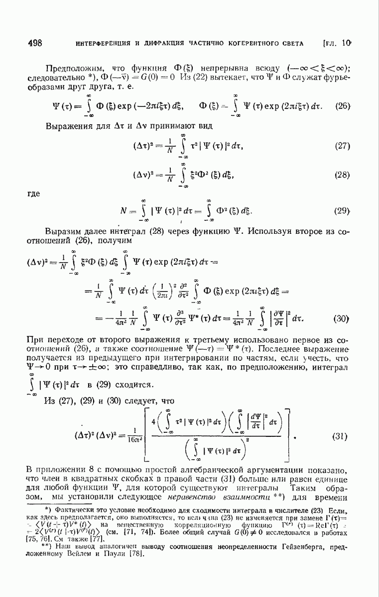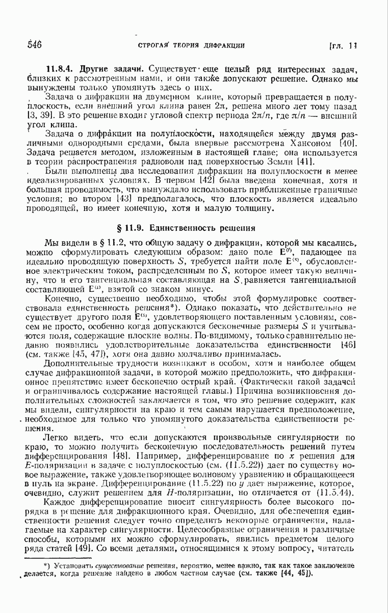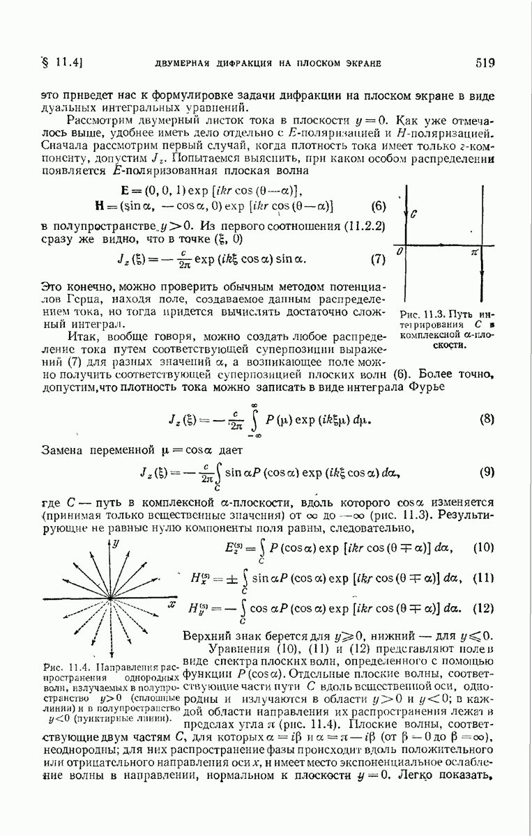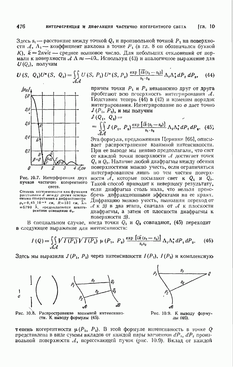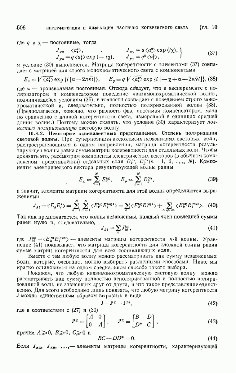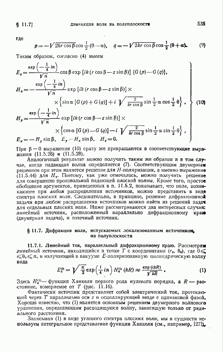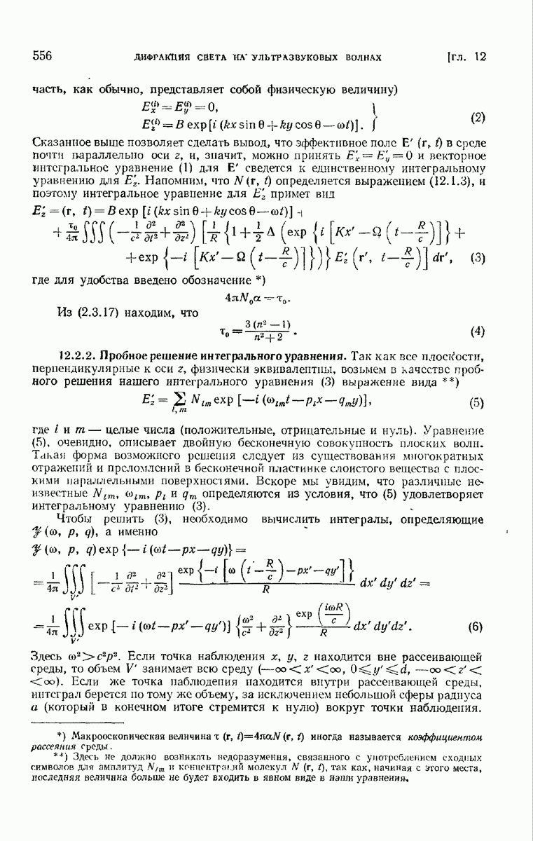 а именно тем, что она удовлетворяет однородному скалярному волновому уравнению. Следовательно, эта теорема и заключения предыдущей главы применимы к каждой декартовой компоненте векторов поля, векторного потенциала, векторов Герца и т. д. в областях, где не существует ни токов, ни зарядов. Для того чтобы полностью описать поле, теорему Кирхгофа следует применять отдельно к каждой декартовой компоненте. Однако в силу удачного стечения обстоятельств в большинстве оптических задач вполне достаточно приближенного описания поля одной комплексной скалярной волновой функцией.
