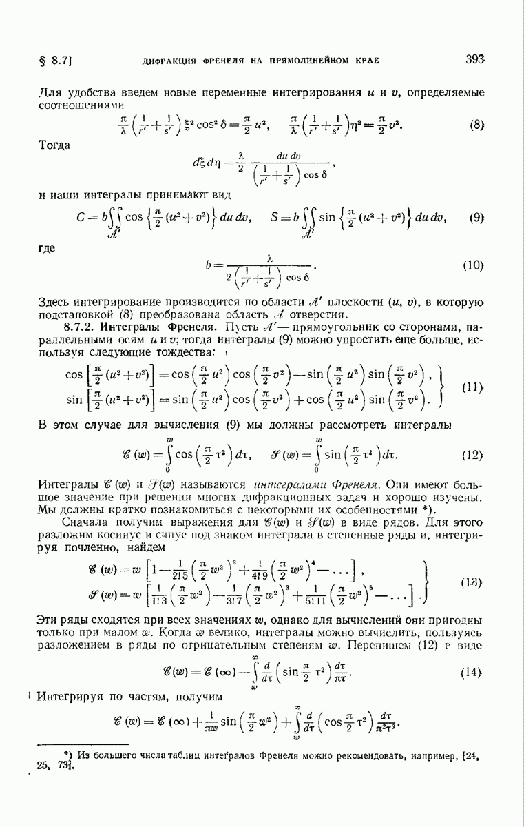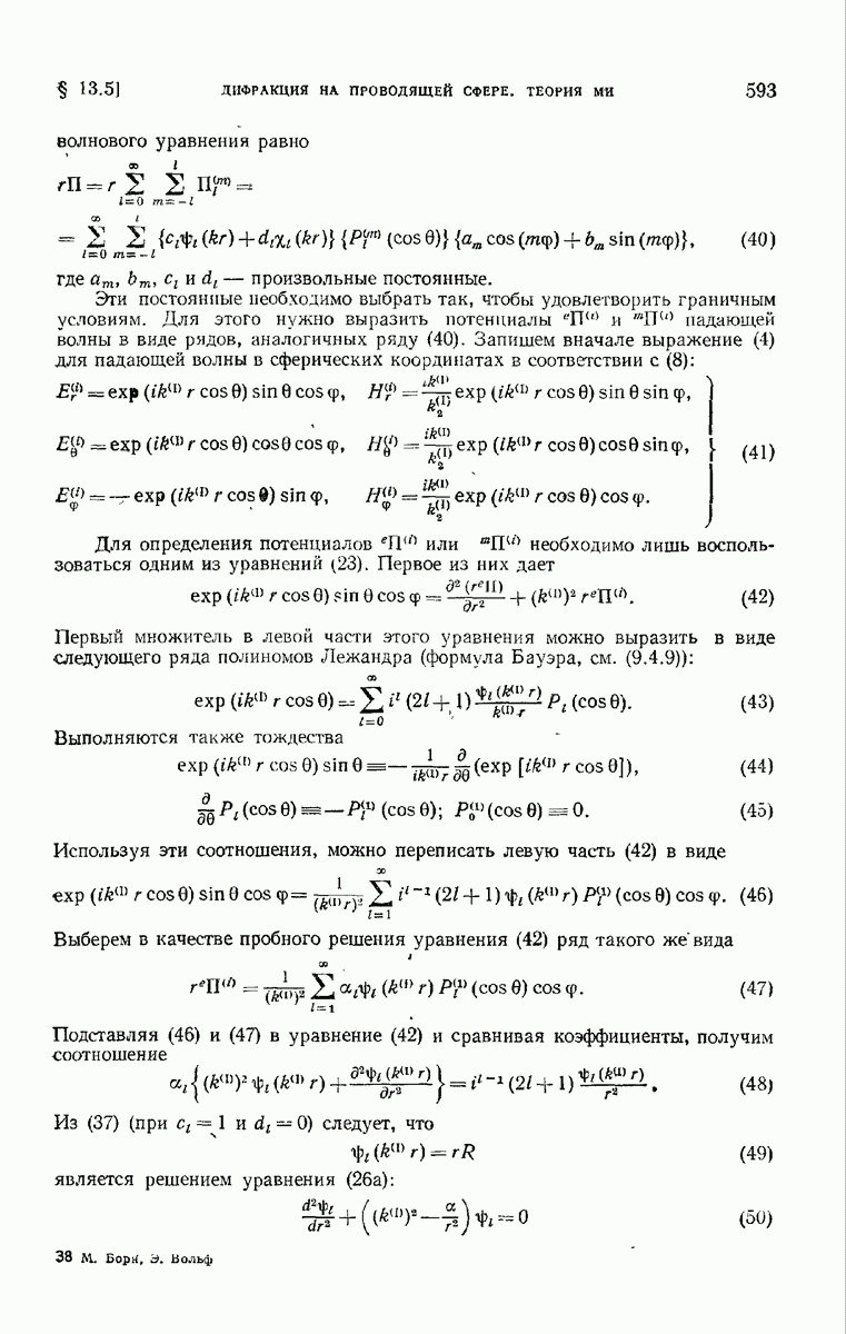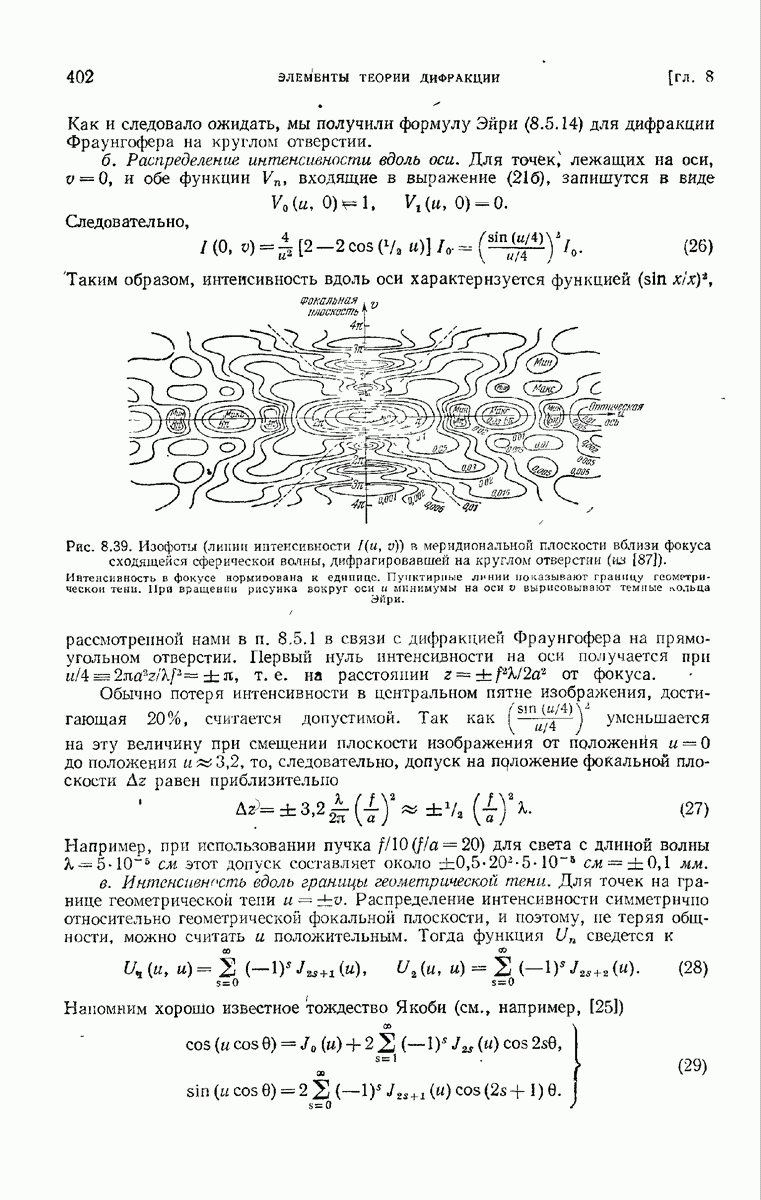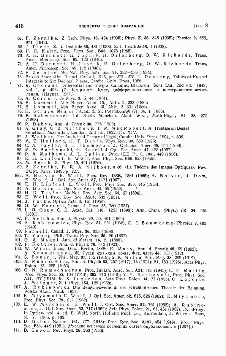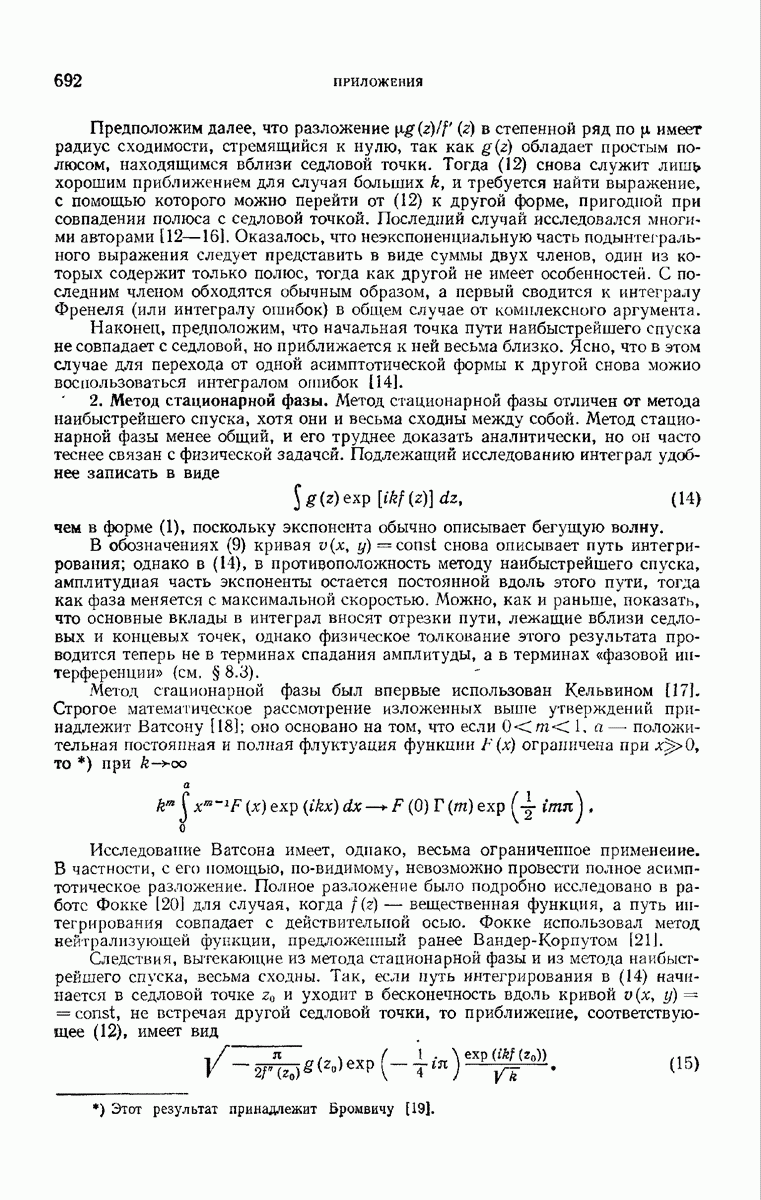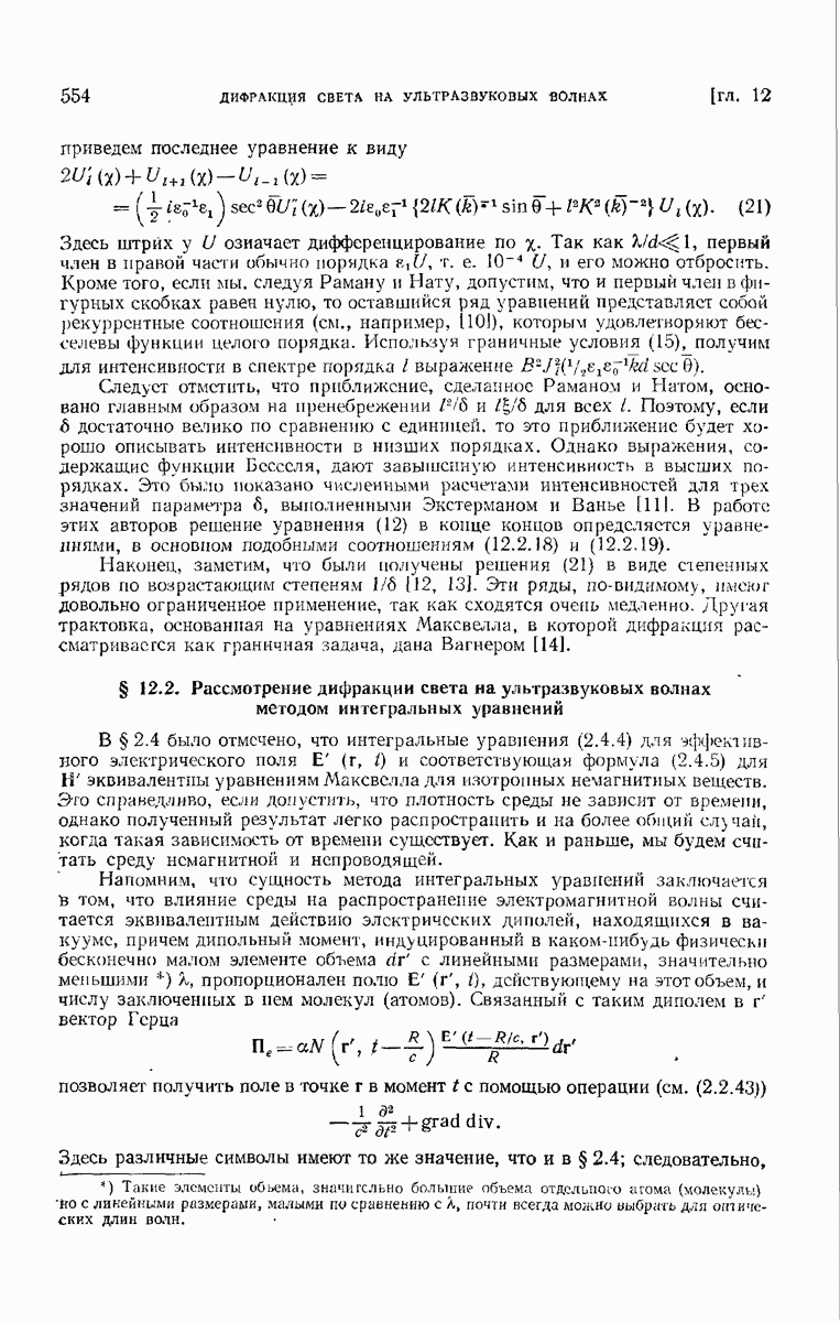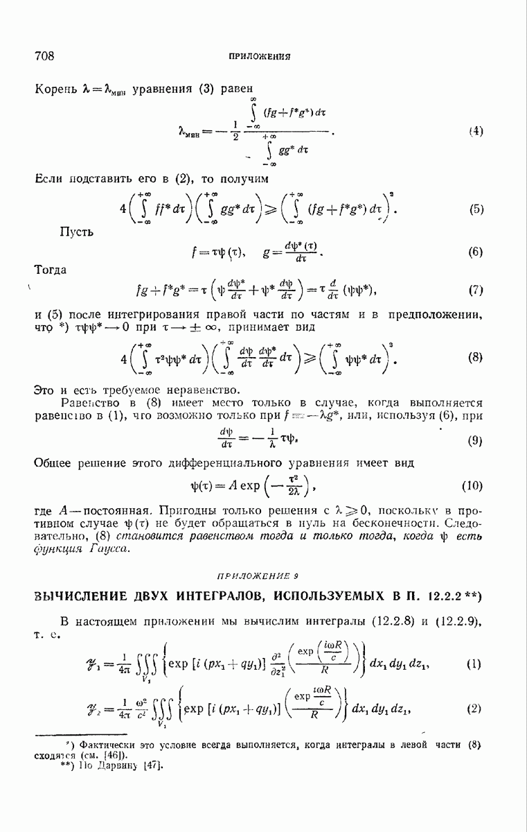 а именно тем, что она удовлетворяет однородному скалярному волновому уравнению. Следовательно, эта теорема и заключения предыдущей главы применимы к каждой декартовой компоненте векторов поля, векторного потенциала, векторов Герца и т. д. в областях, где не существует ни токов, ни зарядов. Для того чтобы полностью описать поле, теорему Кирхгофа следует применять отдельно к каждой декартовой компоненте. Однако в силу удачного стечения обстоятельств в большинстве оптических задач вполне достаточно приближенного описания поля одной комплексной скалярной волновой функцией.