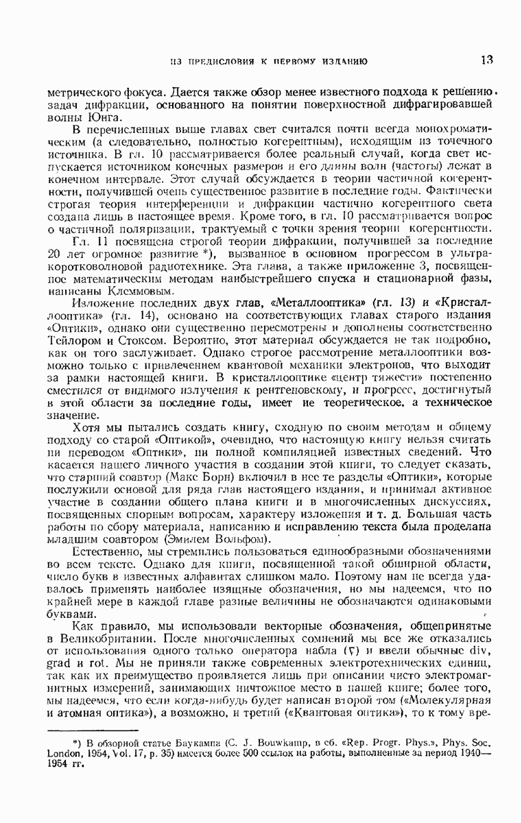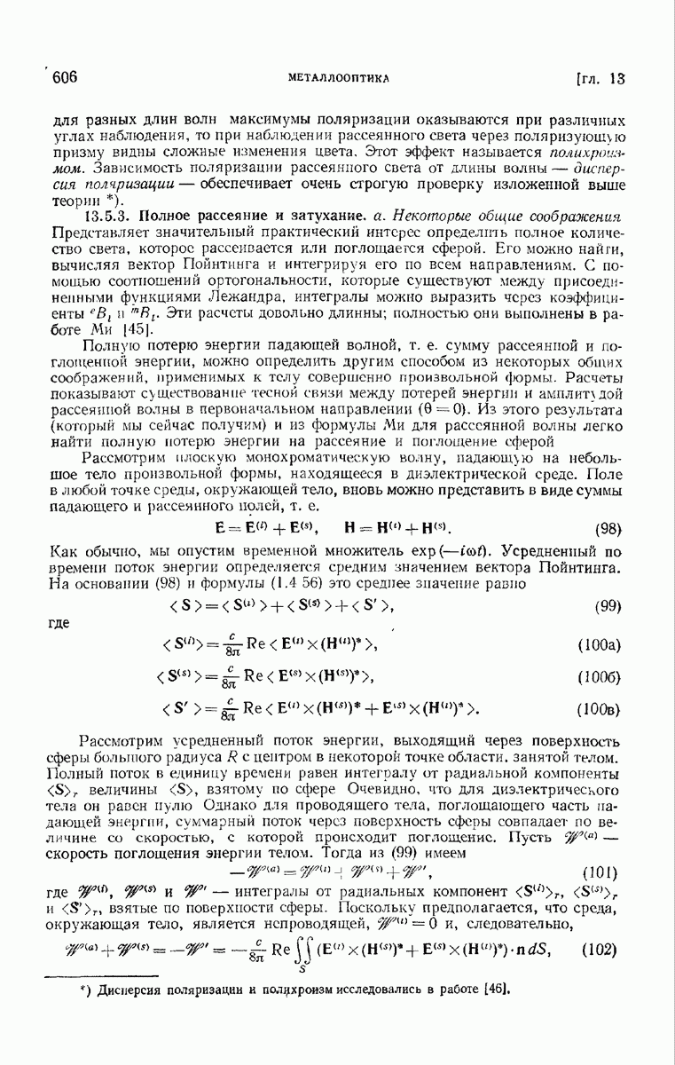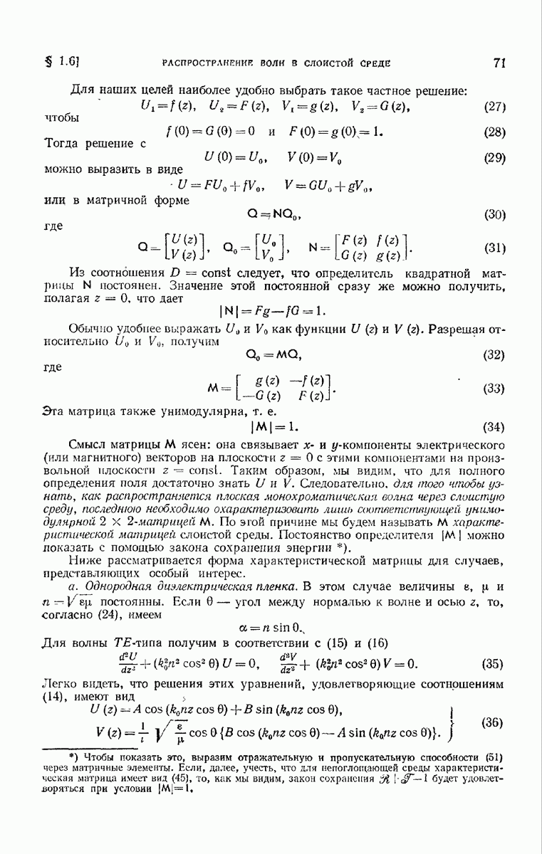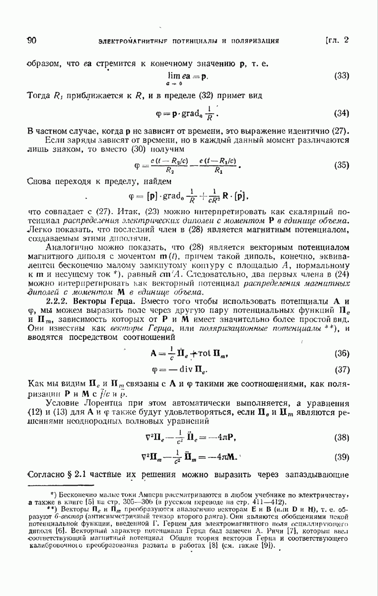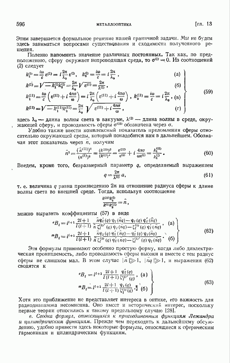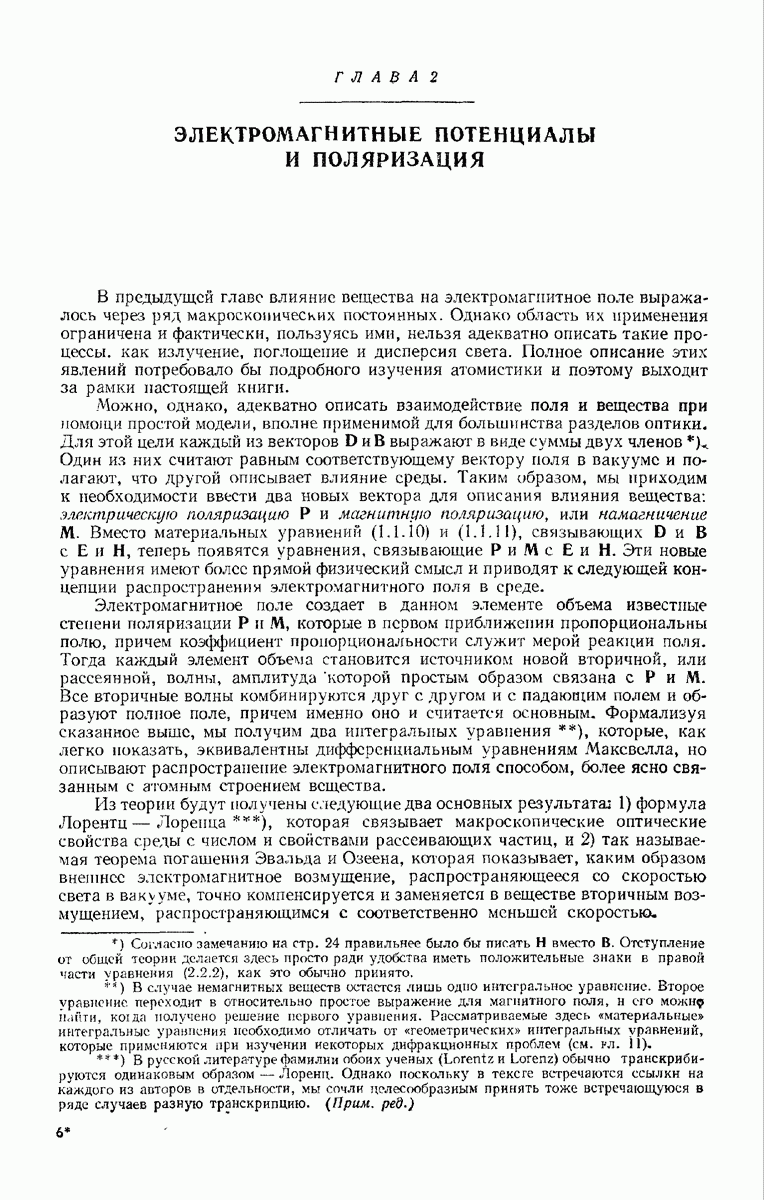 а именно тем, что она удовлетворяет однородному скалярному волновому уравнению. Следовательно, эта теорема и заключения предыдущей главы применимы к каждой декартовой компоненте векторов поля, векторного потенциала, векторов Герца и т. д. в областях, где не существует ни токов, ни зарядов. Для того чтобы полностью описать поле, теорему Кирхгофа следует применять отдельно к каждой декартовой компоненте. Однако в силу удачного стечения обстоятельств в большинстве оптических задач вполне достаточно приближенного описания поля одной комплексной скалярной волновой функцией.