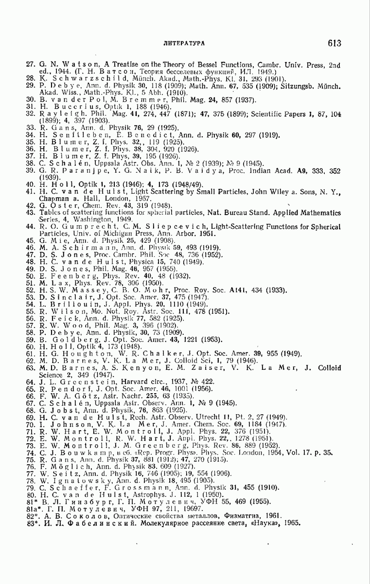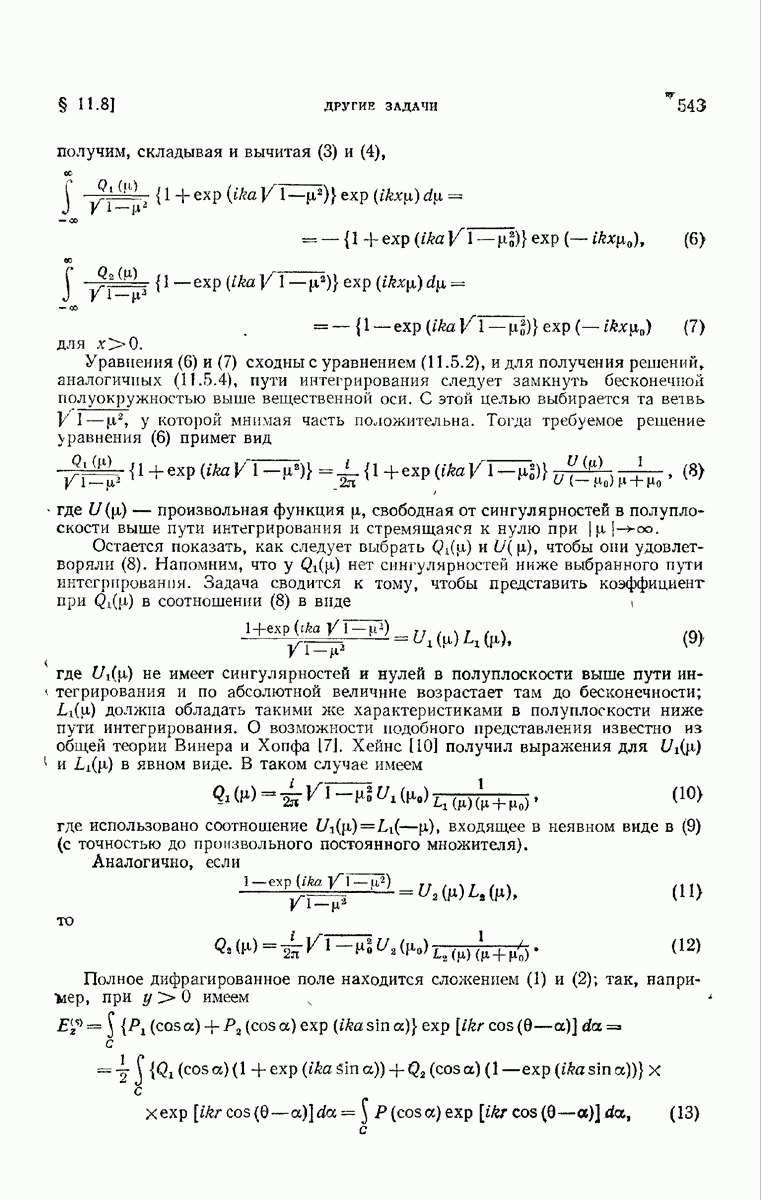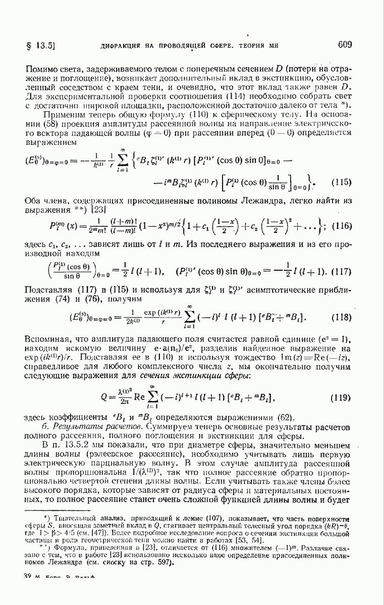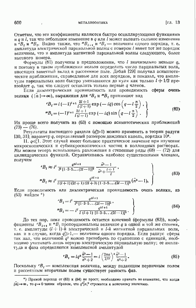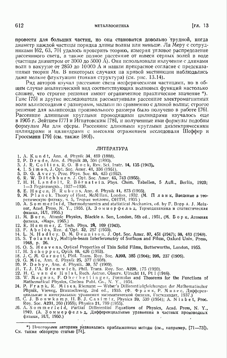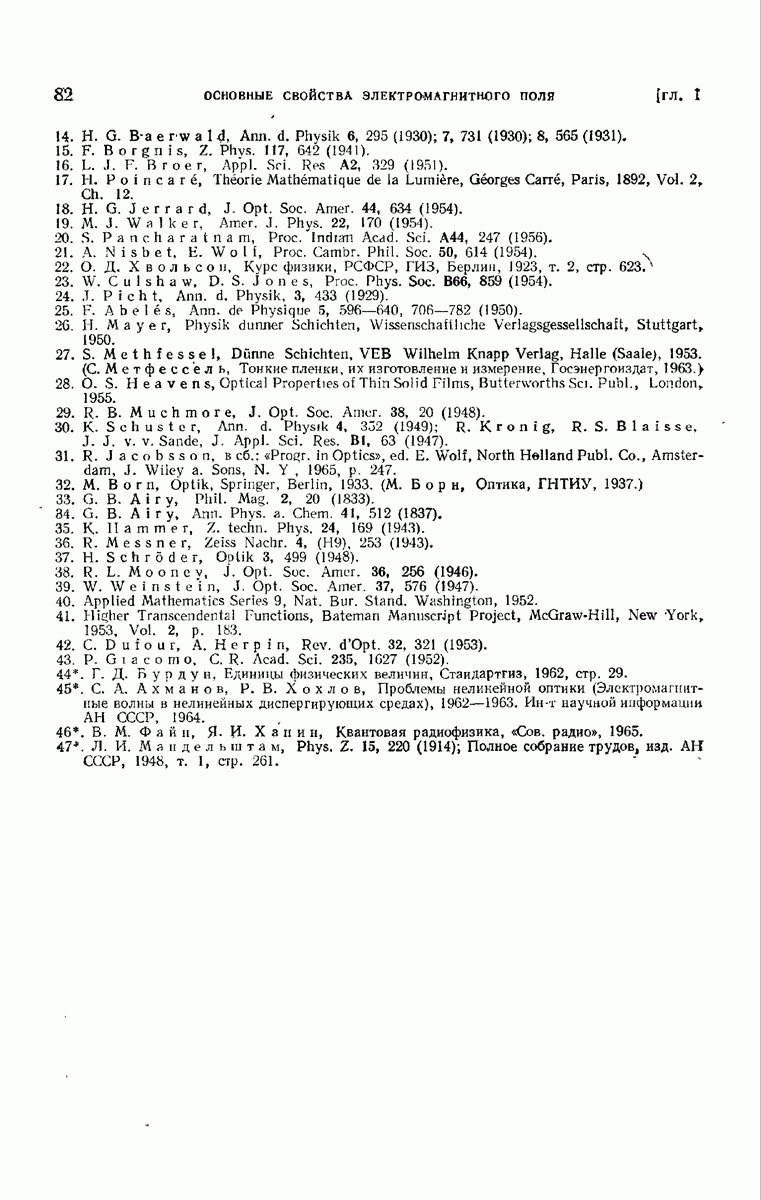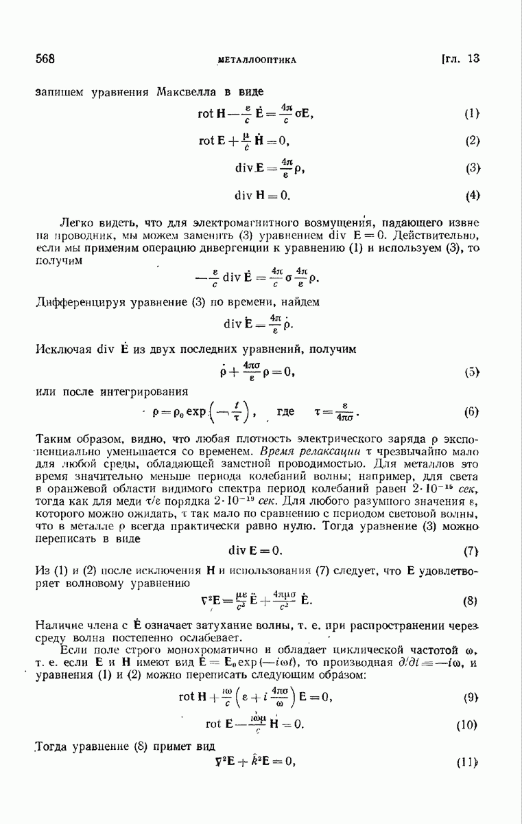 а именно тем, что она удовлетворяет однородному скалярному волновому уравнению. Следовательно, эта теорема и заключения предыдущей главы применимы к каждой декартовой компоненте векторов поля, векторного потенциала, векторов Герца и т. д. в областях, где не существует ни токов, ни зарядов. Для того чтобы полностью описать поле, теорему Кирхгофа следует применять отдельно к каждой декартовой компоненте. Однако в силу удачного стечения обстоятельств в большинстве оптических задач вполне достаточно приближенного описания поля одной комплексной скалярной волновой функцией.