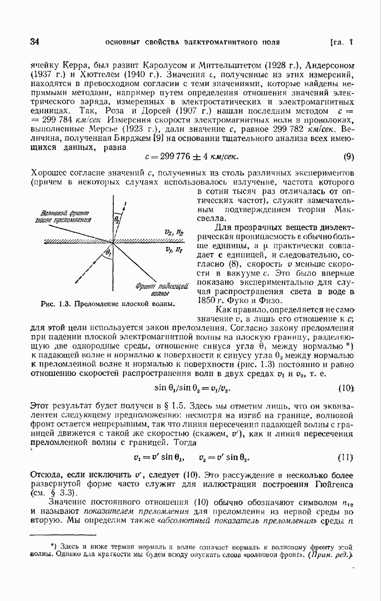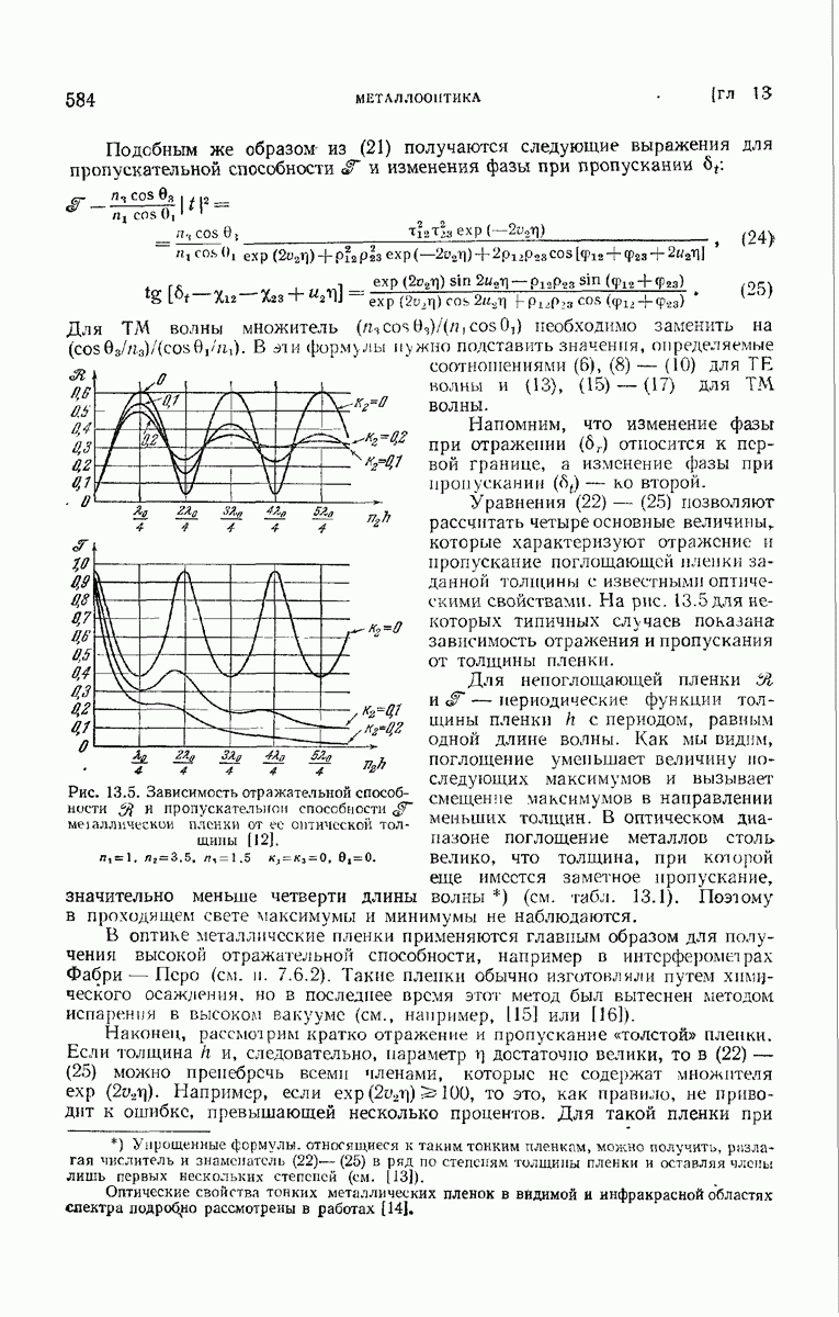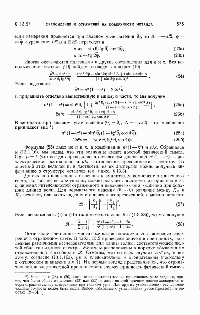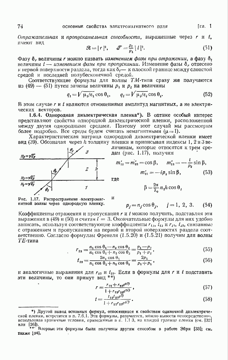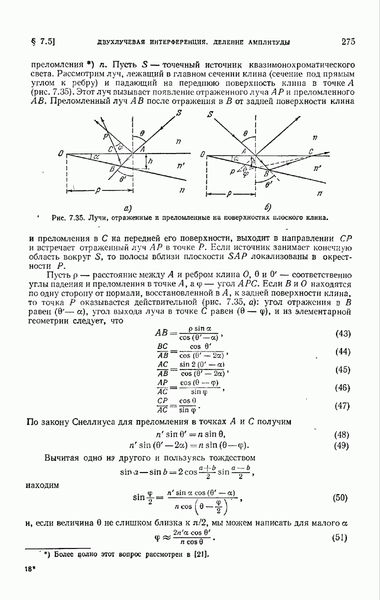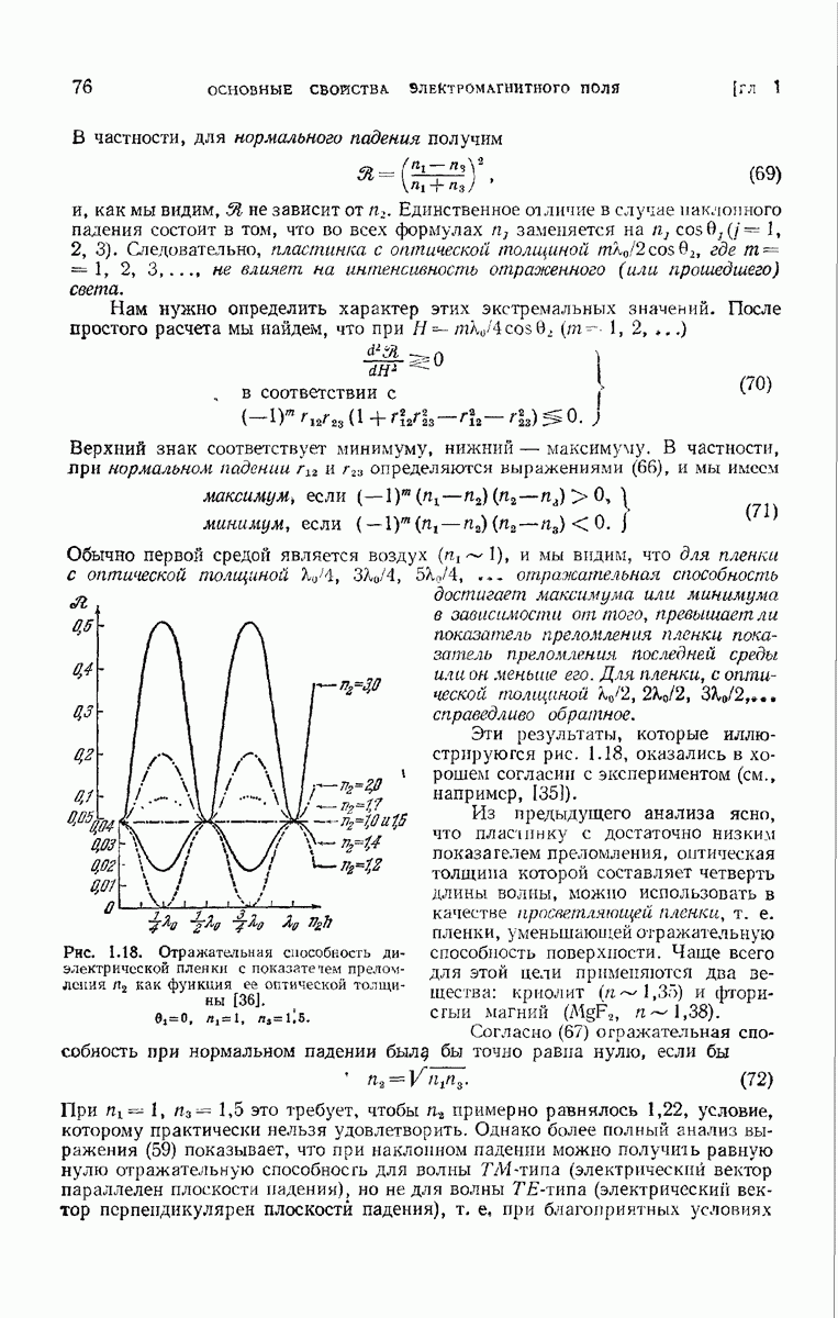 Первая поверхность оказывает на падающее поле двойное действие. Во-первых, амплитуды векторов поля уменьшаются вследствие потерь при отражении и, во-вторых, изменяются направления колебаний. Формулы Френеля показывают, что оба эффекта зависят главным образом от величины утла падения. Если угол мал (около 10°), потери на отражение также малы (около