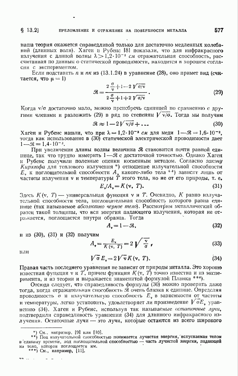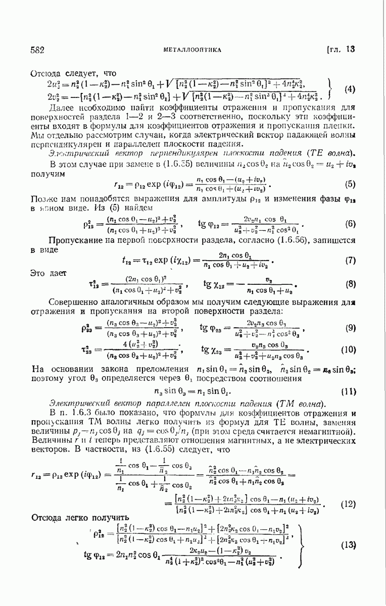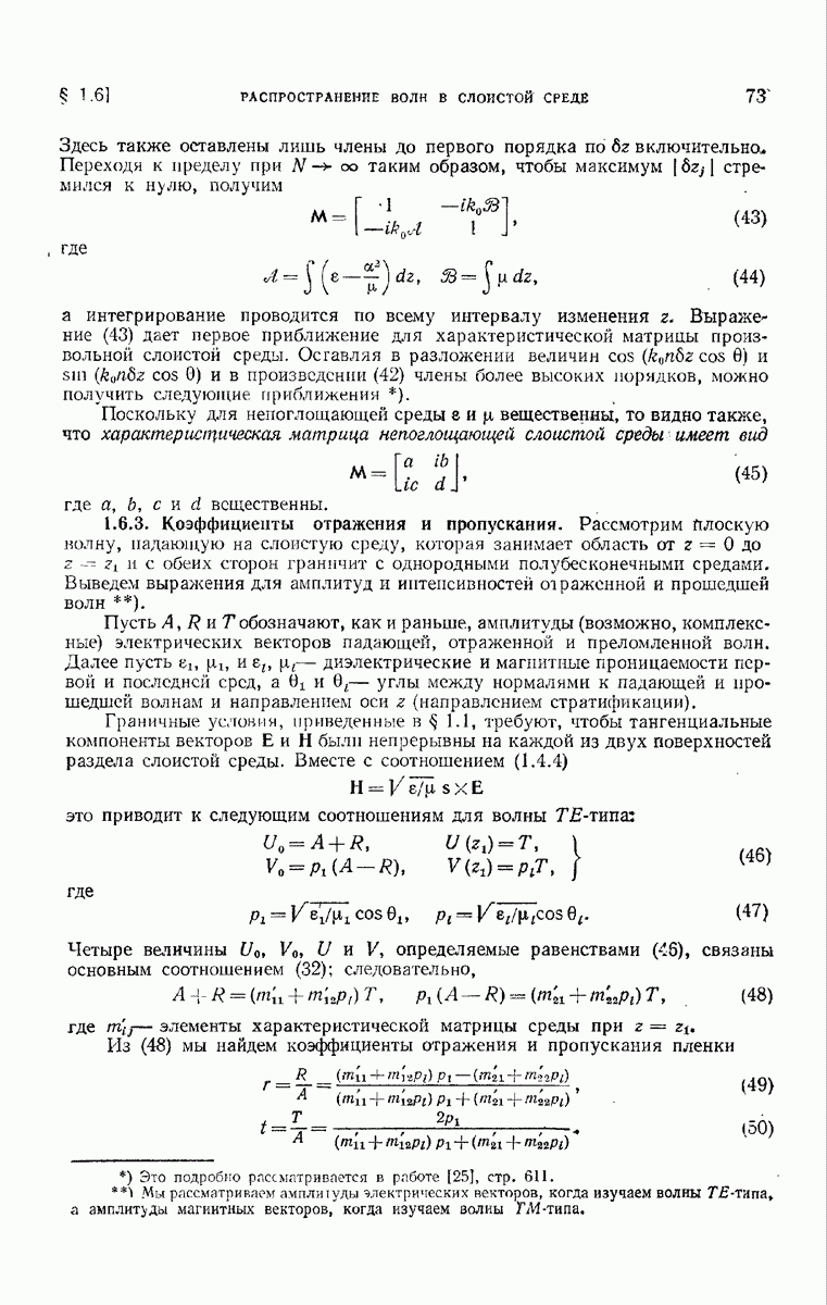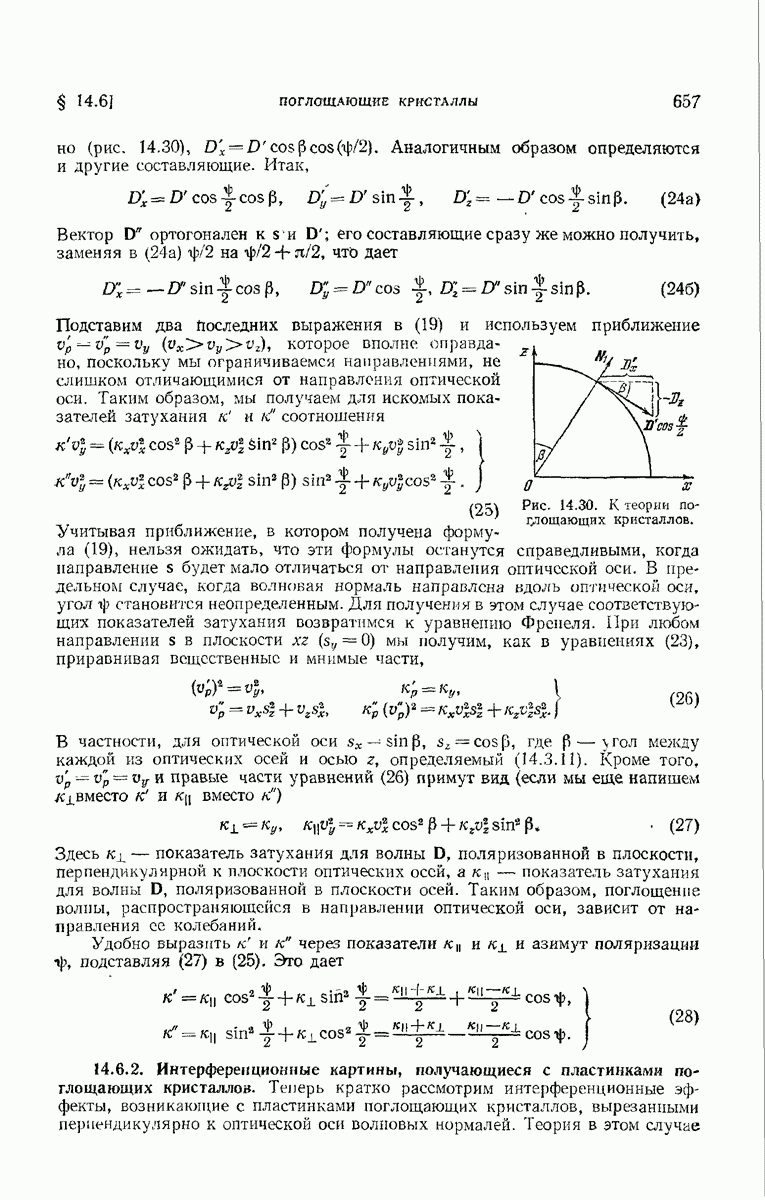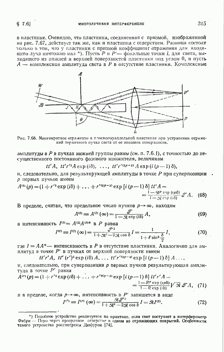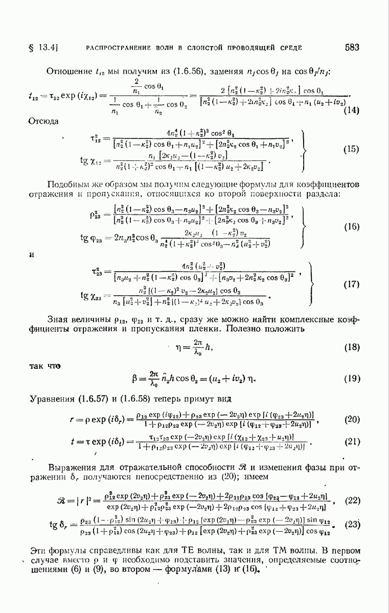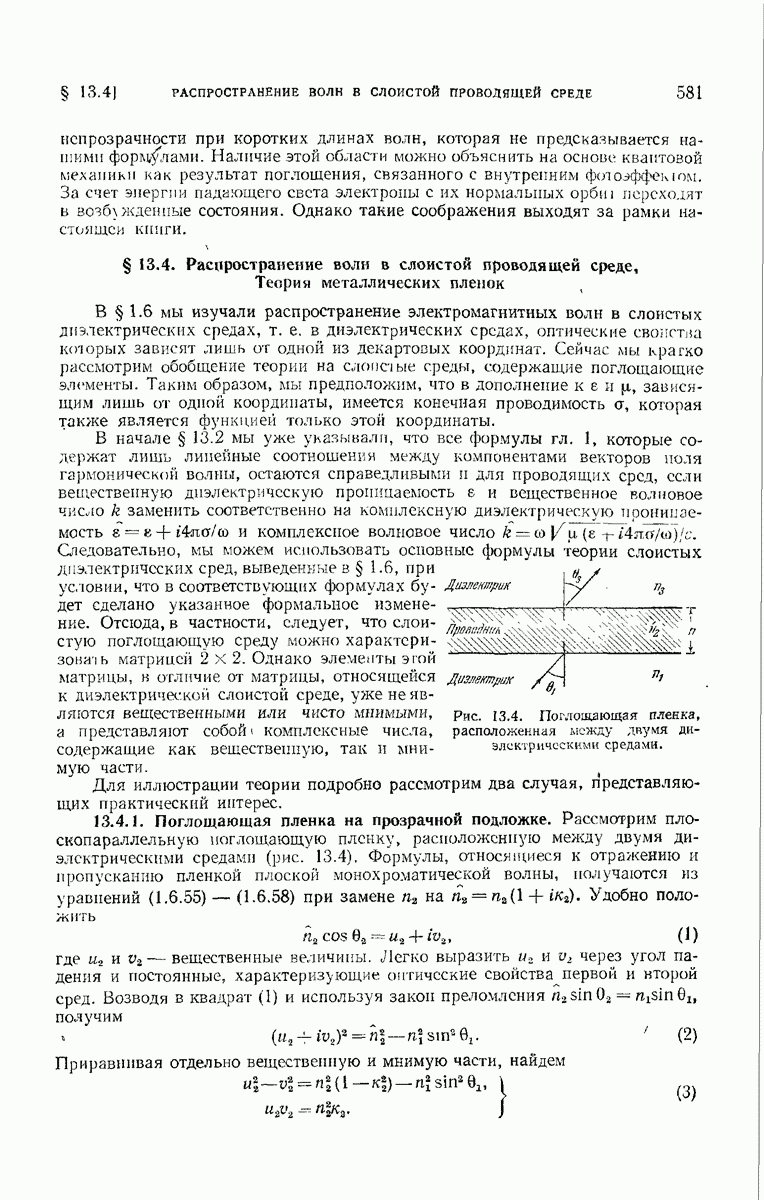 Первая поверхность оказывает на падающее поле двойное действие. Во-первых, амплитуды векторов поля уменьшаются вследствие потерь при отражении и, во-вторых, изменяются направления колебаний. Формулы Френеля показывают, что оба эффекта зависят главным образом от величины утла падения. Если угол мал (около 10°), потери на отражение также малы (около