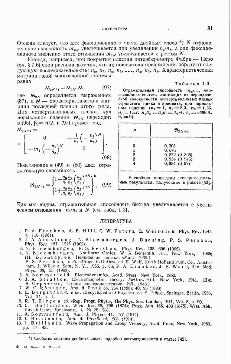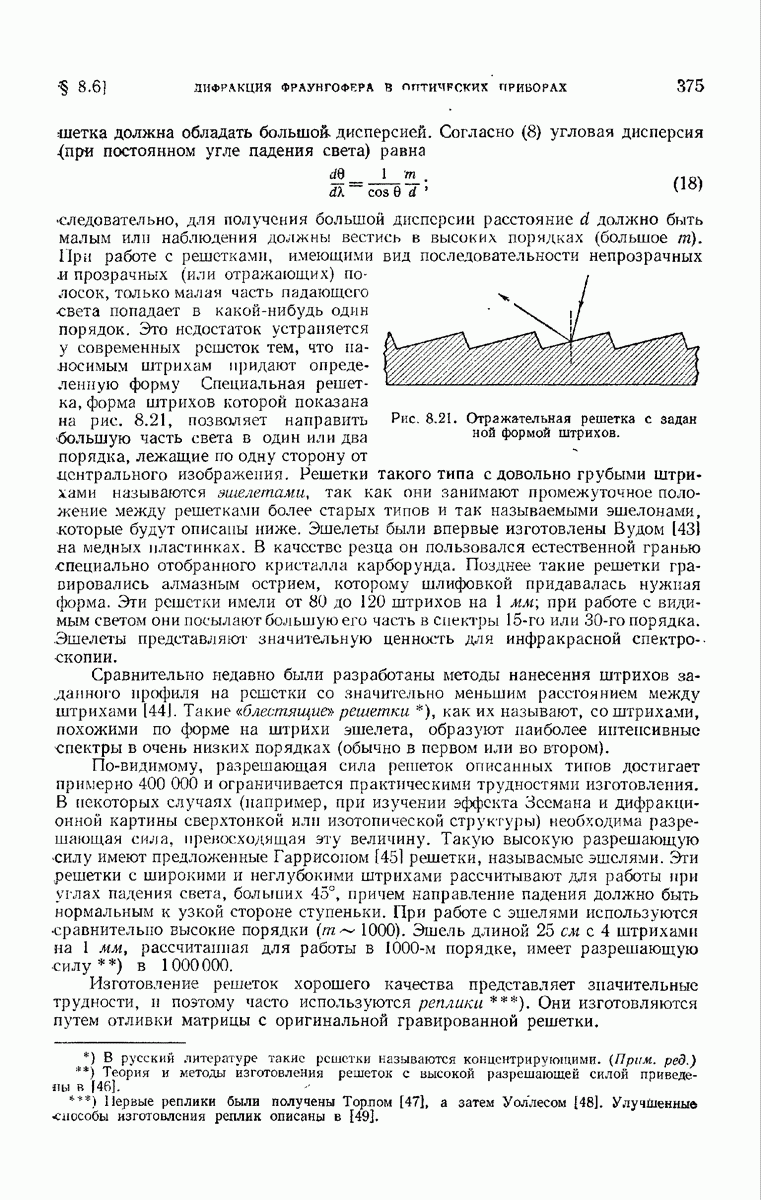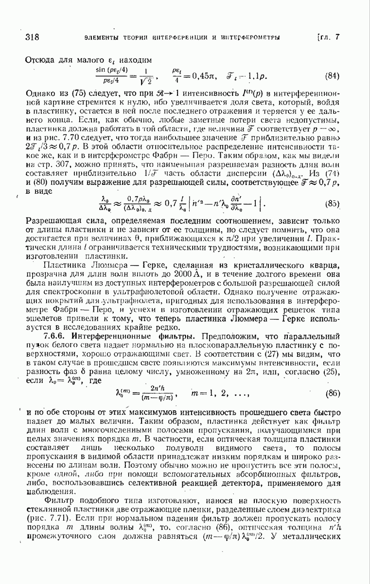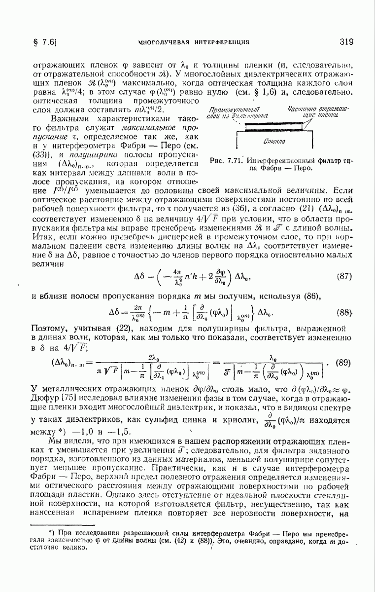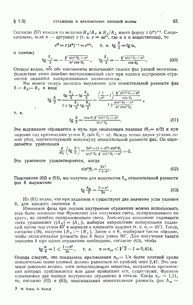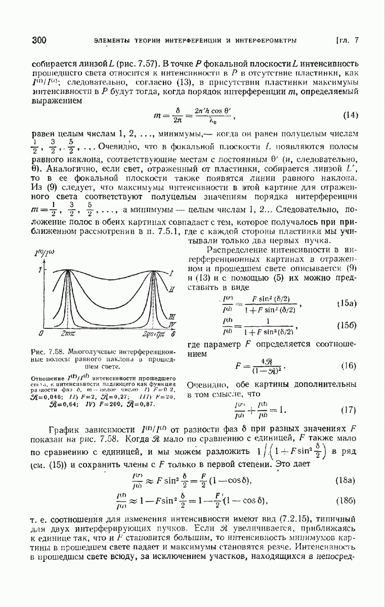Первая поверхность оказывает на падающее поле двойное действие. Во-первых, амплитуды векторов поля уменьшаются вследствие потерь при отражении и, во-вторых, изменяются направления колебаний. Формулы Френеля показывают, что оба эффекта зависят главным образом от величины утла падения. Если угол мал (около 10°), потери на отражение также малы (около