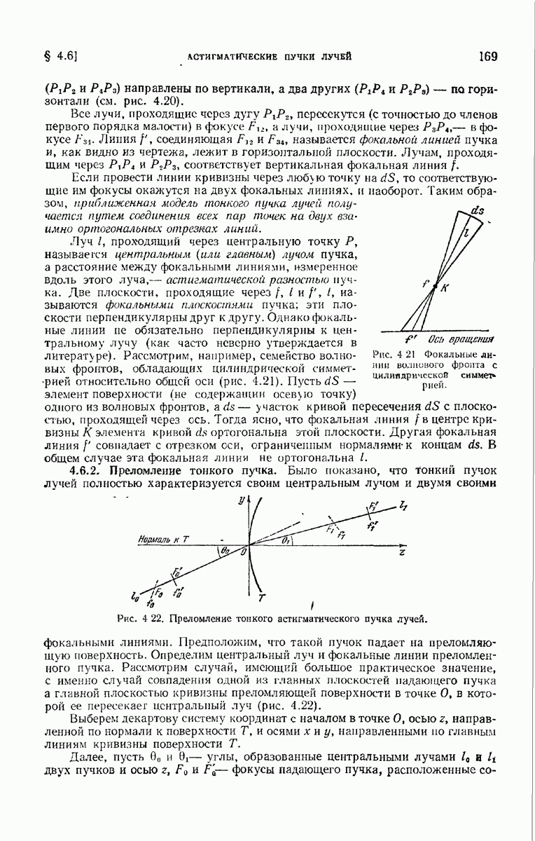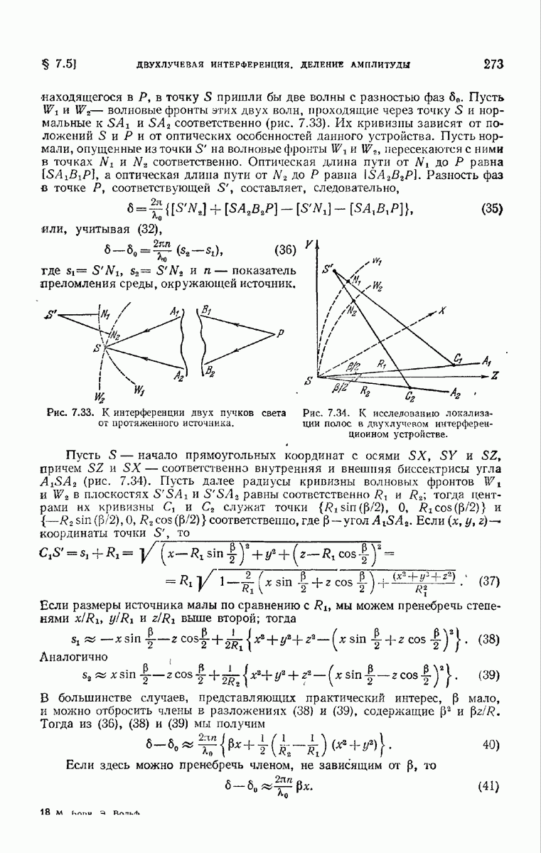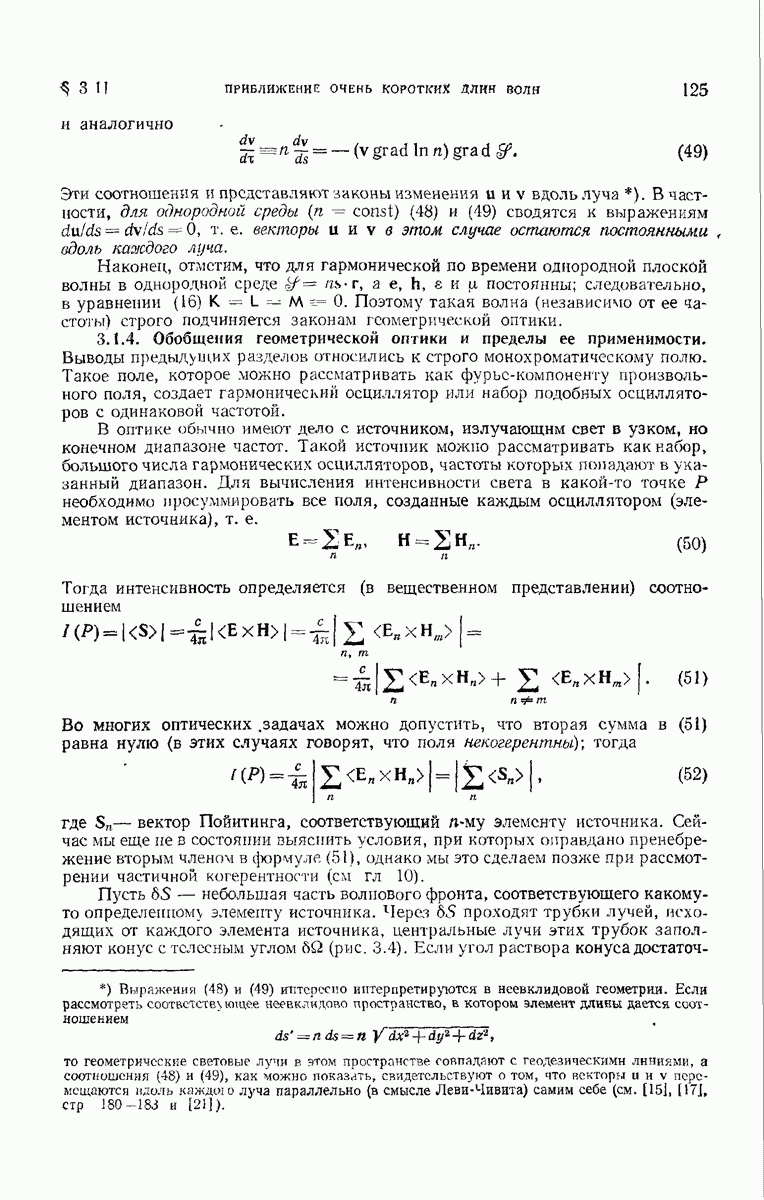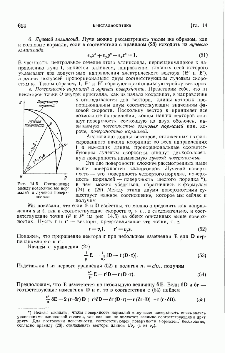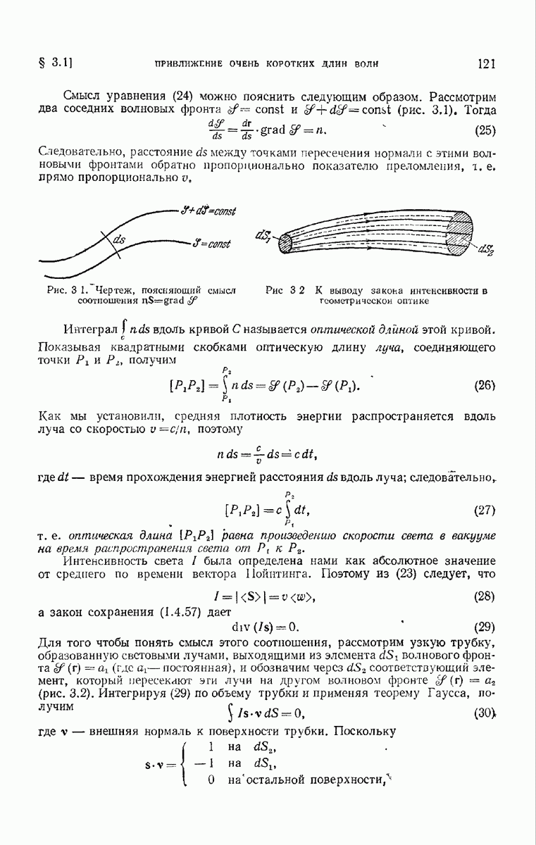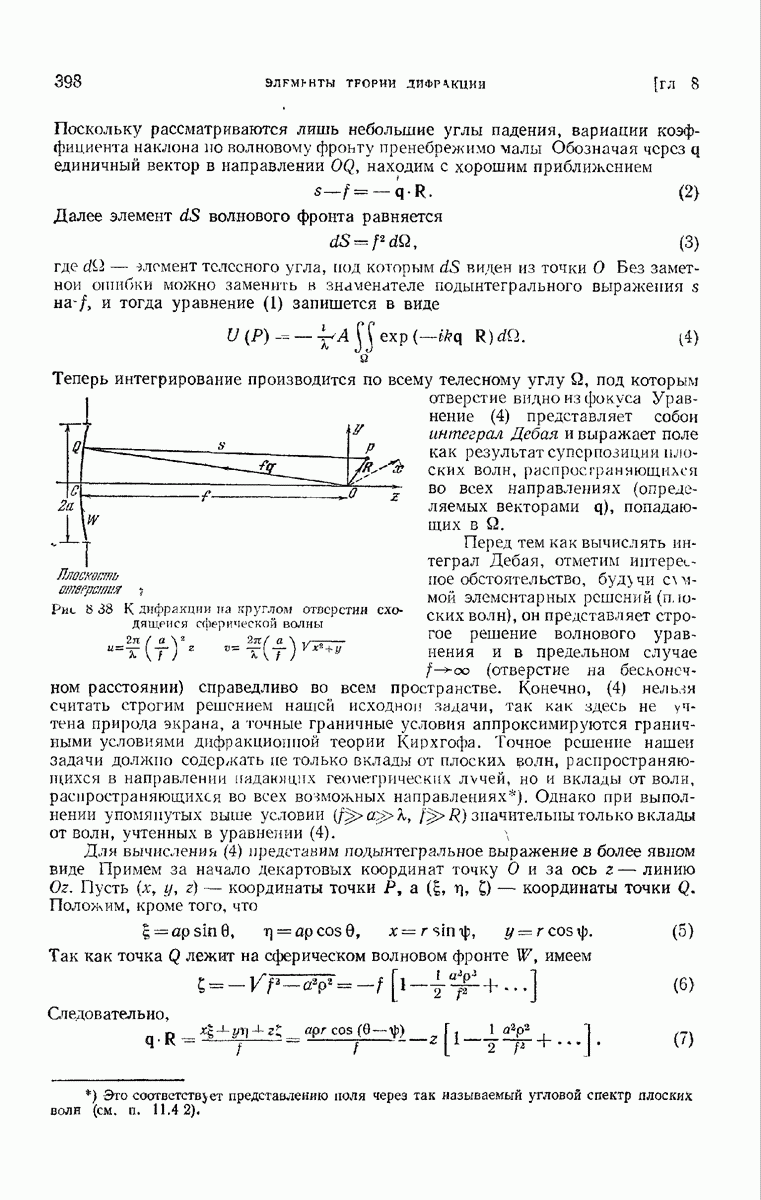 большом по сравнению с длиной волны. Так как мы предположили, что углы, которые лучи составляют с осью системы, малы, то из (6) непосредственно следует, что в любой данный момент векторы