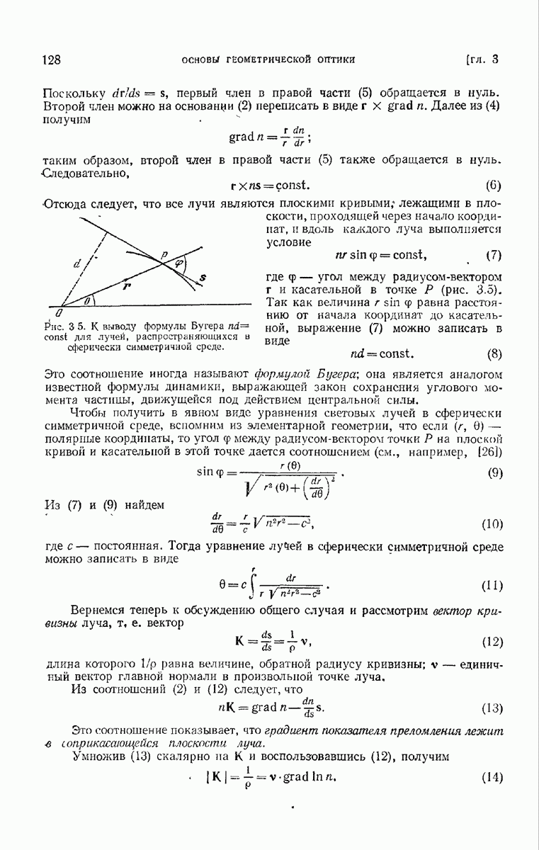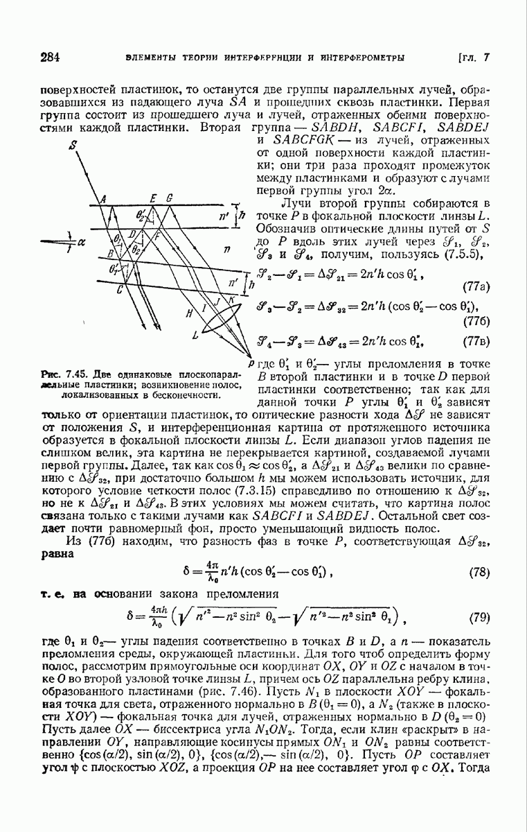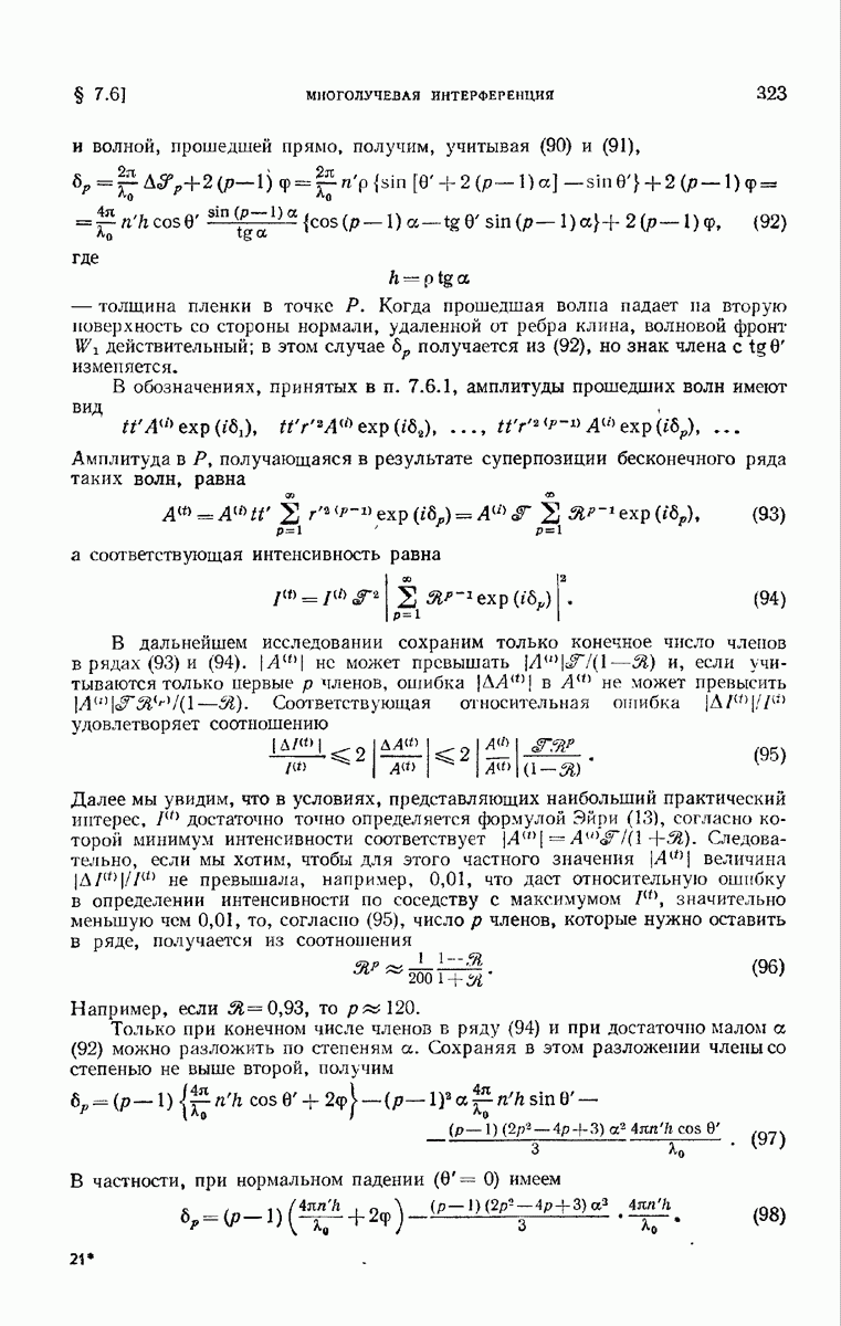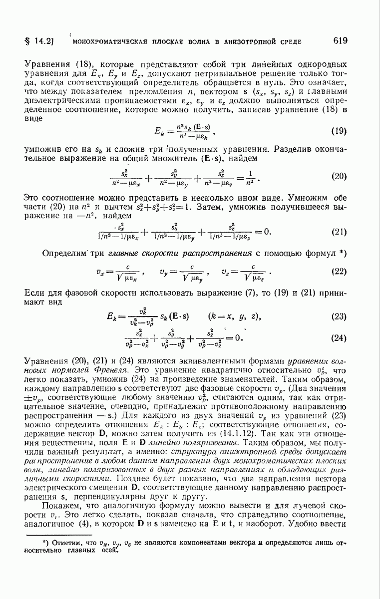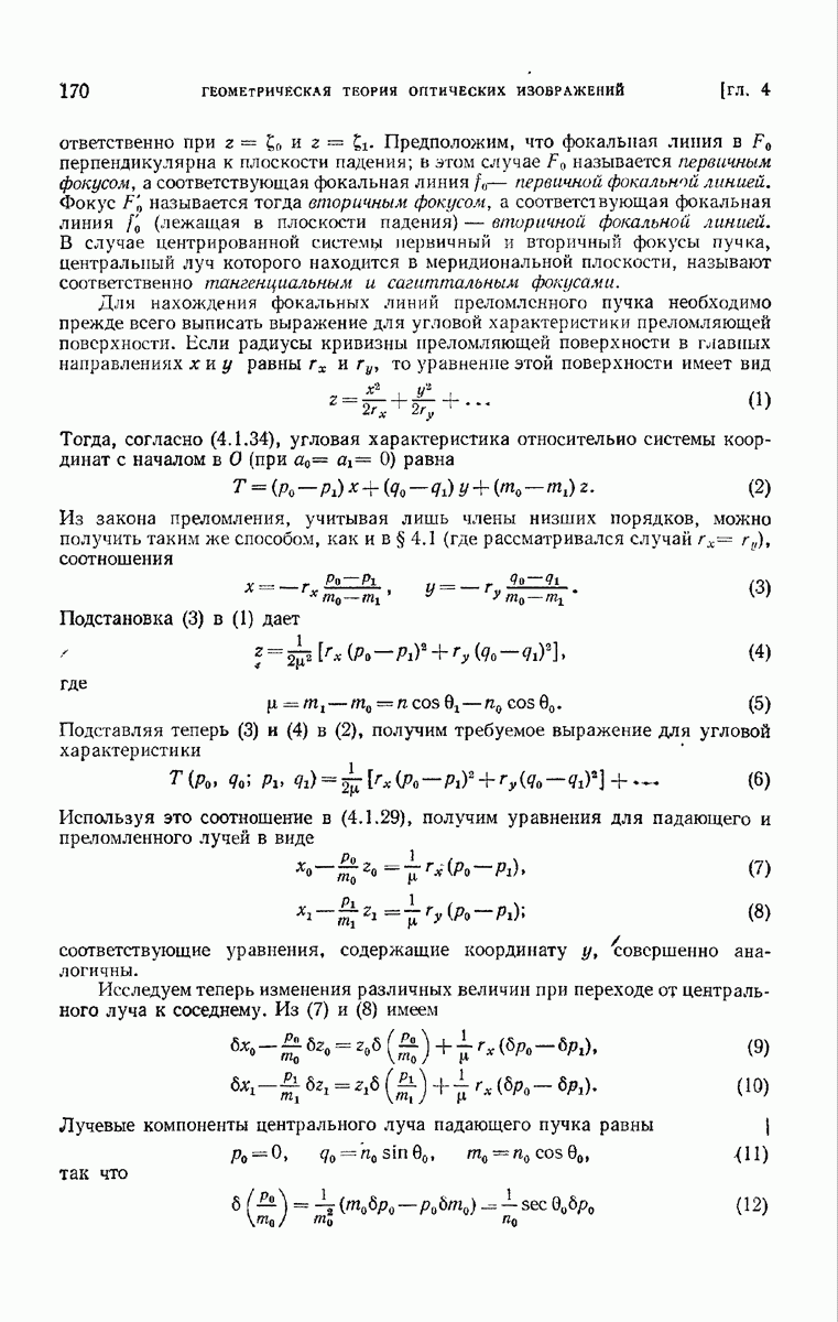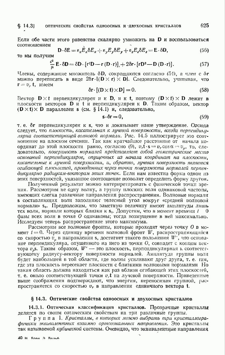 большом по сравнению с длиной волны. Так как мы предположили, что углы, которые лучи составляют с осью системы, малы, то из (6) непосредственно следует, что в любой данный момент векторы